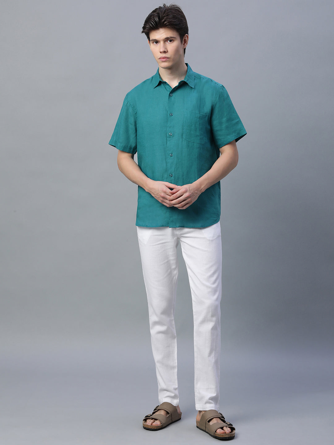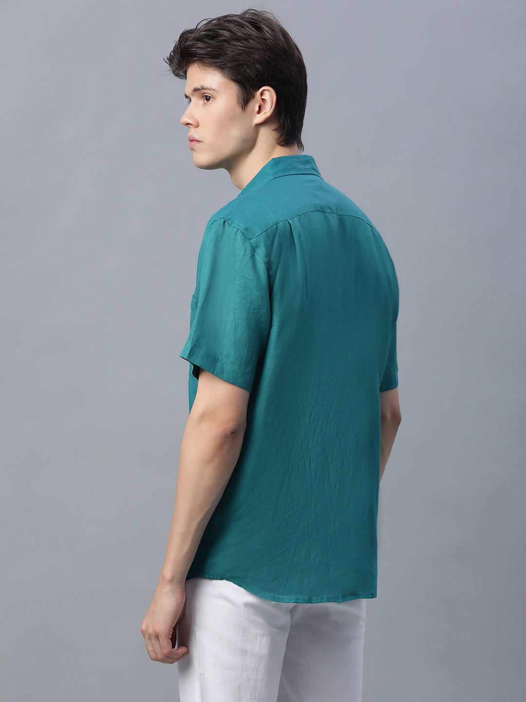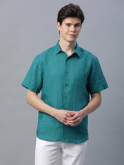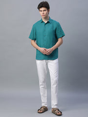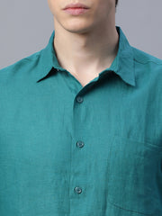 Men's Green 100% Linen Regular Fit Shirt