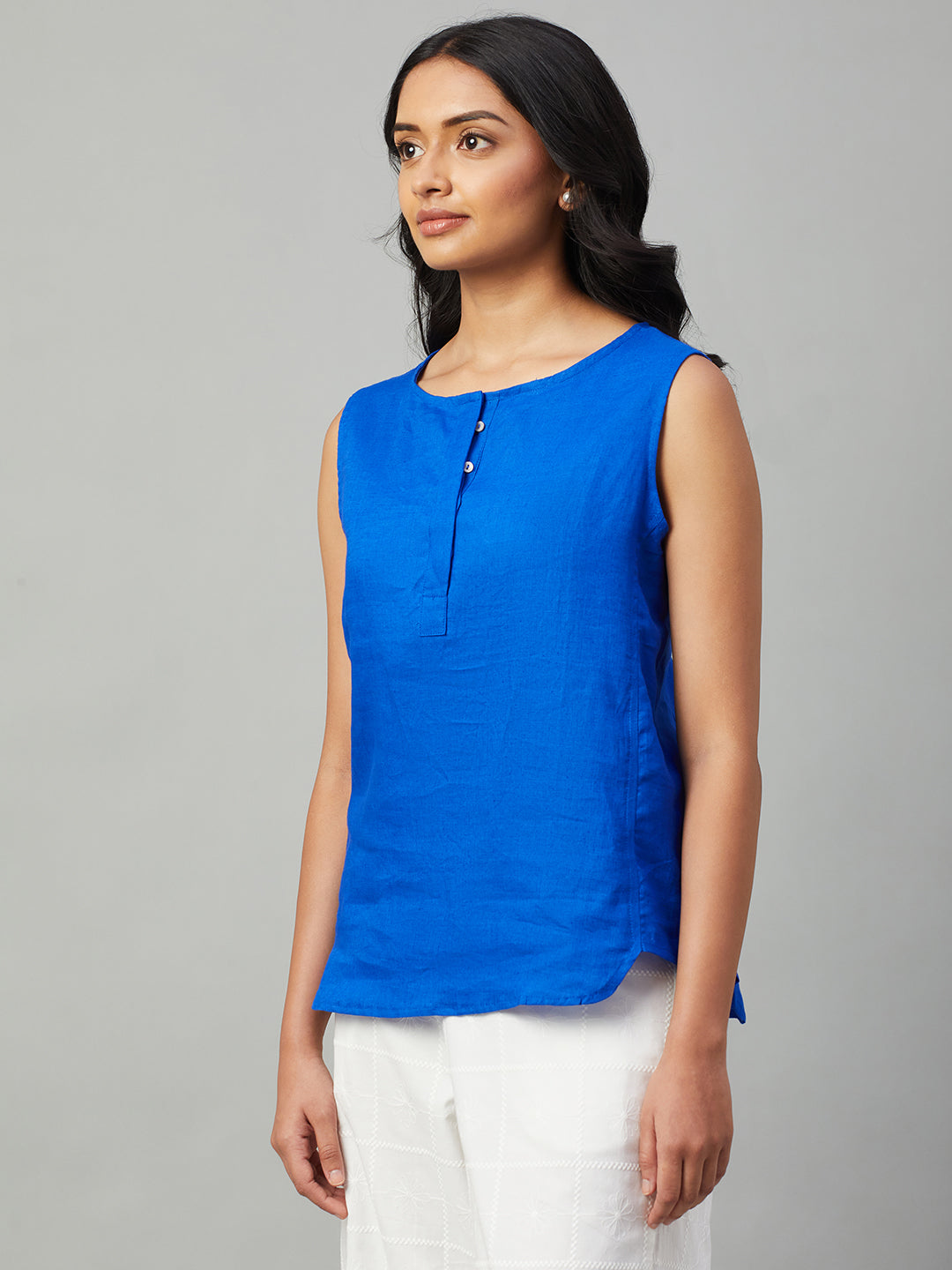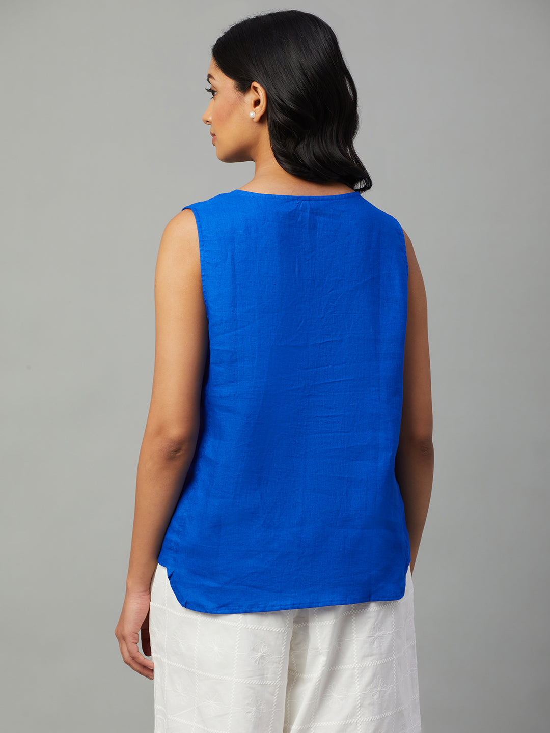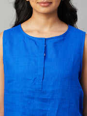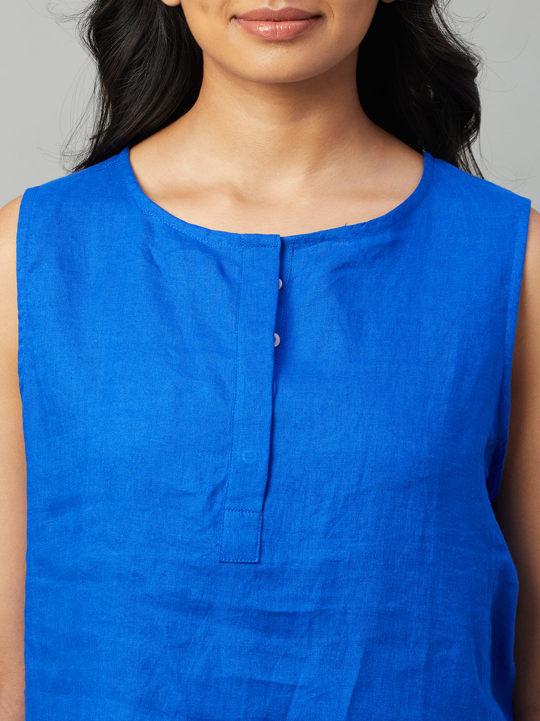 Women's Royalblue 100% Linen Regular Fit Blouse