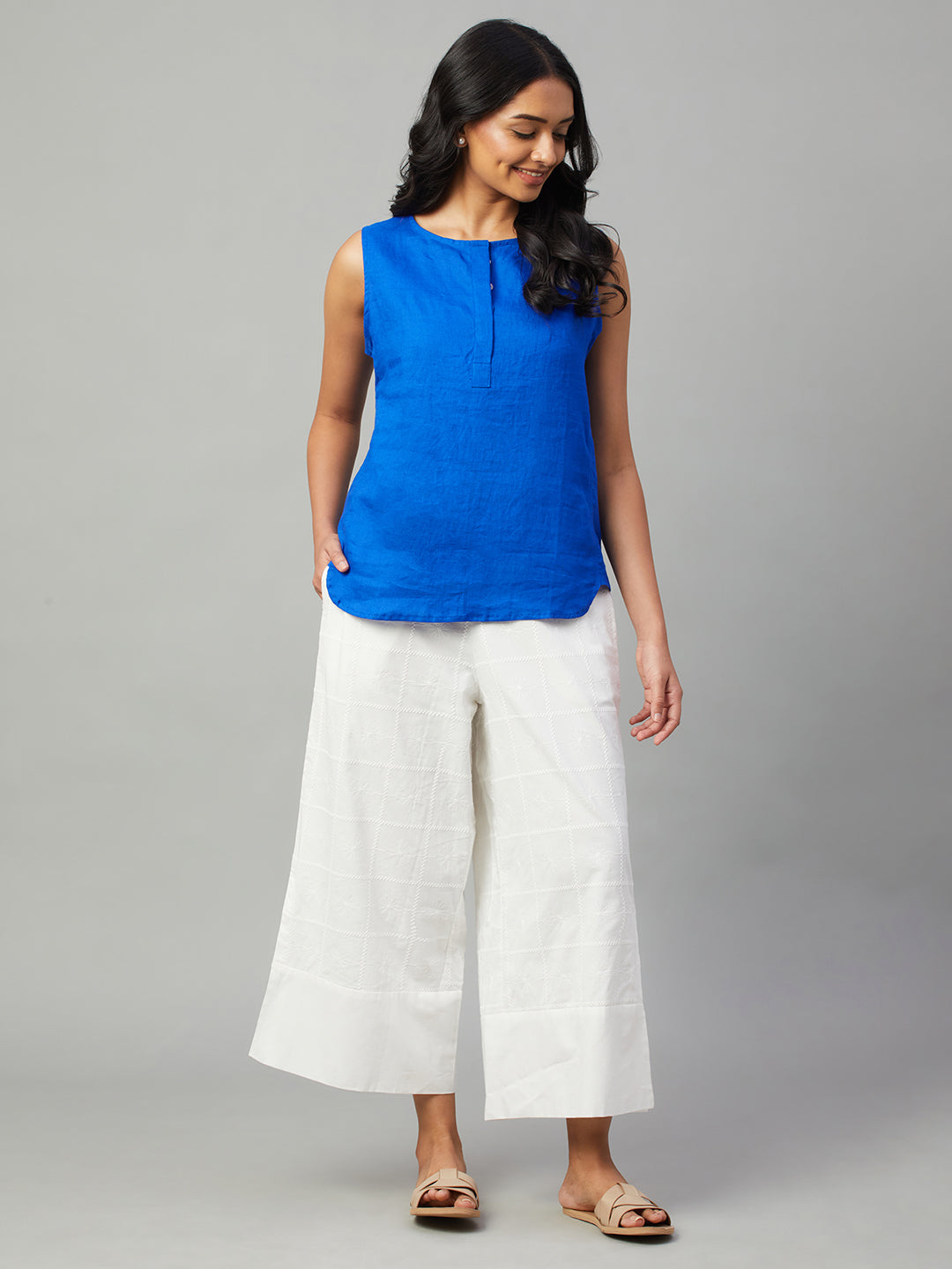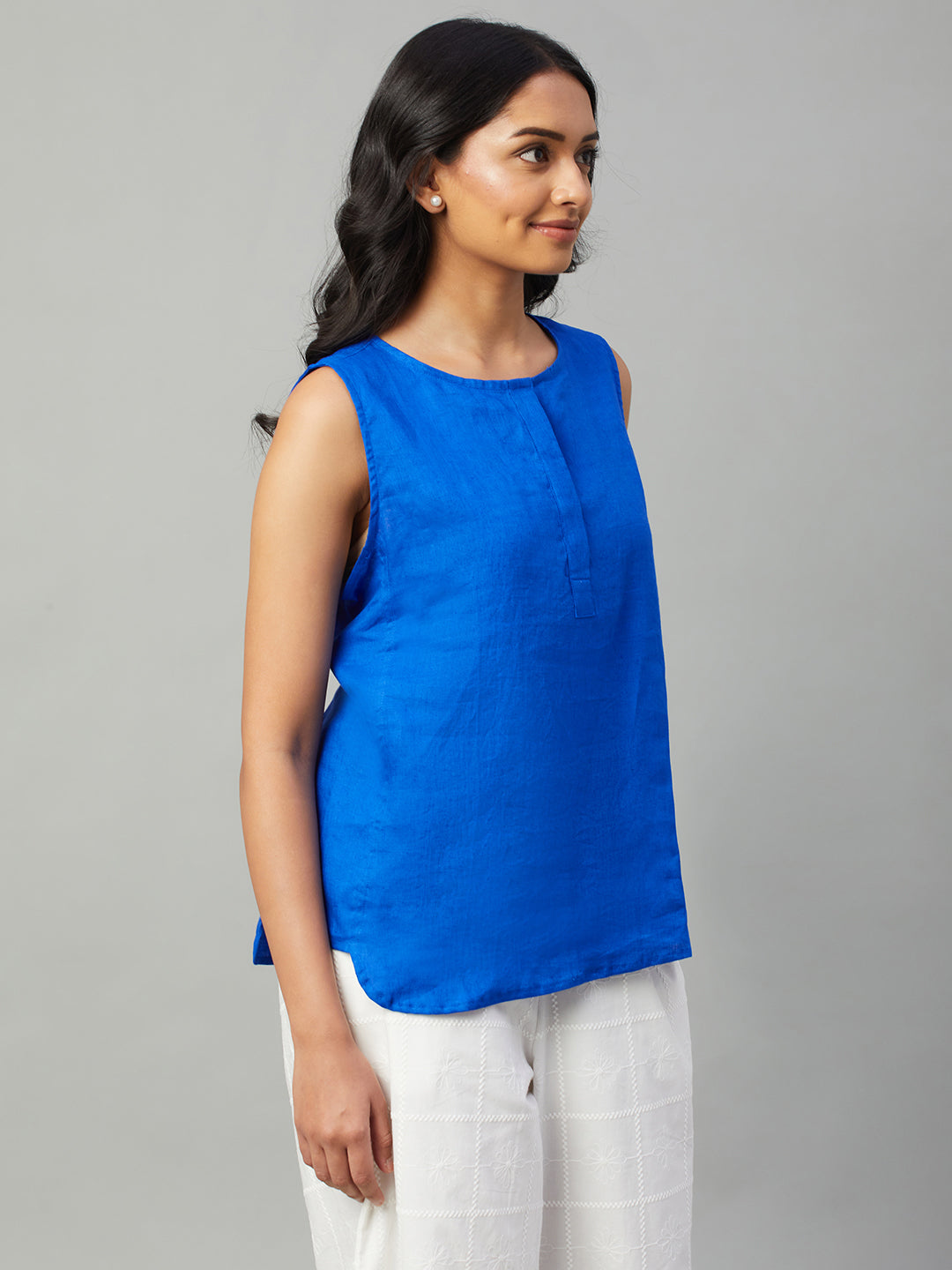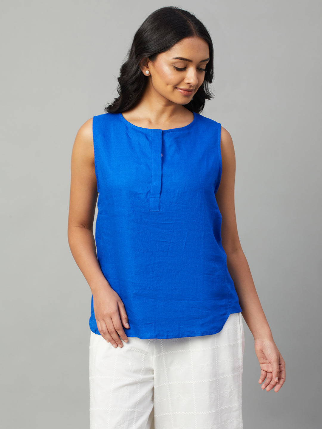 Women's Royalblue 100% Linen Regular Fit Blouse