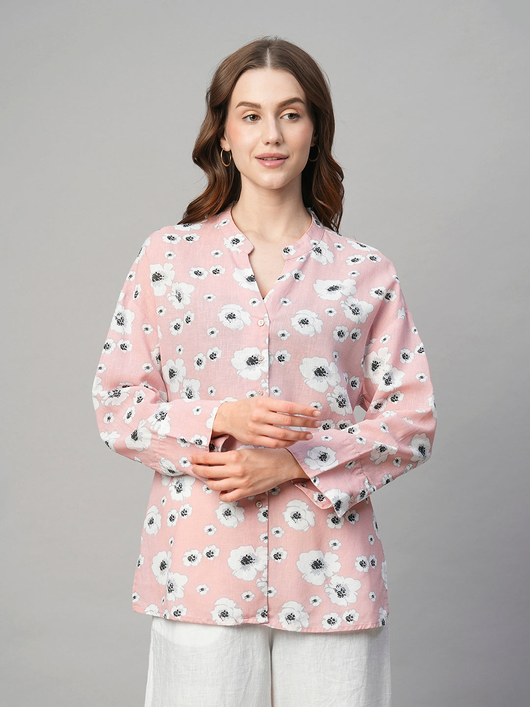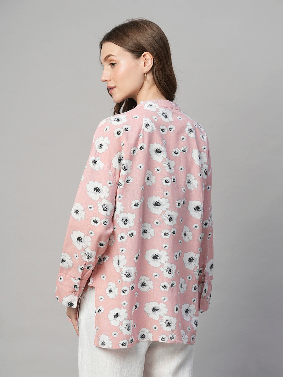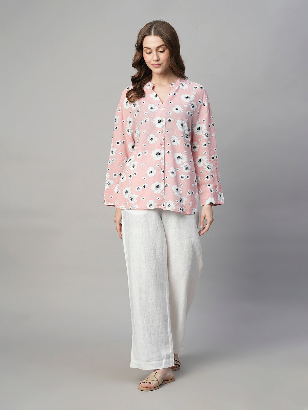 Women's Rose Cotton Linen Boxy Fit Blouse