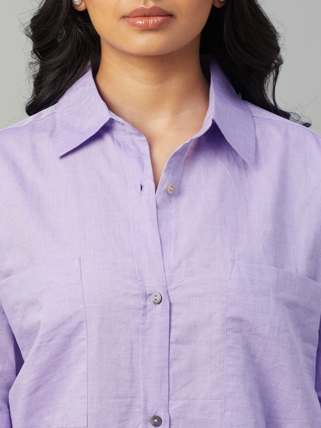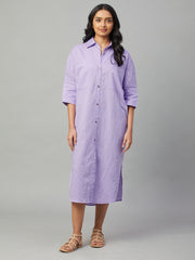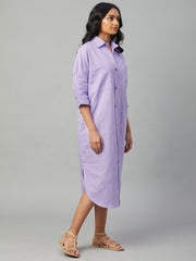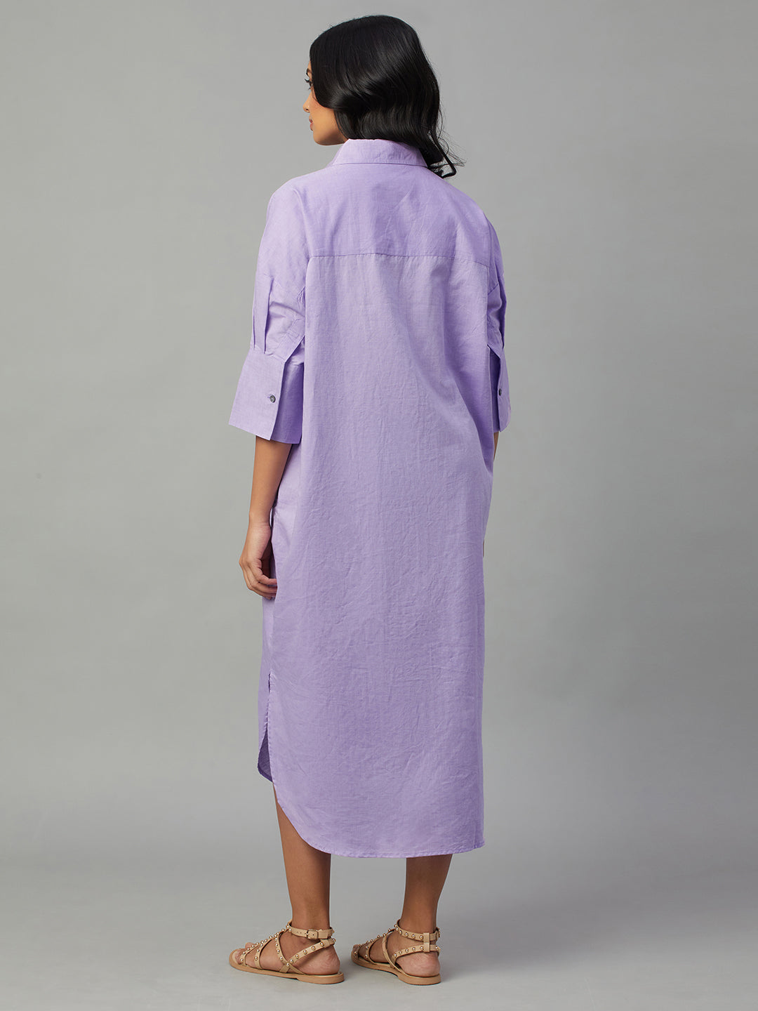 Women's Lilac Linen Cotton Boxy Fit Dress