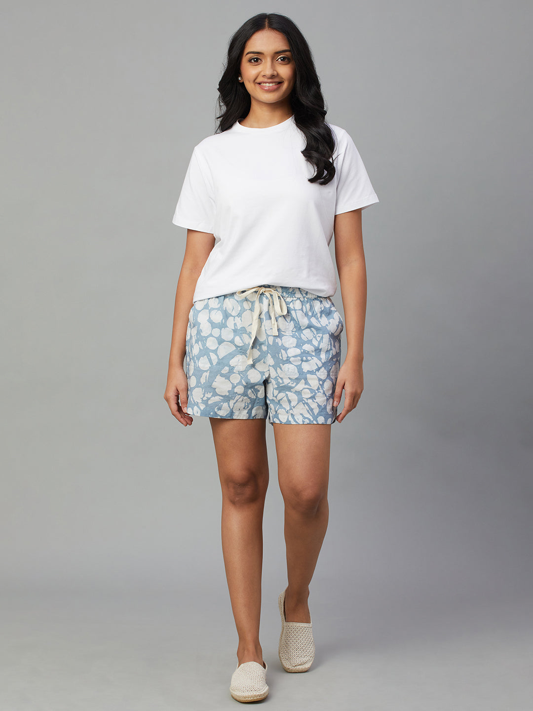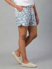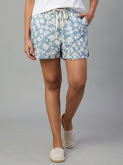 Women's Blue 100% Cotton Regular Fit Shorts