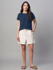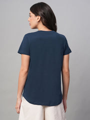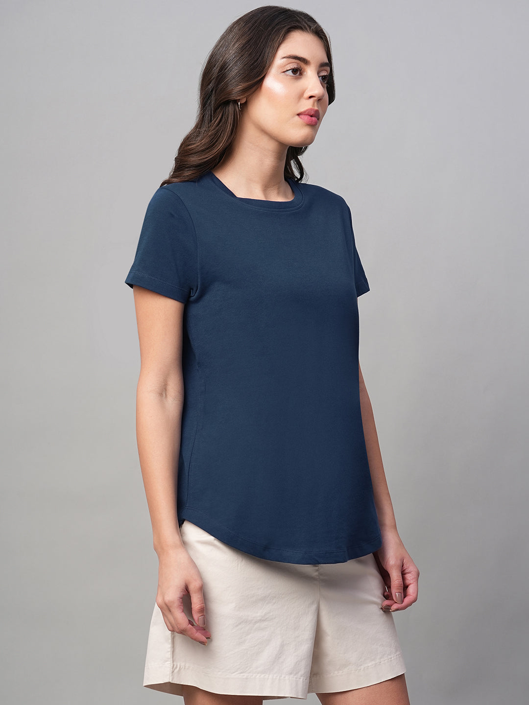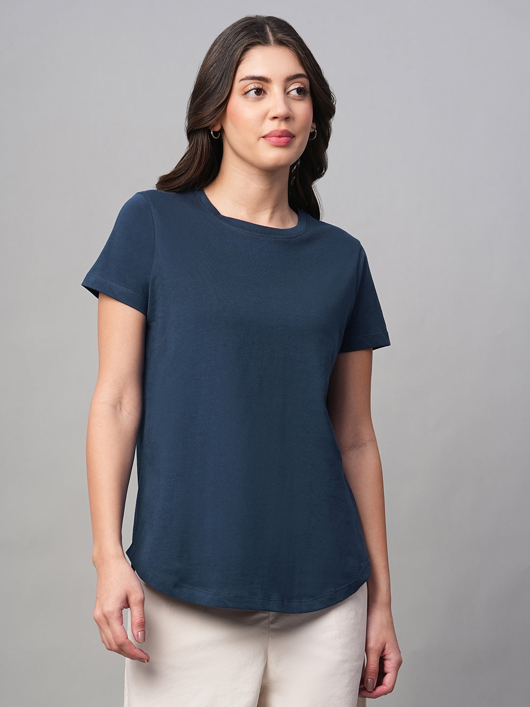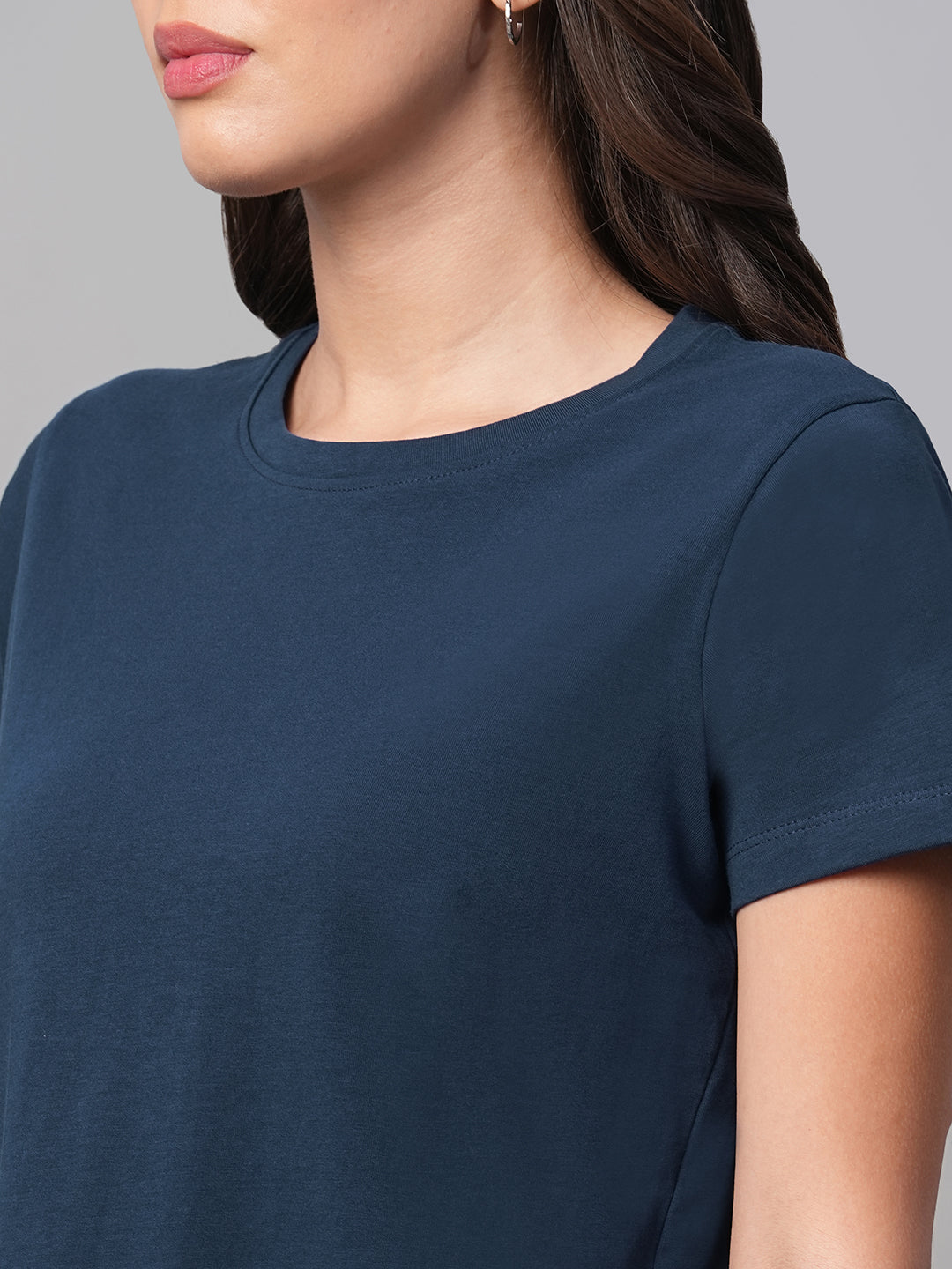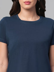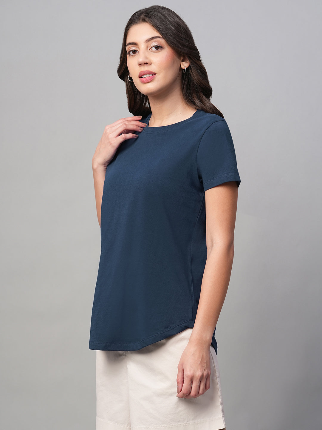 Women's Blue 100% Cotton Regular Fit Tshirt