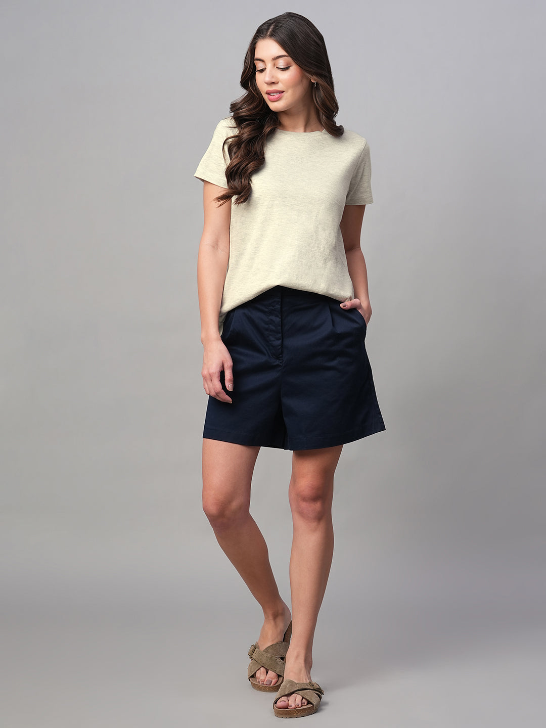 Women's Ecru Melan 100% Cotton Regular Fit Tshirt