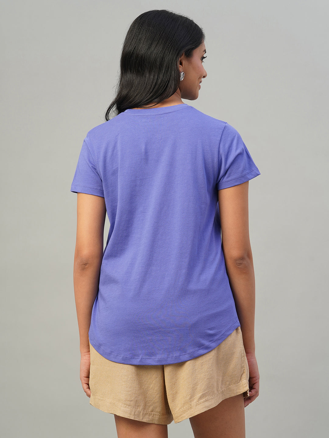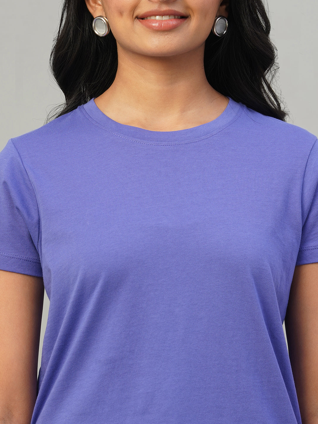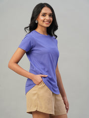 Women's Violet 100% Cotton Slim Fit Tshirt