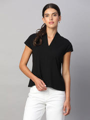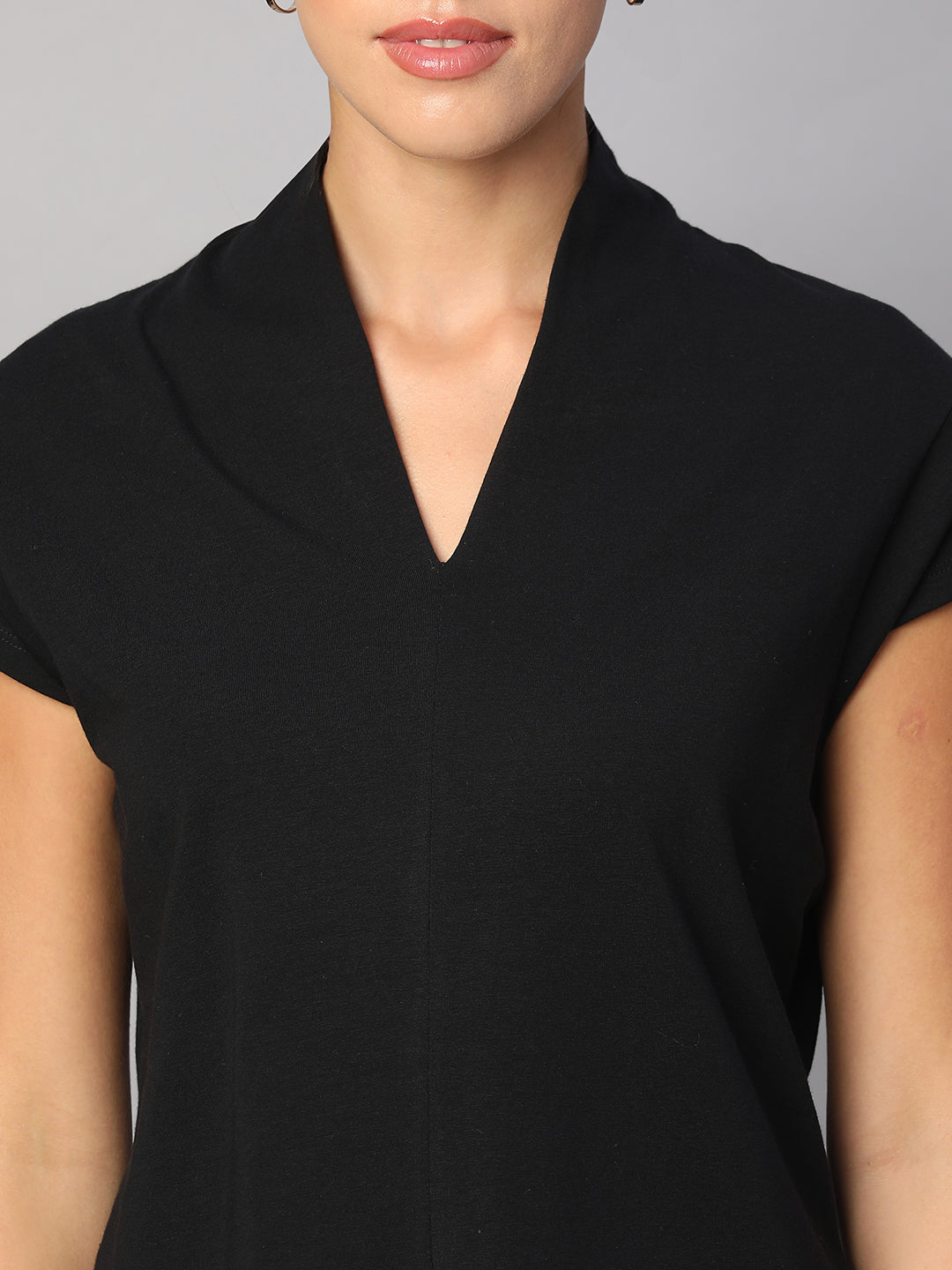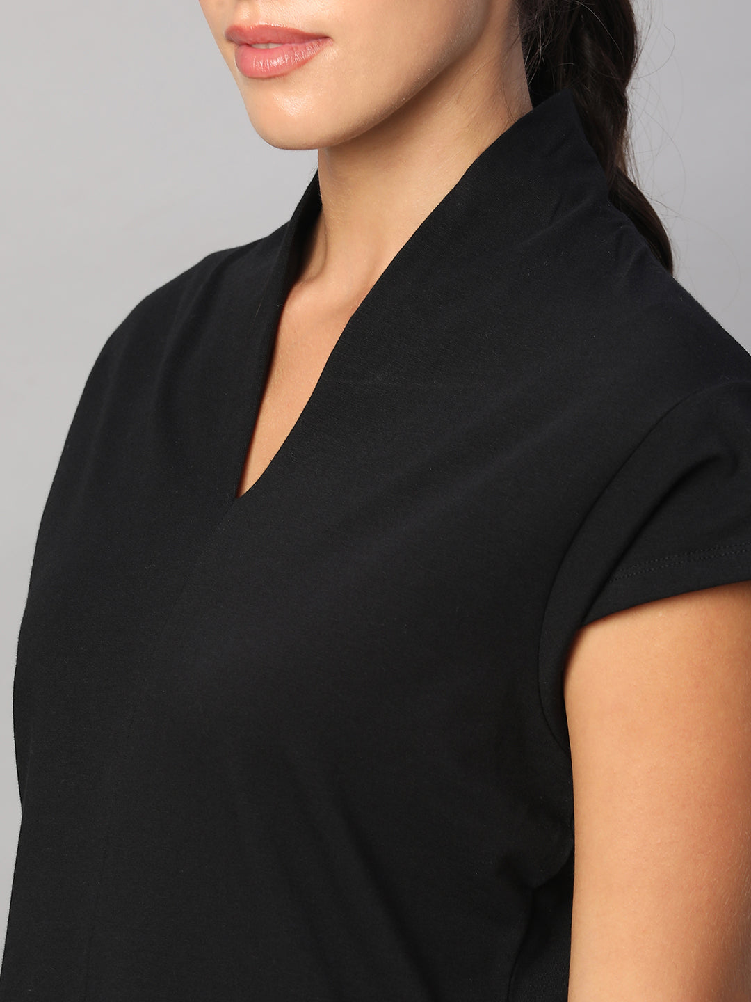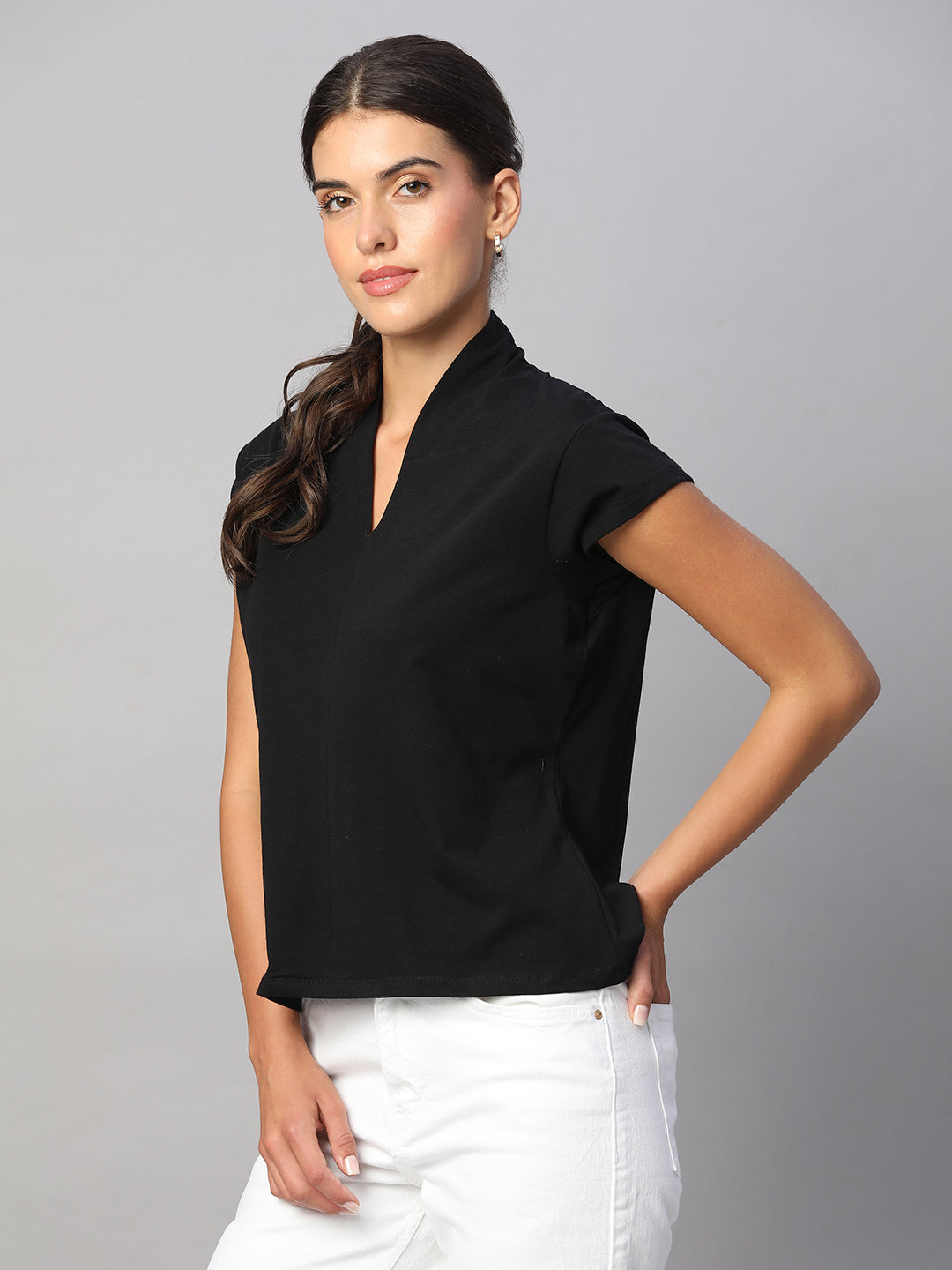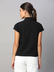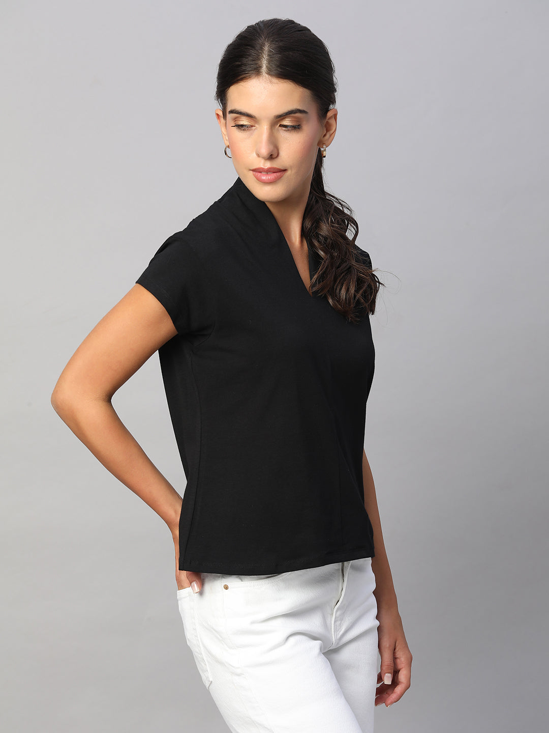 Women's Black Cotton Elastane Slim Fit Tshirt