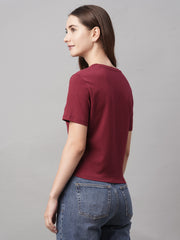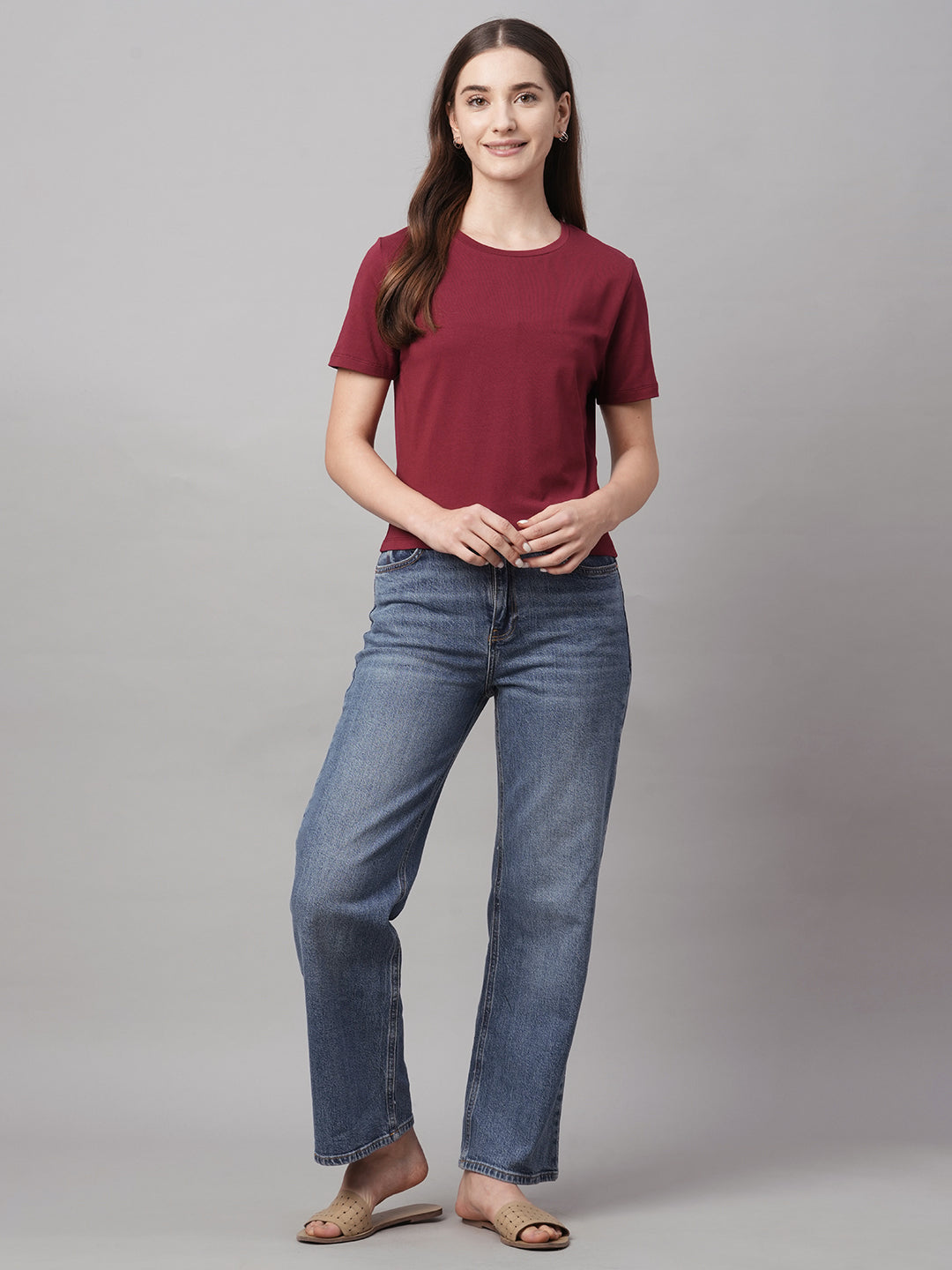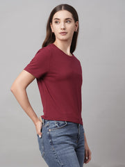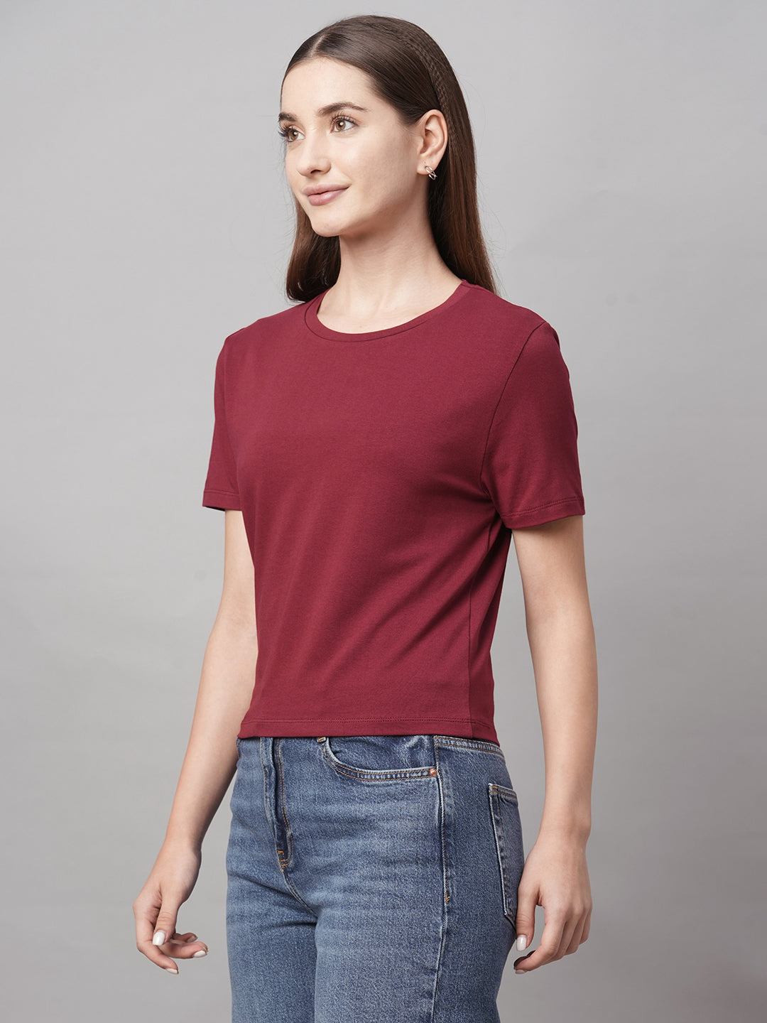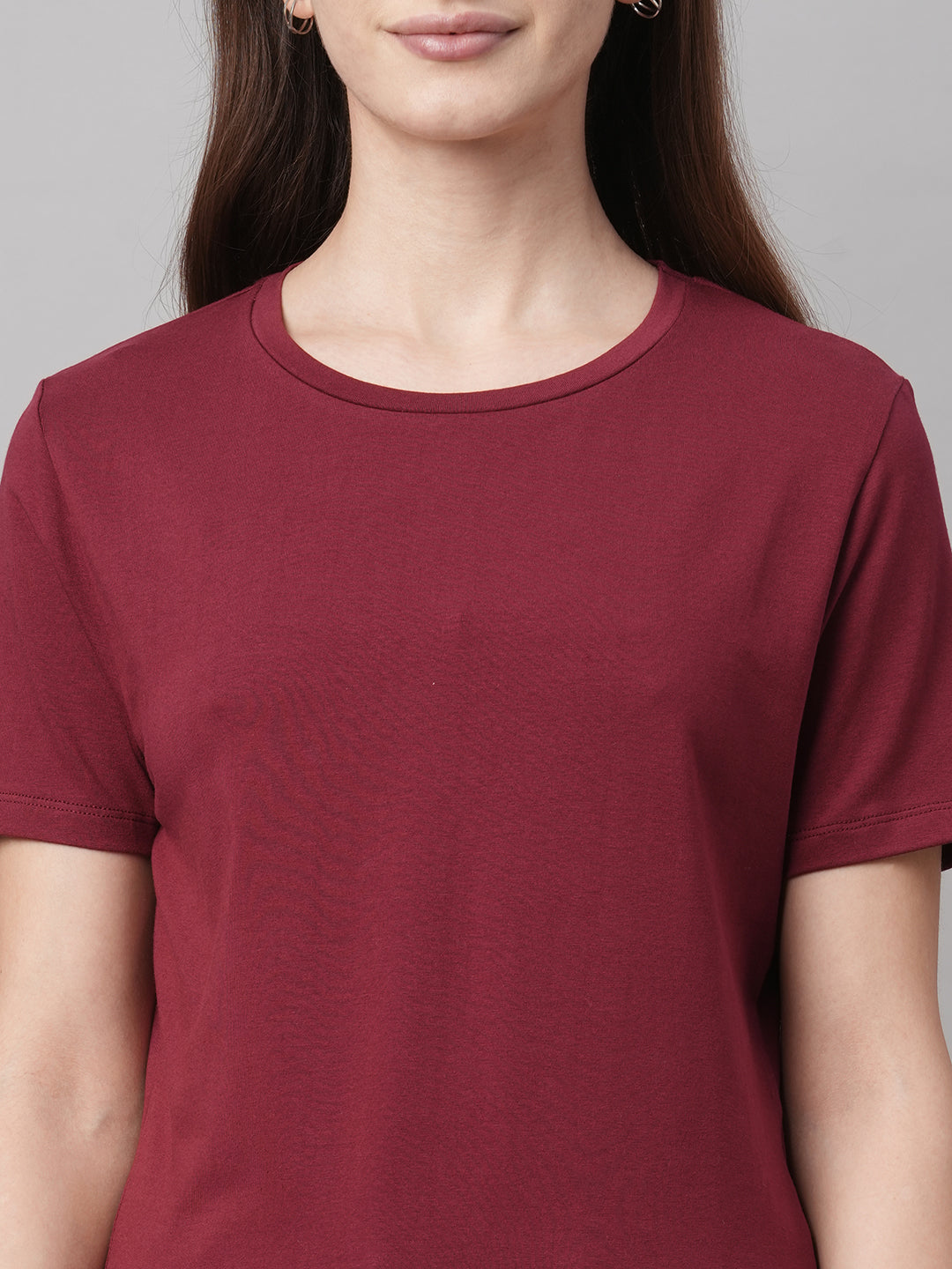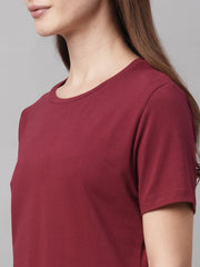 Women's Red Cotton Elastane Regular Fit Tshirt
