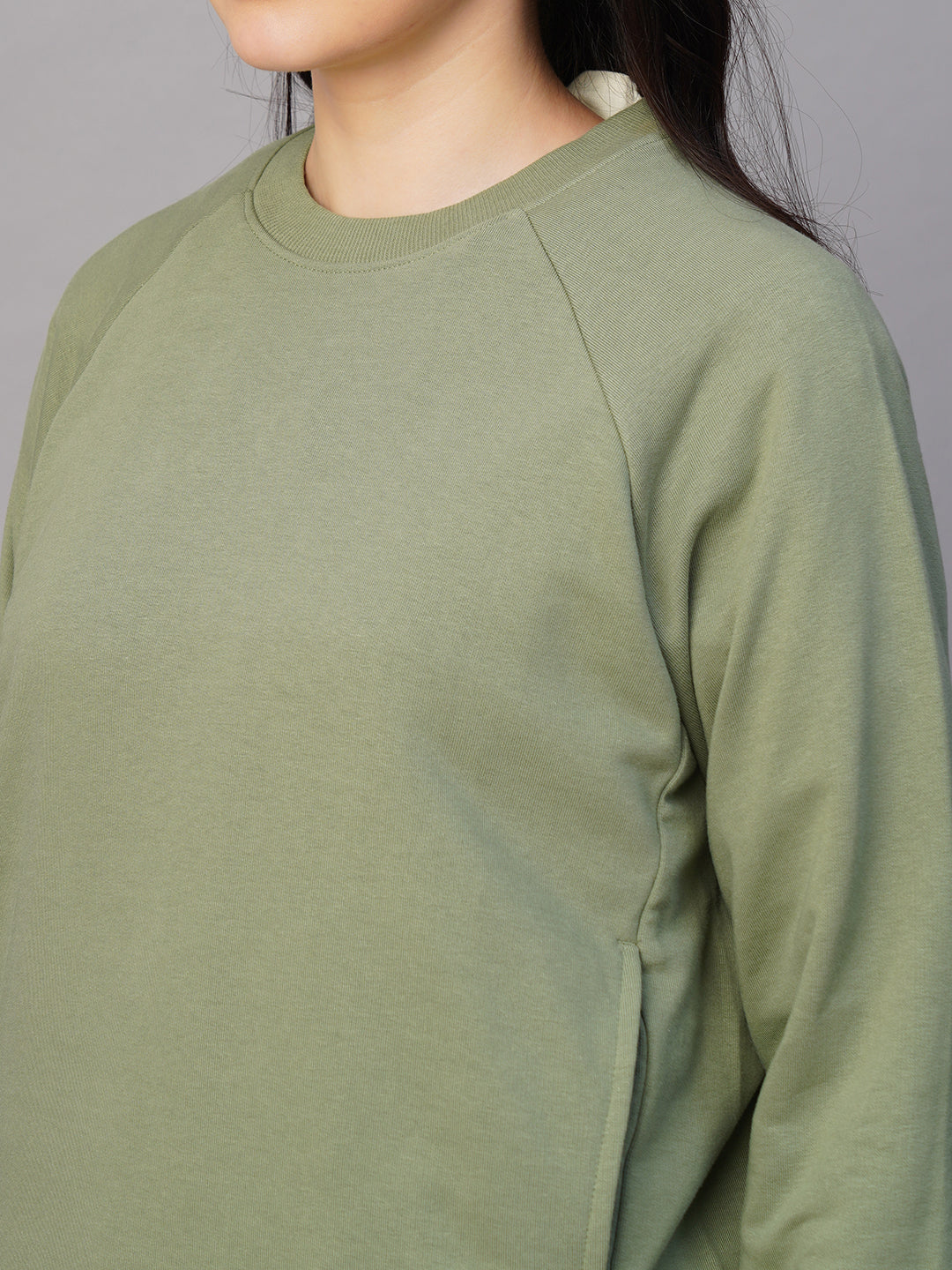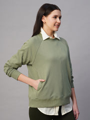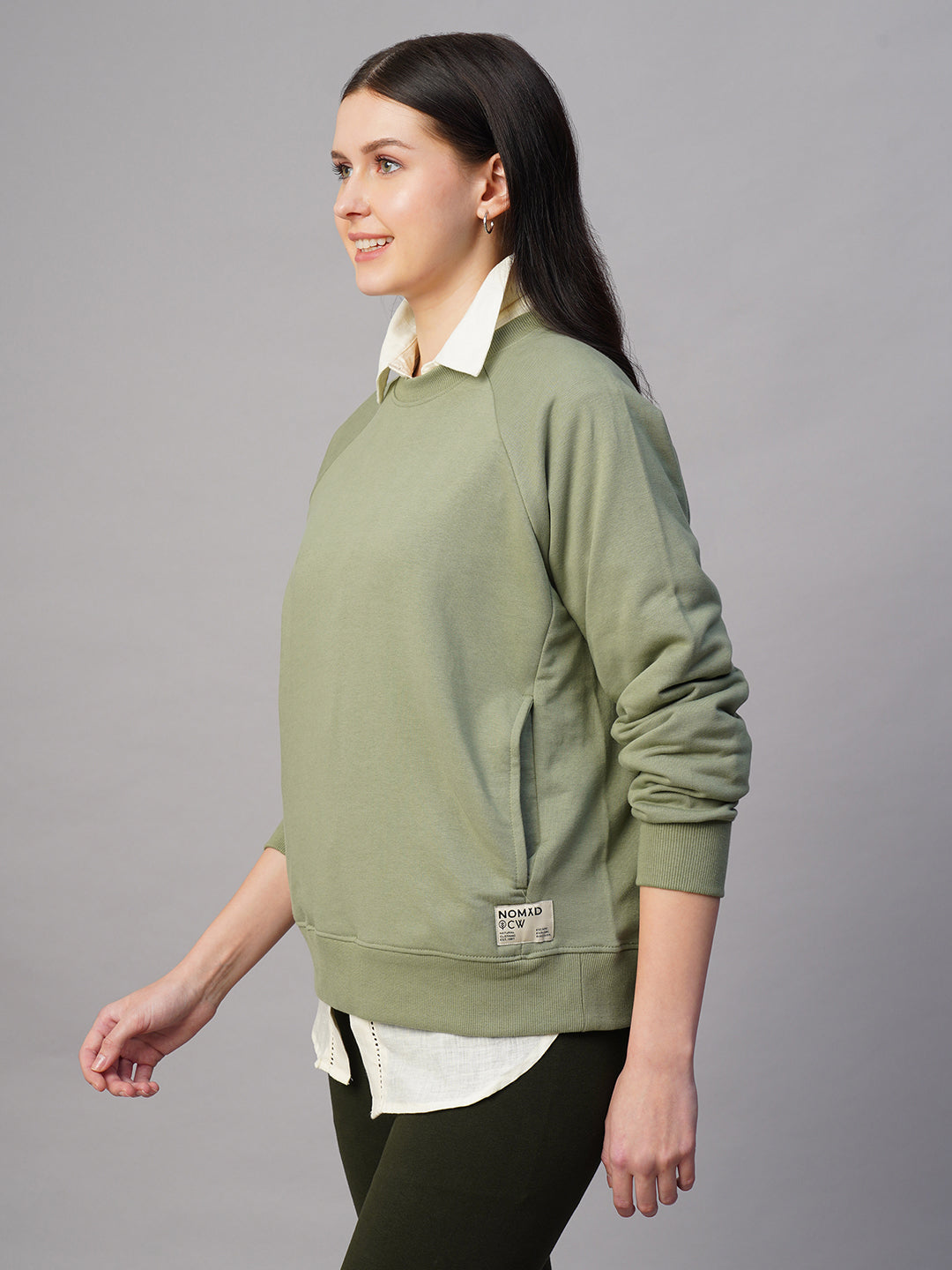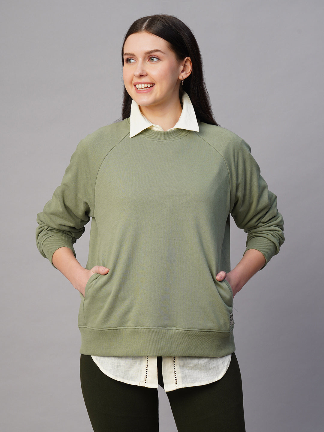 Women's Light Green Organic Cotton Regular Fit Sweatshirt