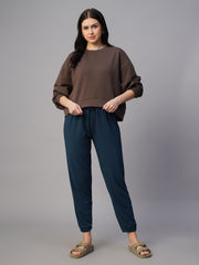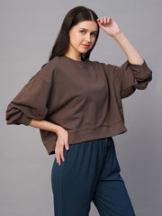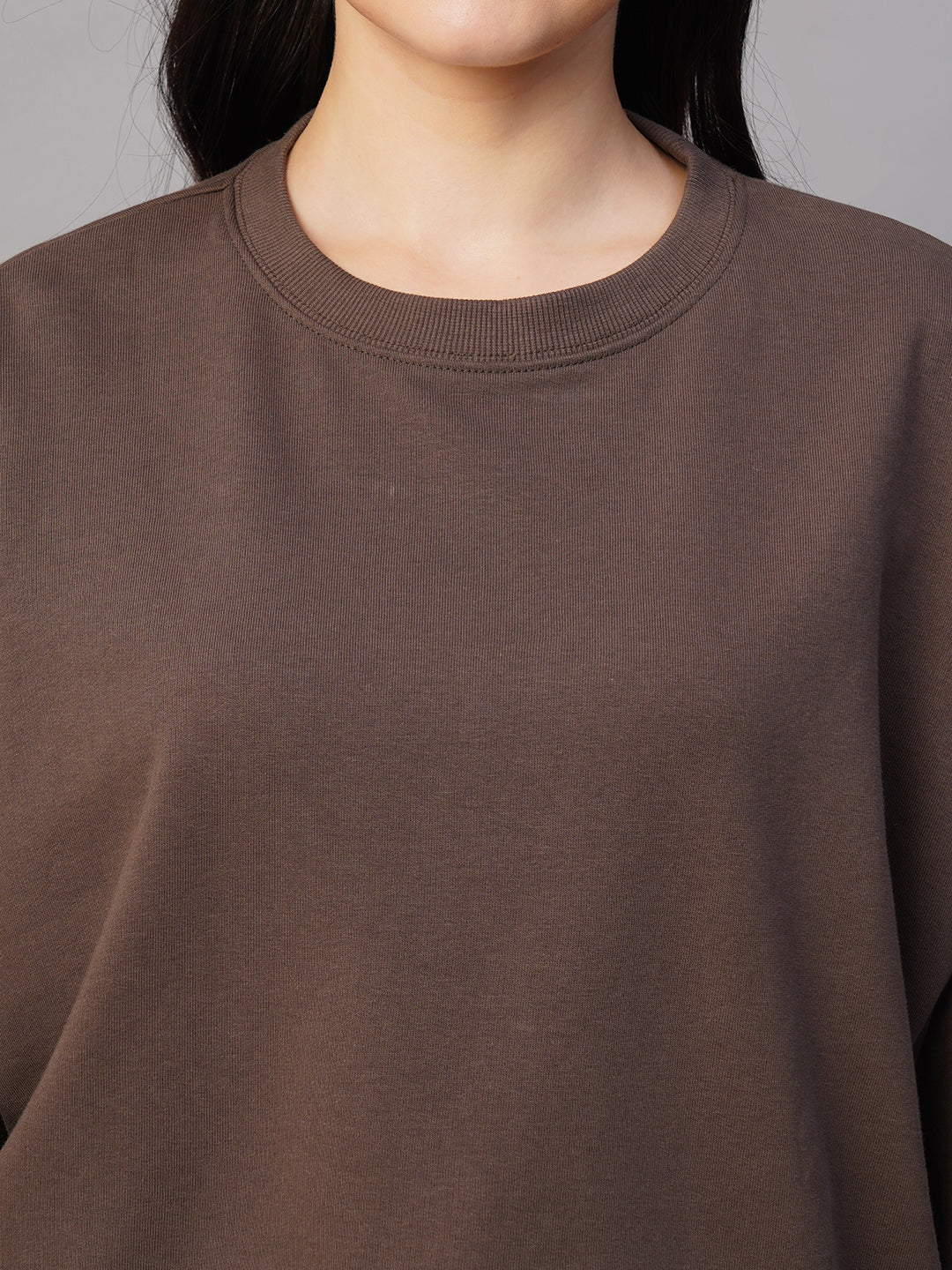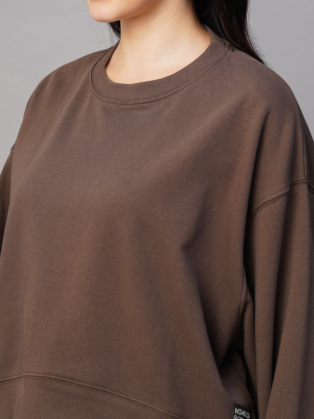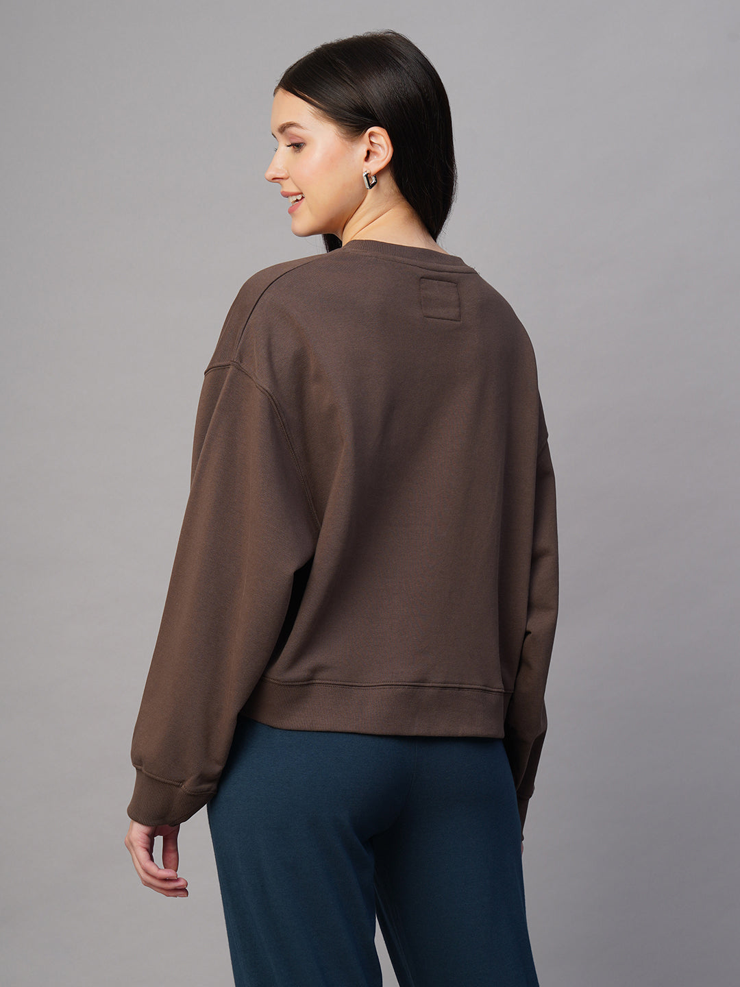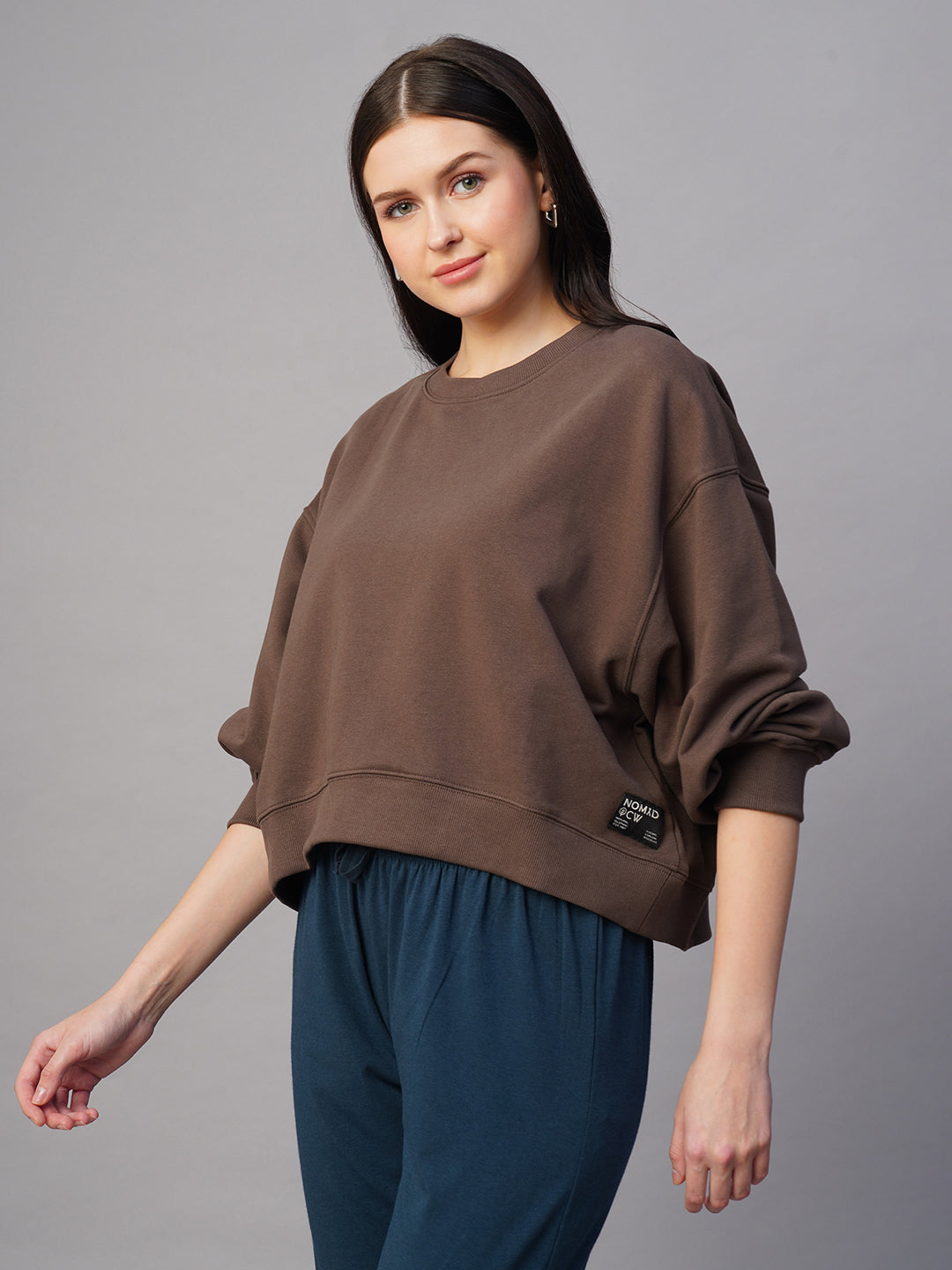 Women's Brown Organic Cotton Regular Fit Sweatshirt