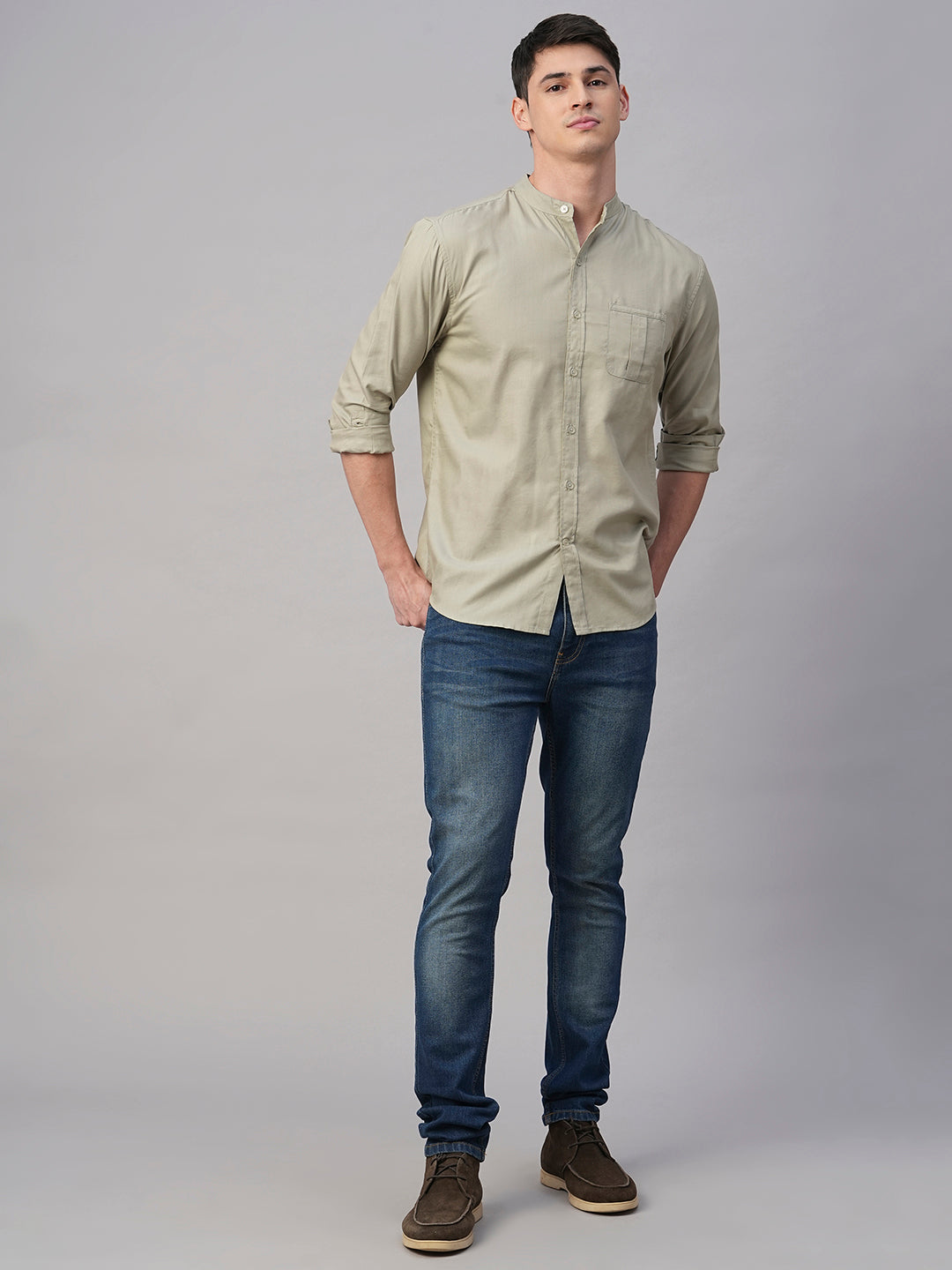 Men's Green Cotton Modal Regular Fit Shirt
