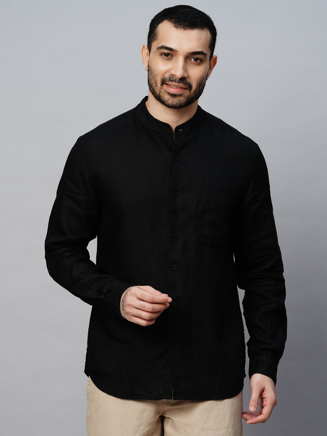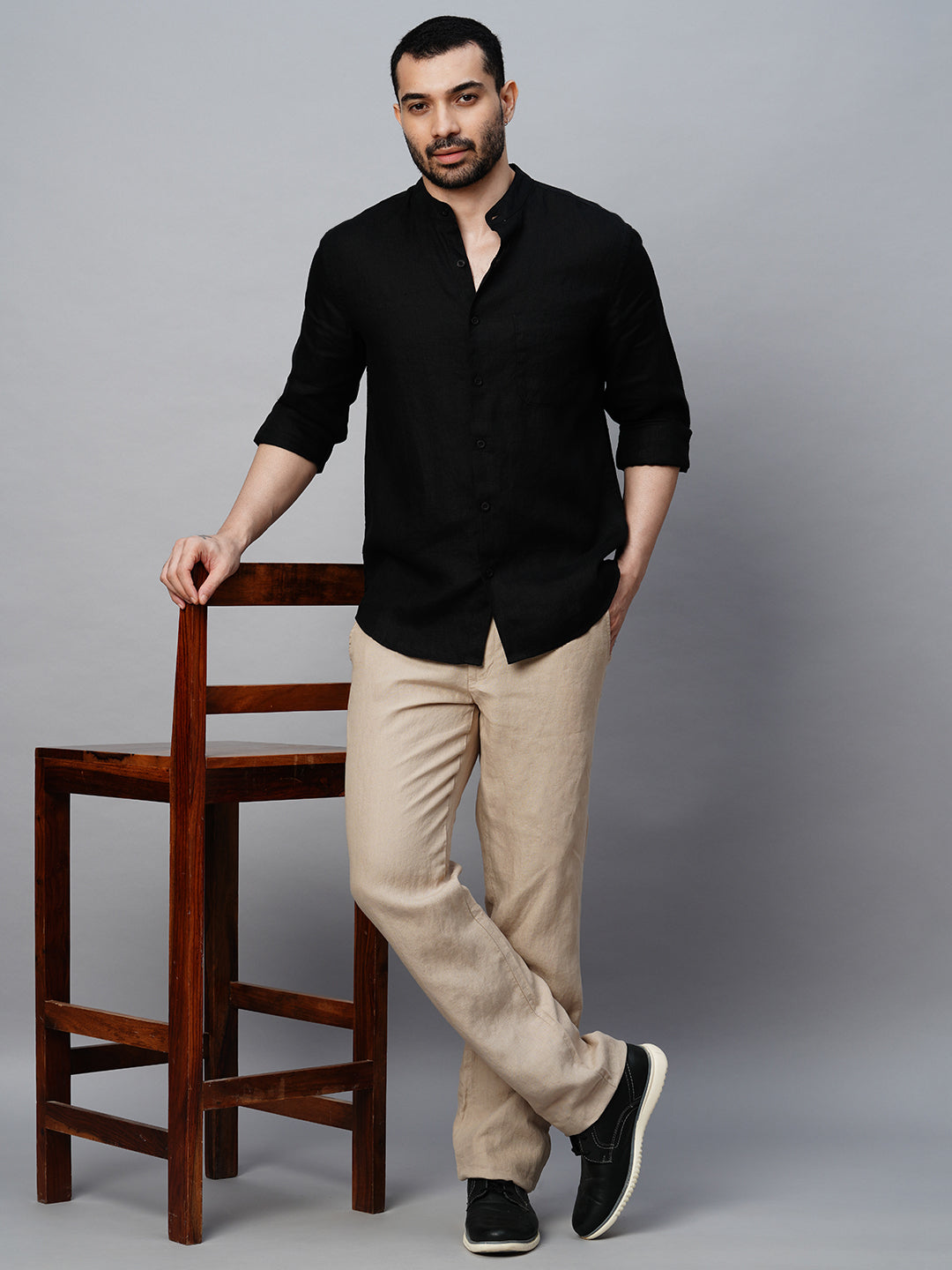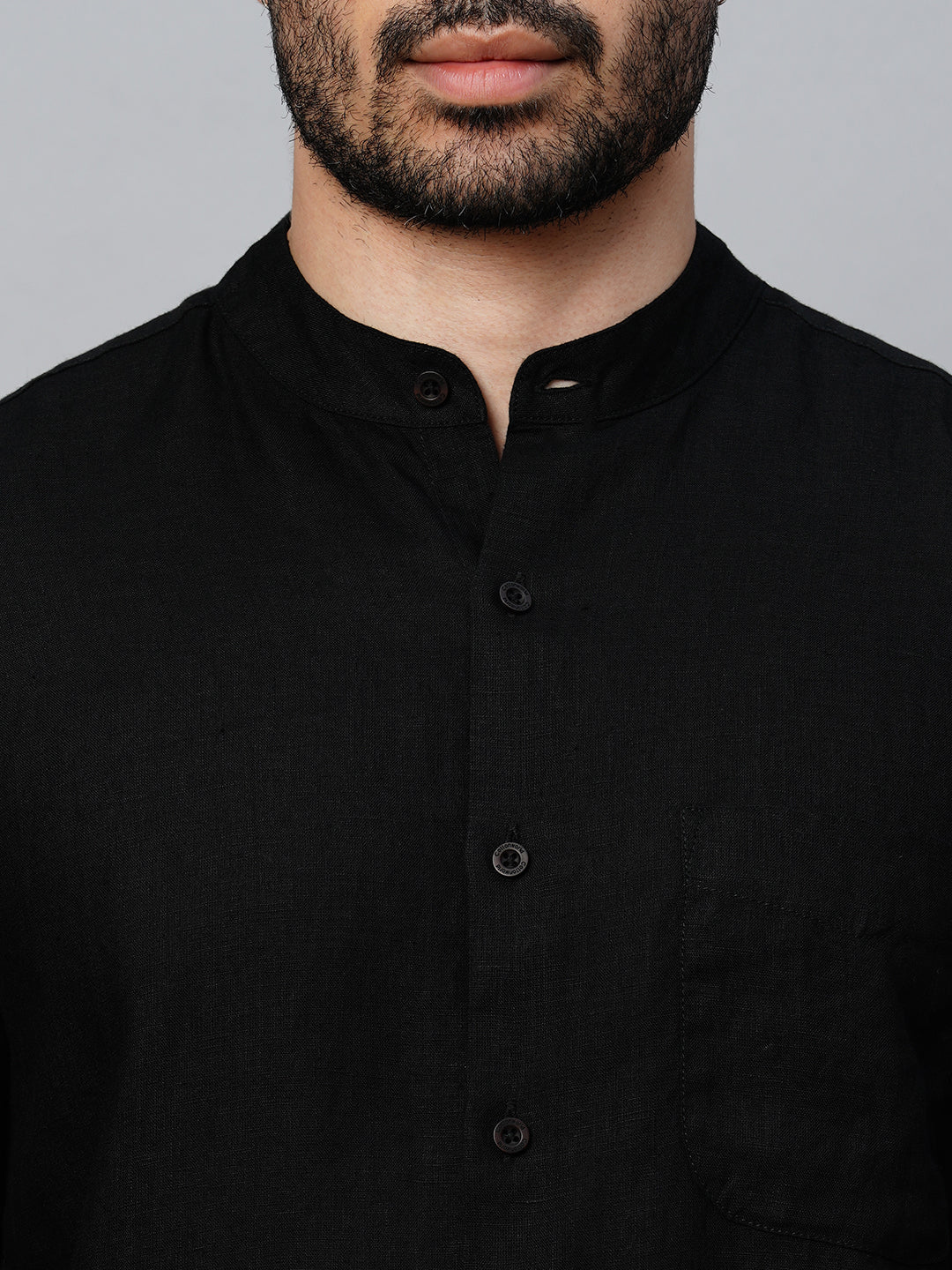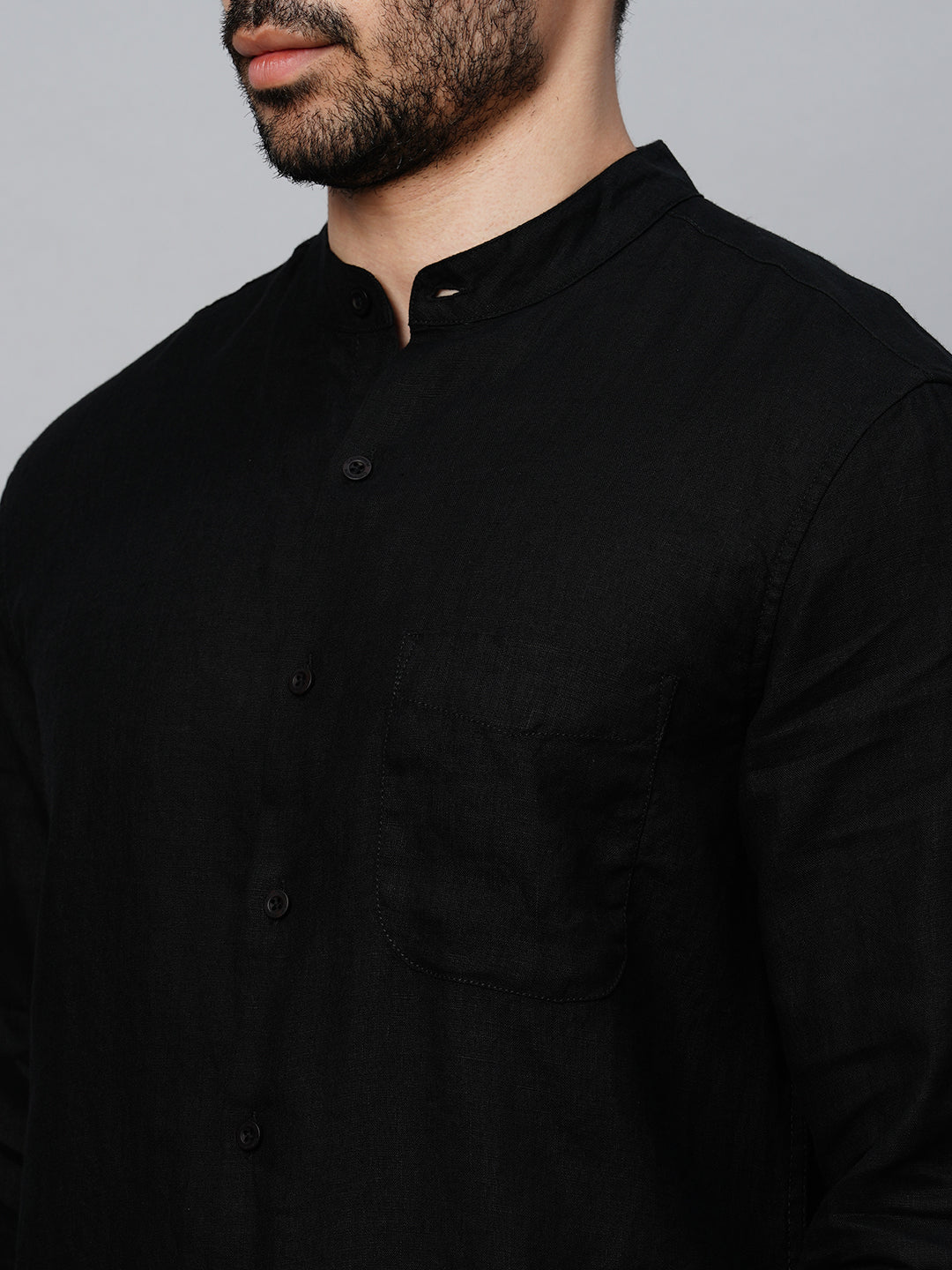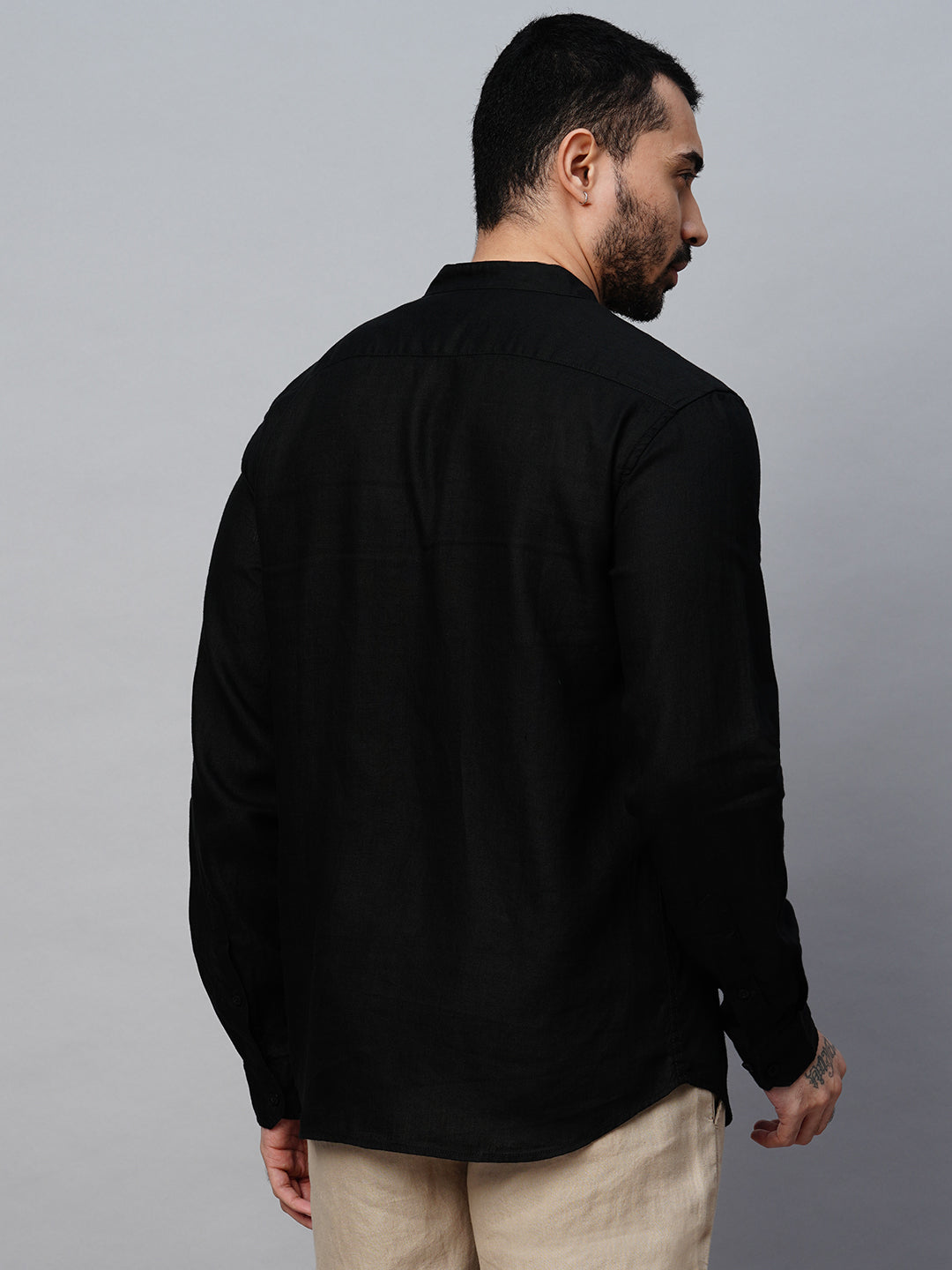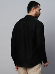 Men's Black 100% Linen Regular Fit Shirt