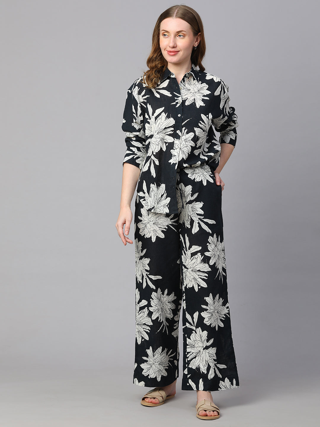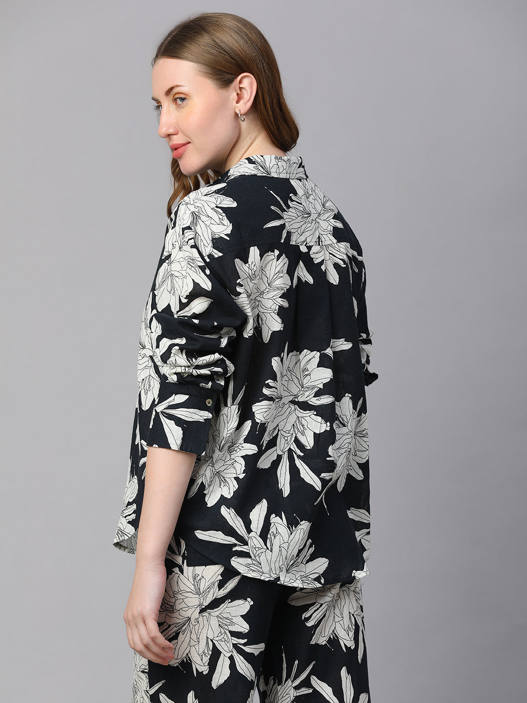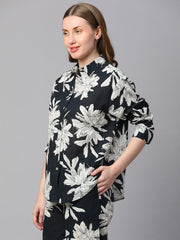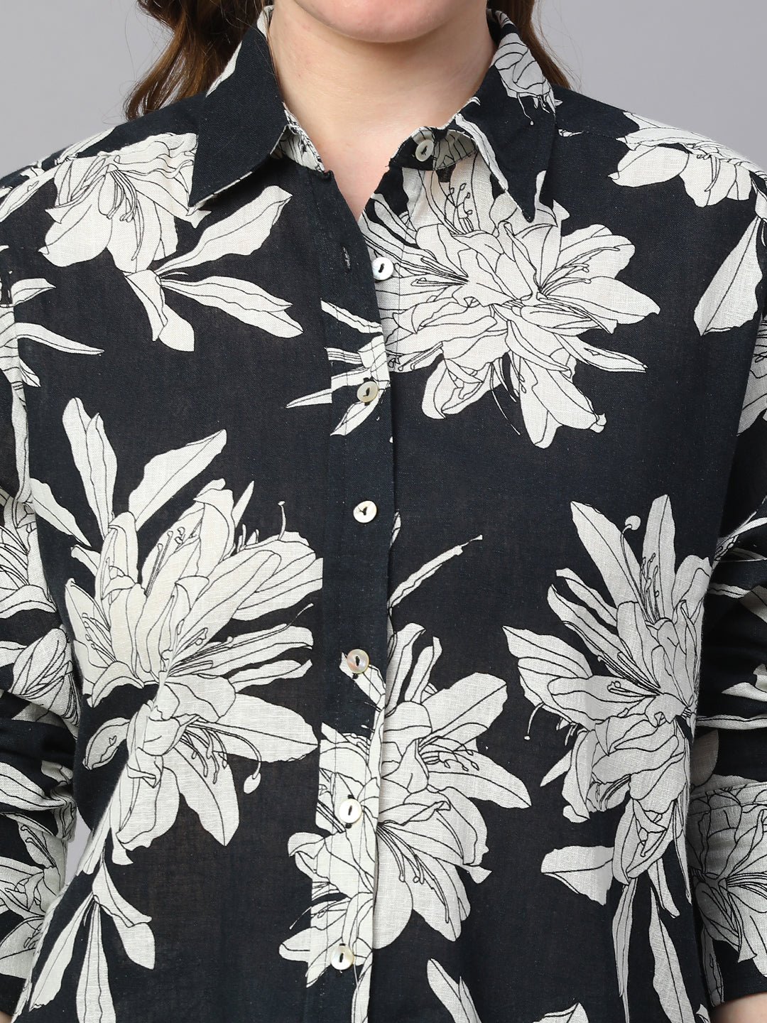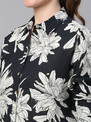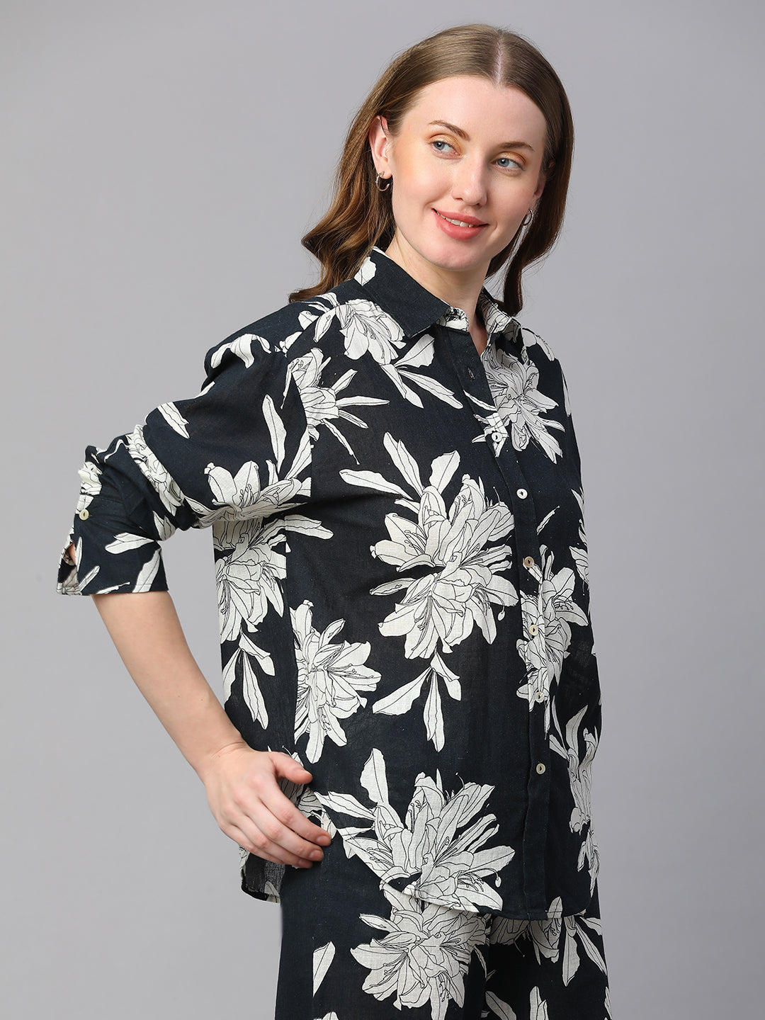 Women's Midnight Blue Cotton Flax Boxy Fit Blouse