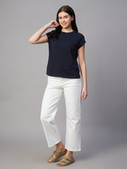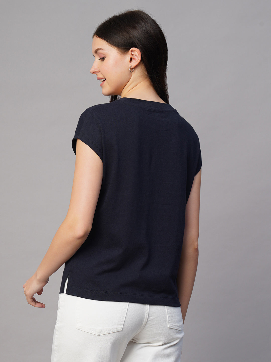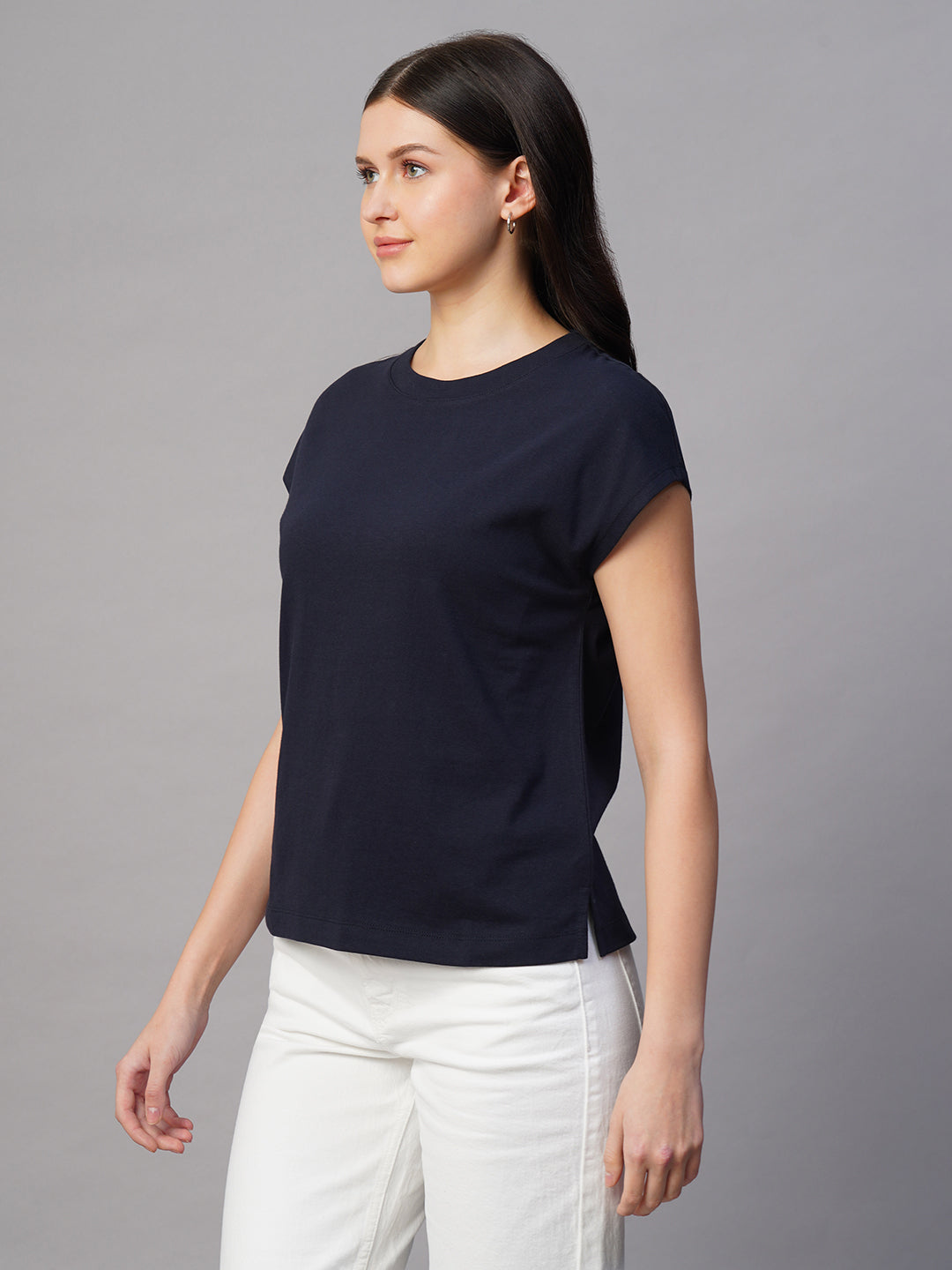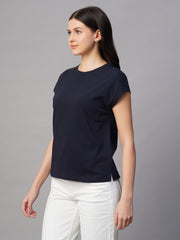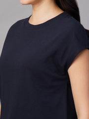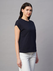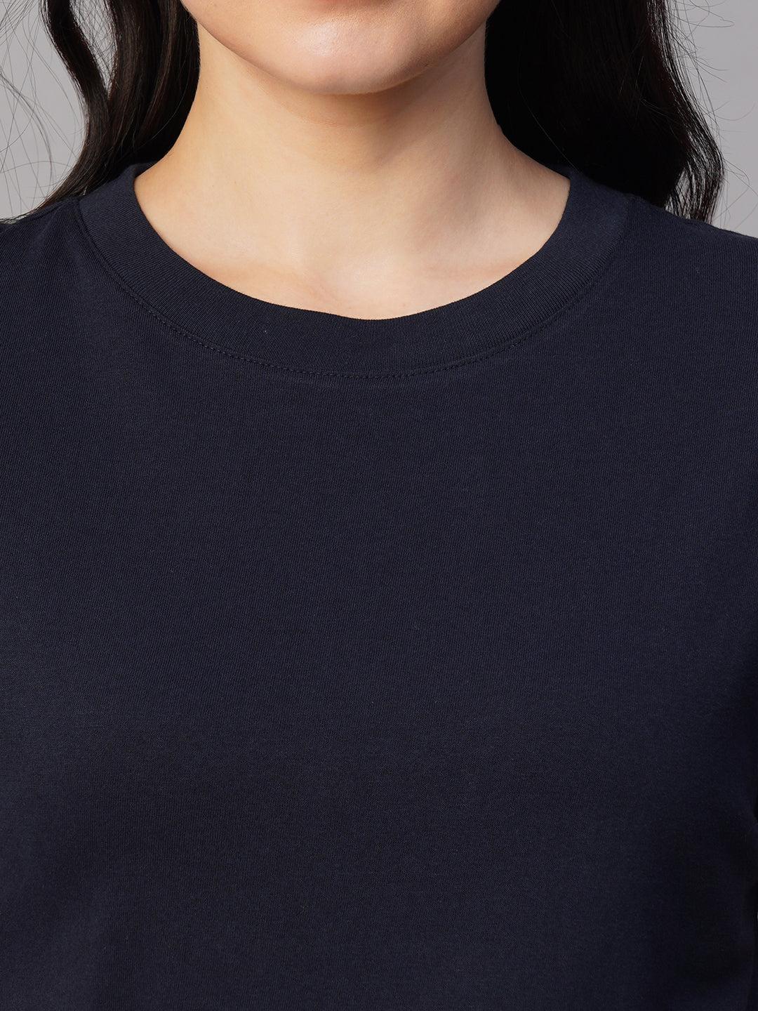 Women's Navy 100% Cotton Regular Fit Tshirt
