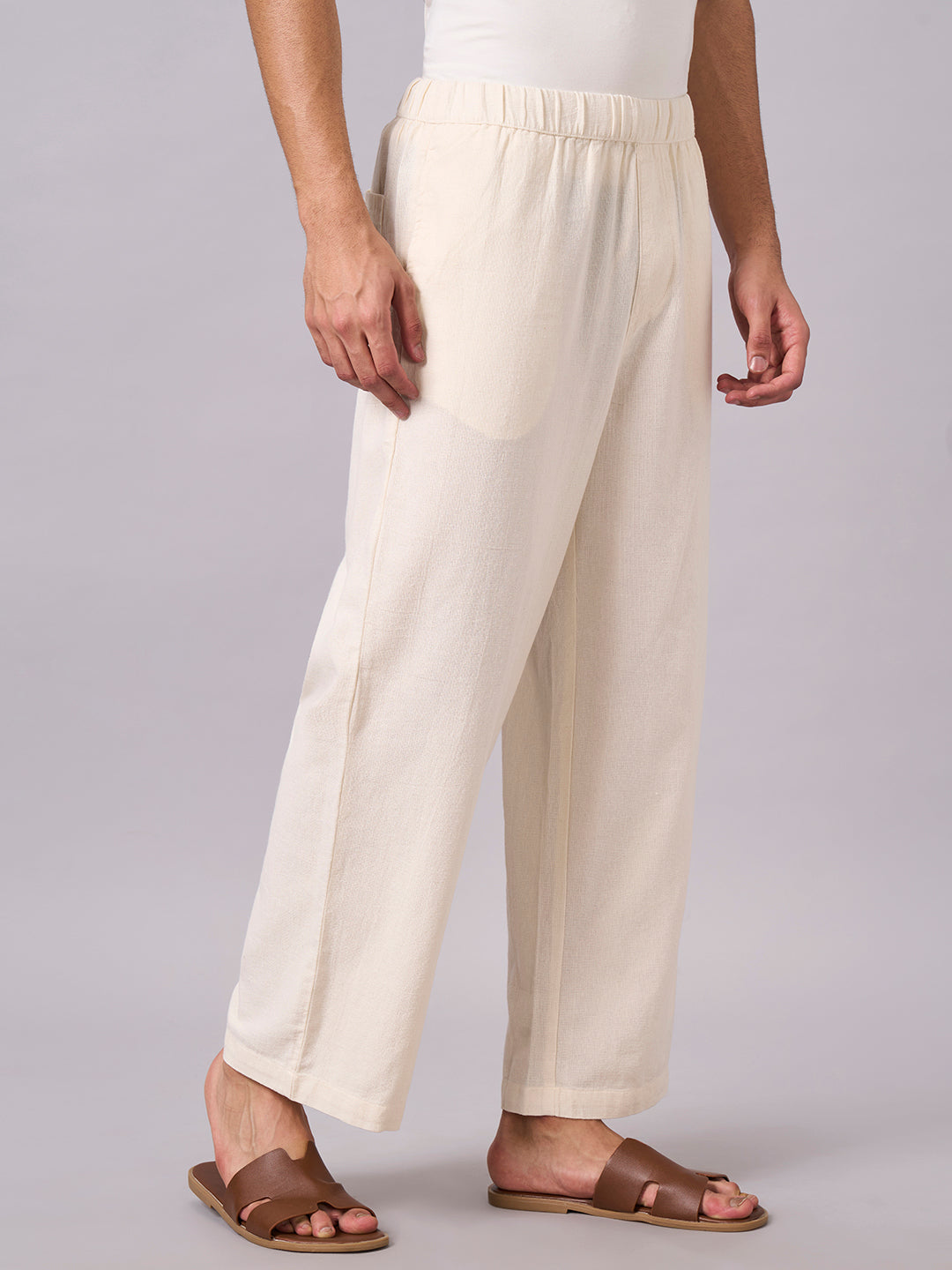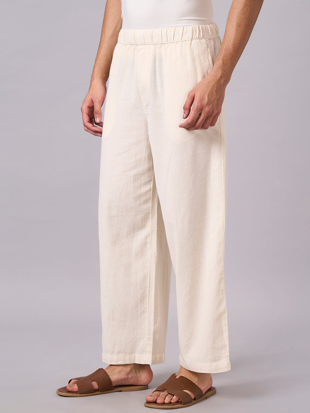 Men's Offwhite 100% Cotton Loose Fit Pant