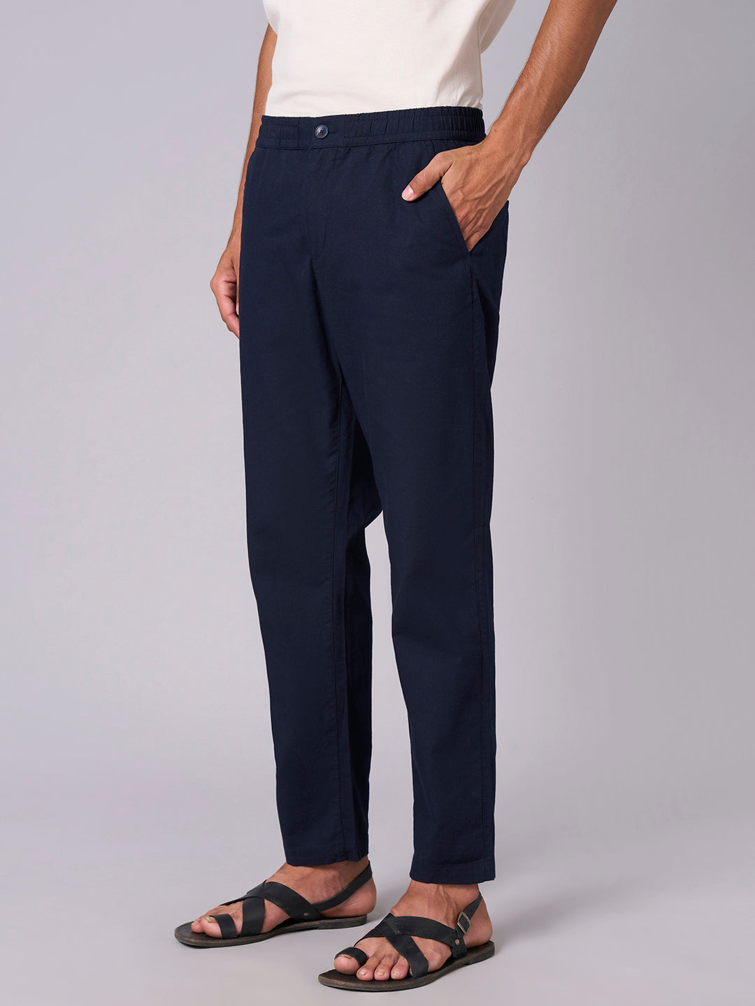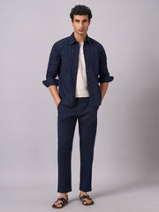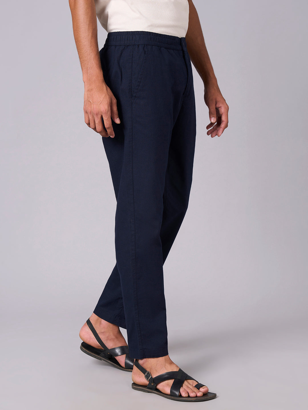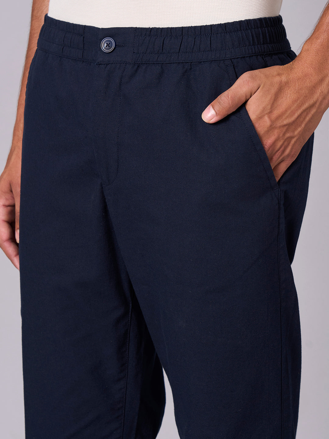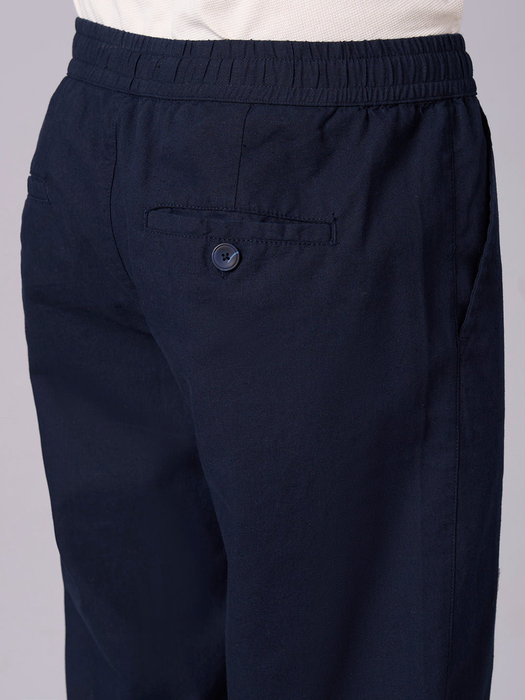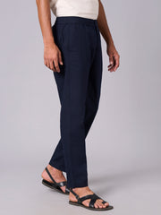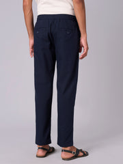 Men's Navy Cotton Linen Regular Fit Pant