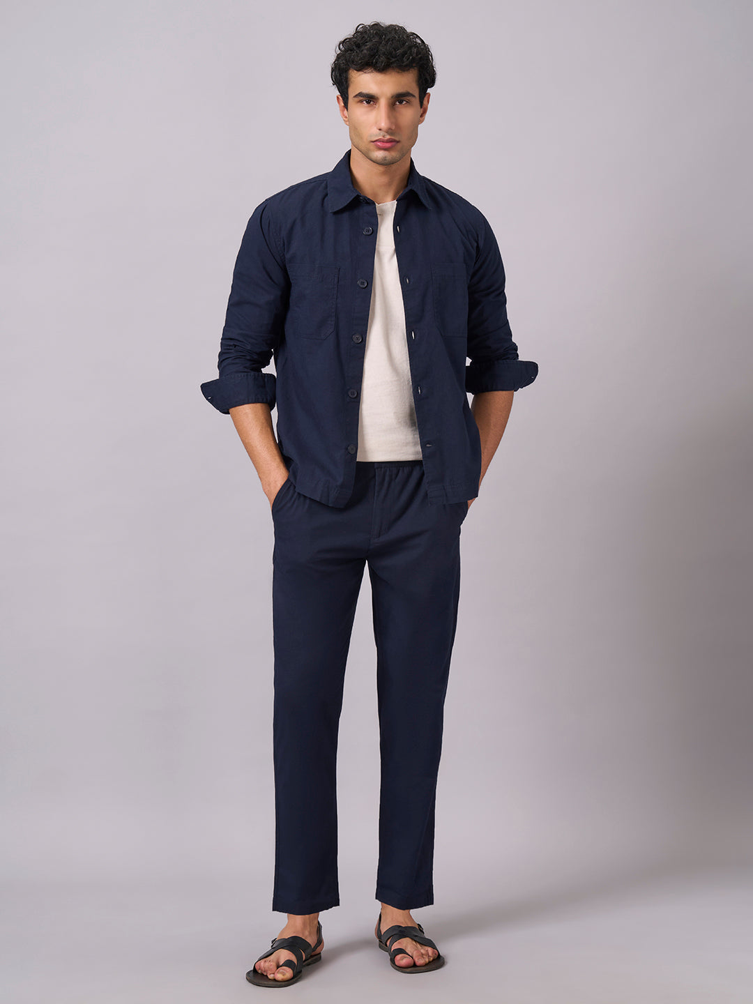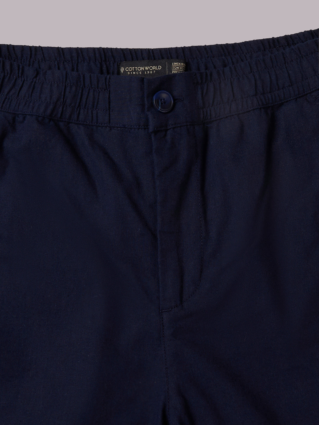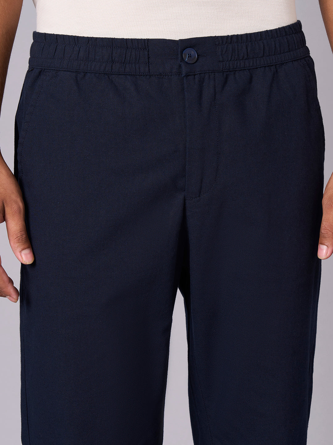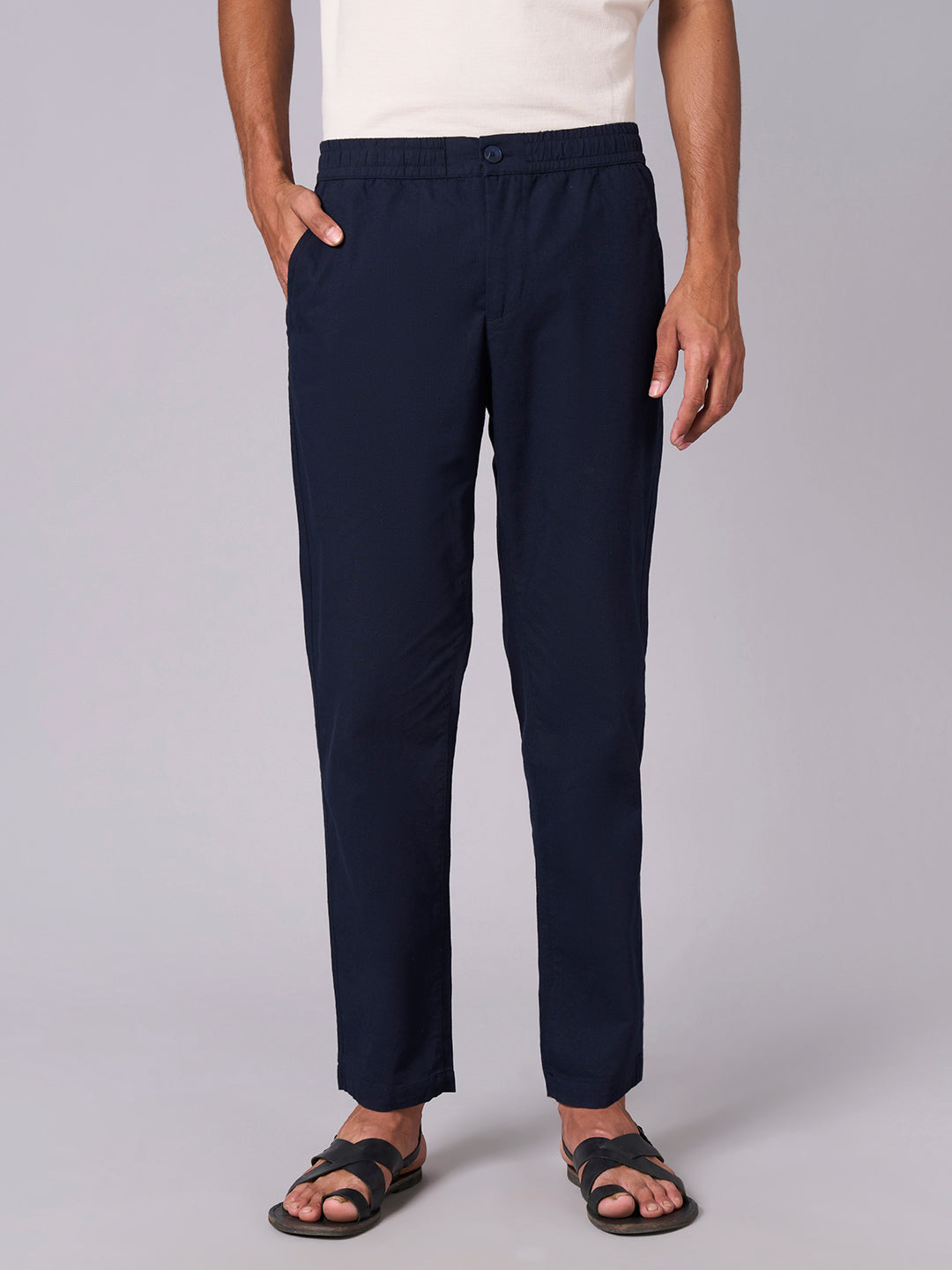 Men's Navy Cotton Linen Regular Fit Pant