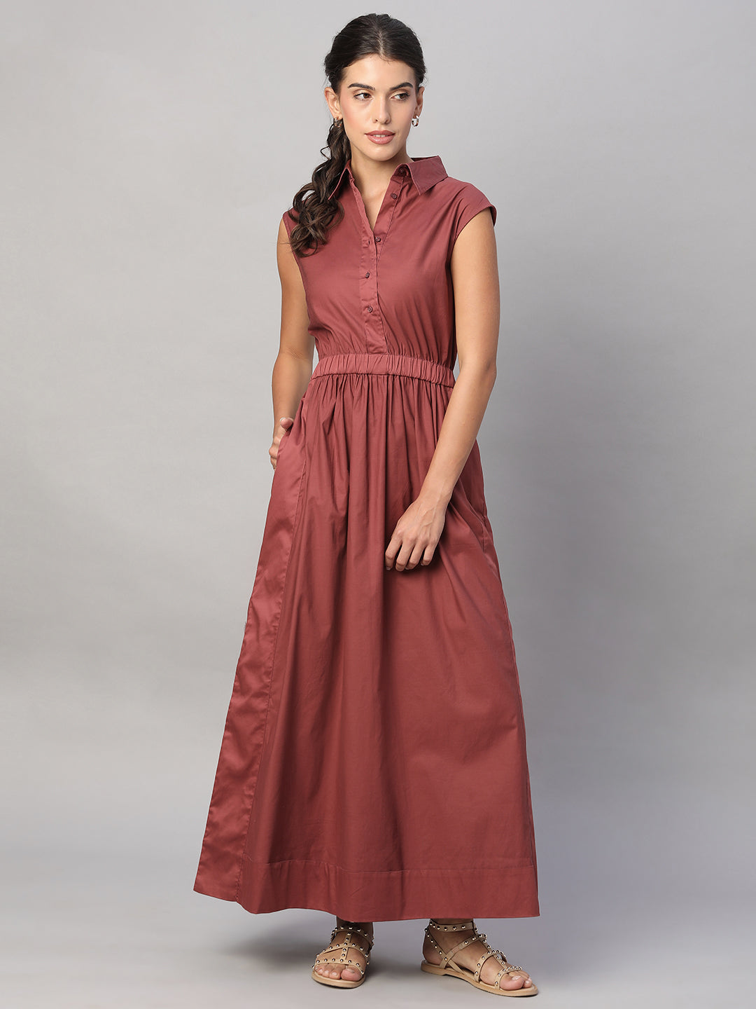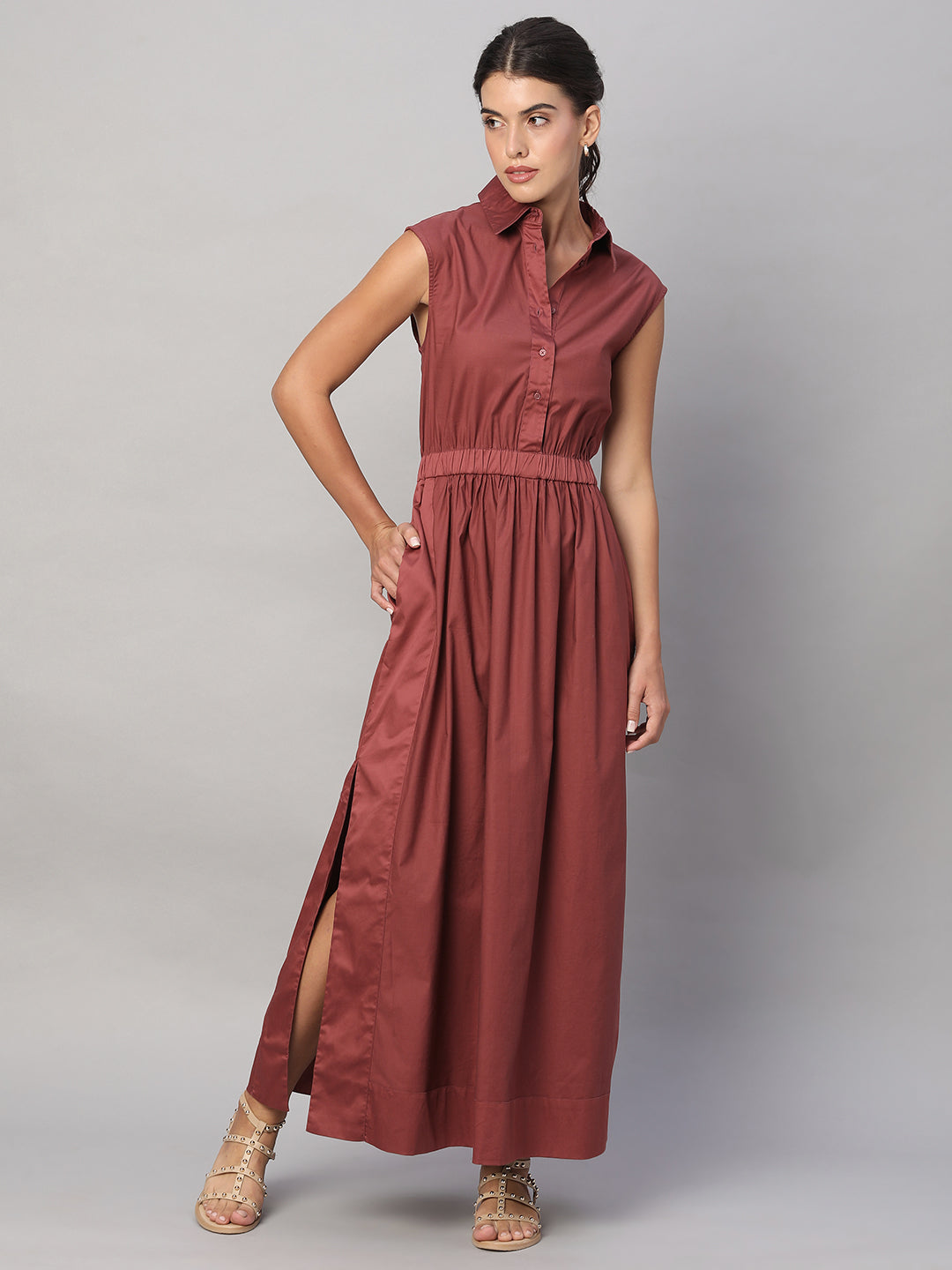 Women's Rust 100% Cotton Regular Fit Dress