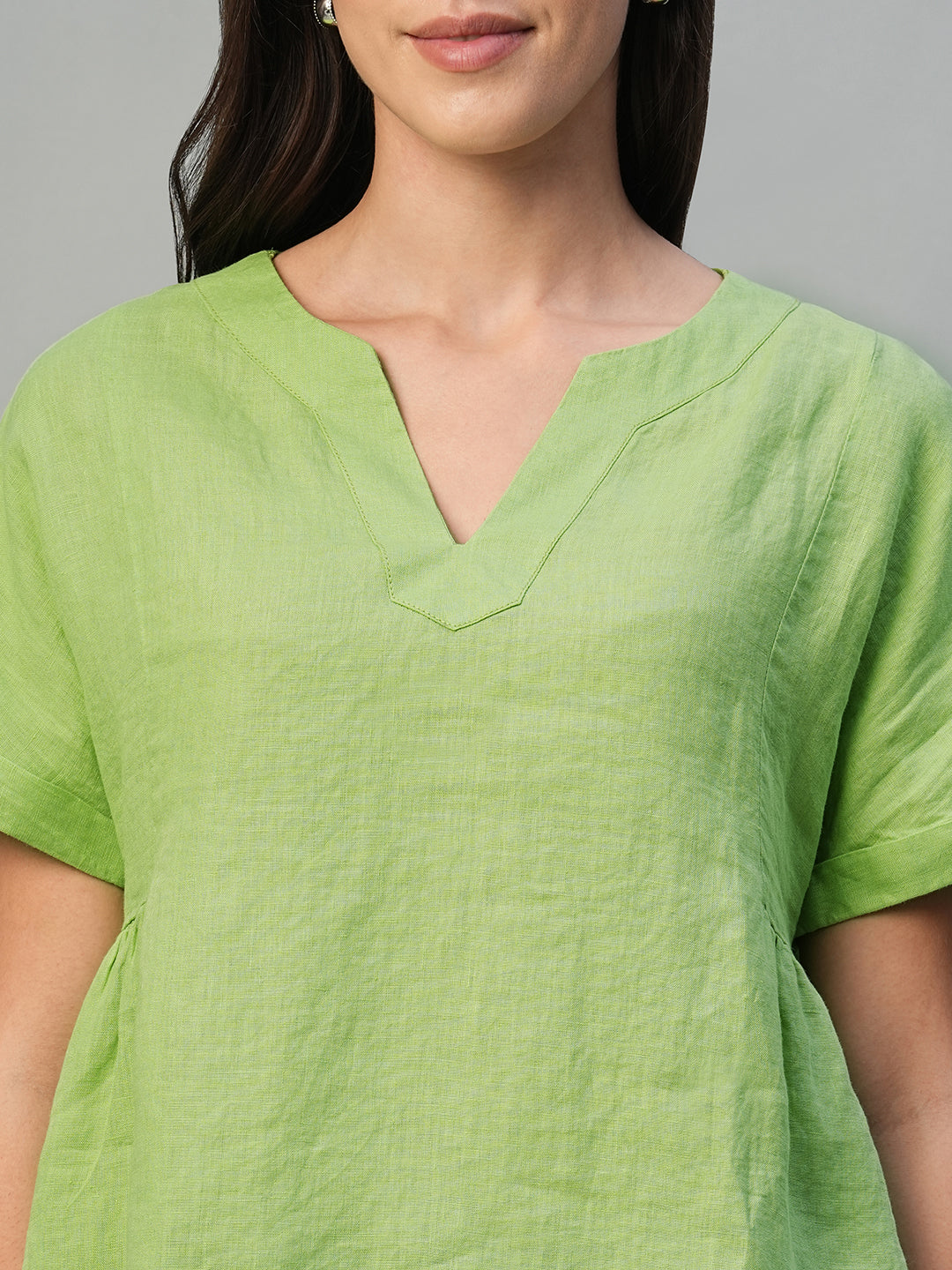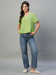 Women's Lime 100% Linen Regular Fit Blouse