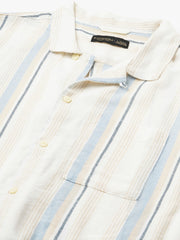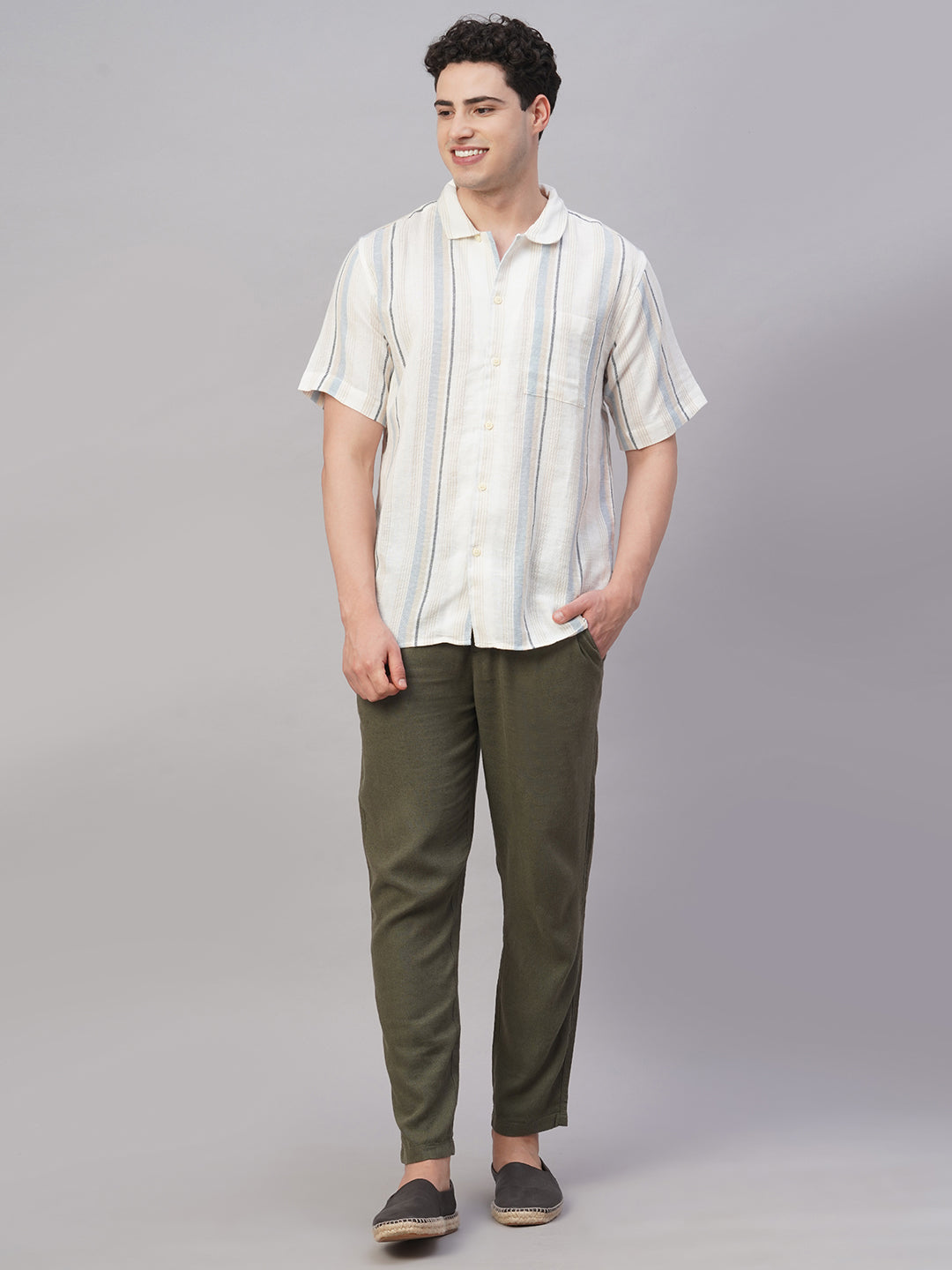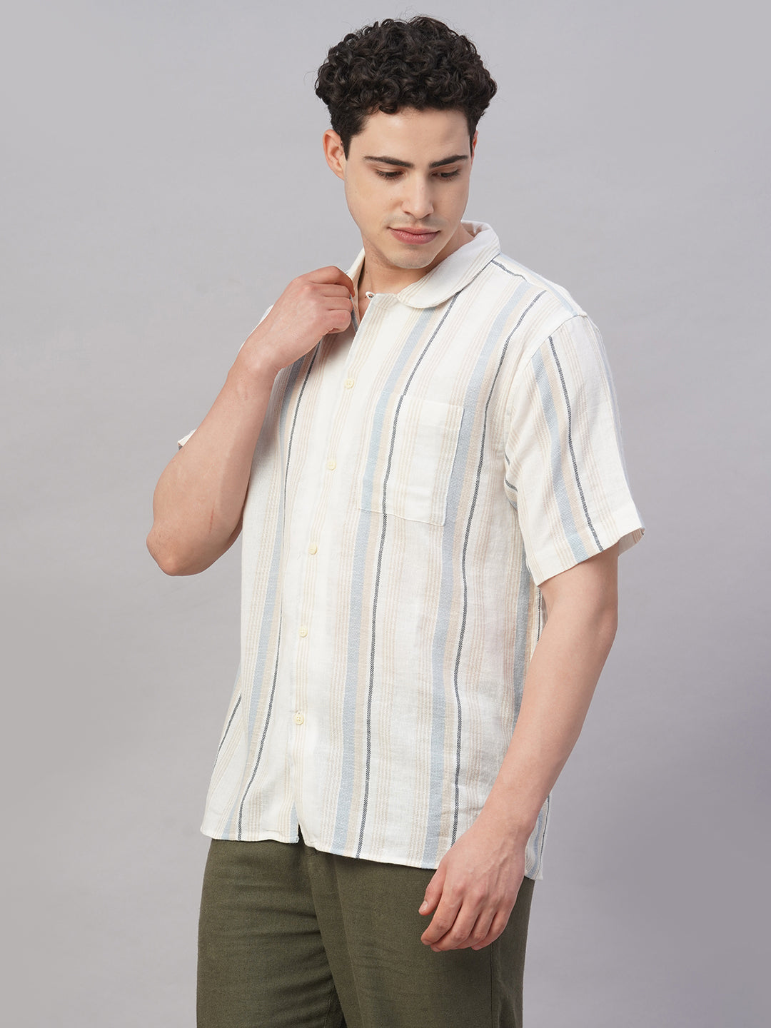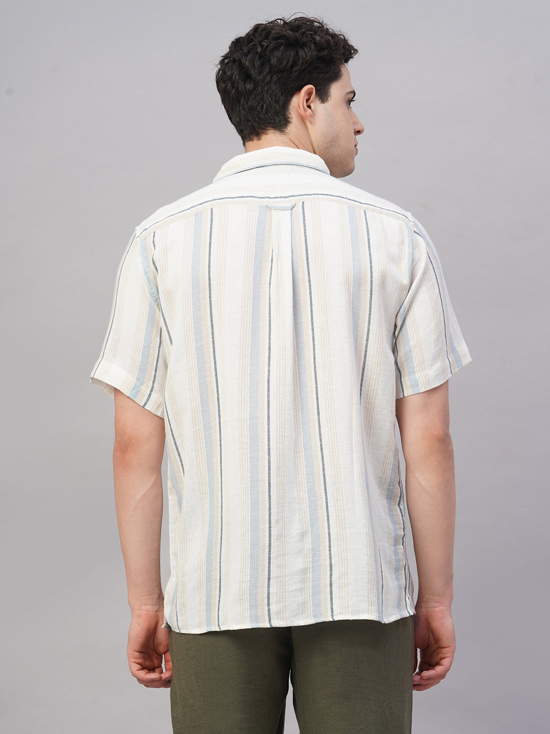 Men's White/Sky Cotton Flax Regular Fit Shirt