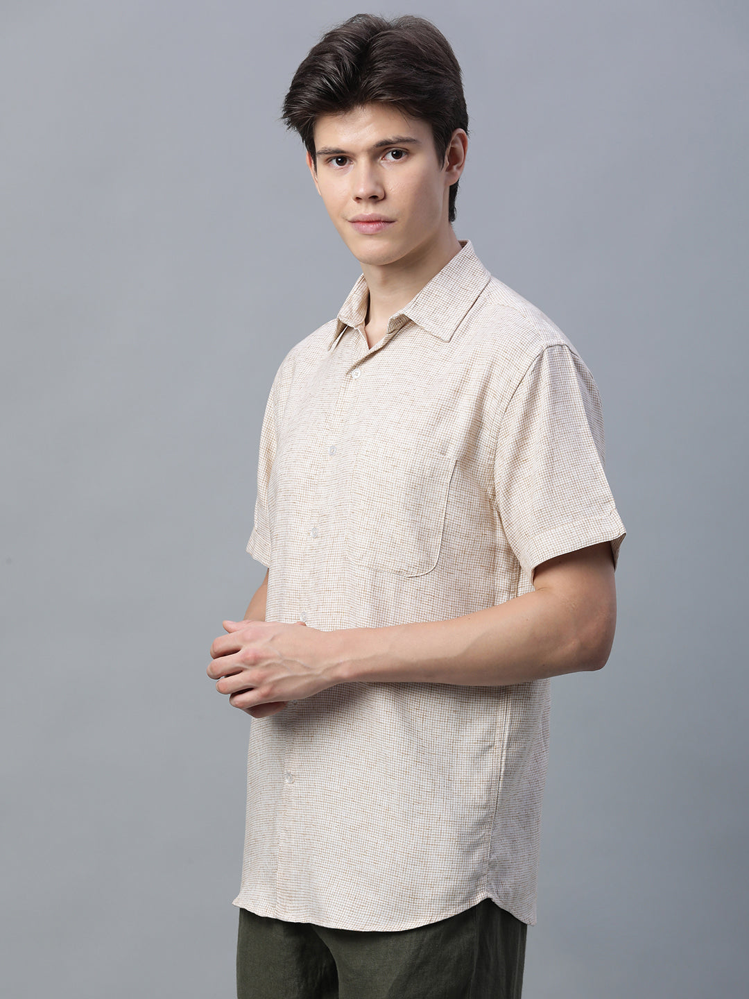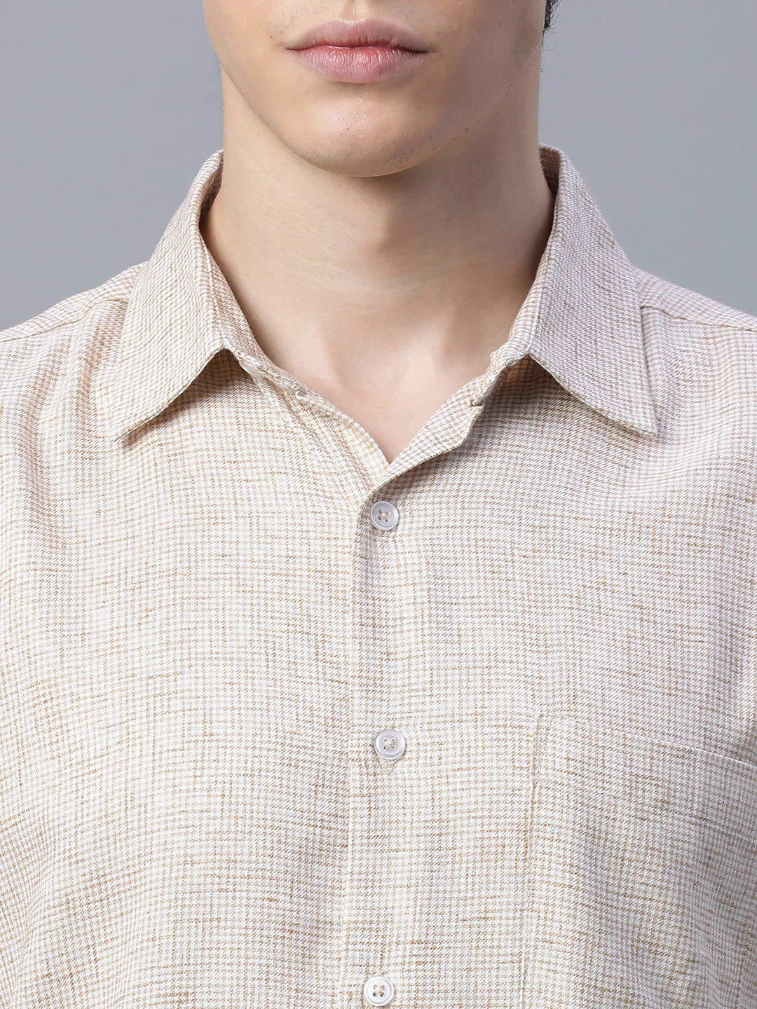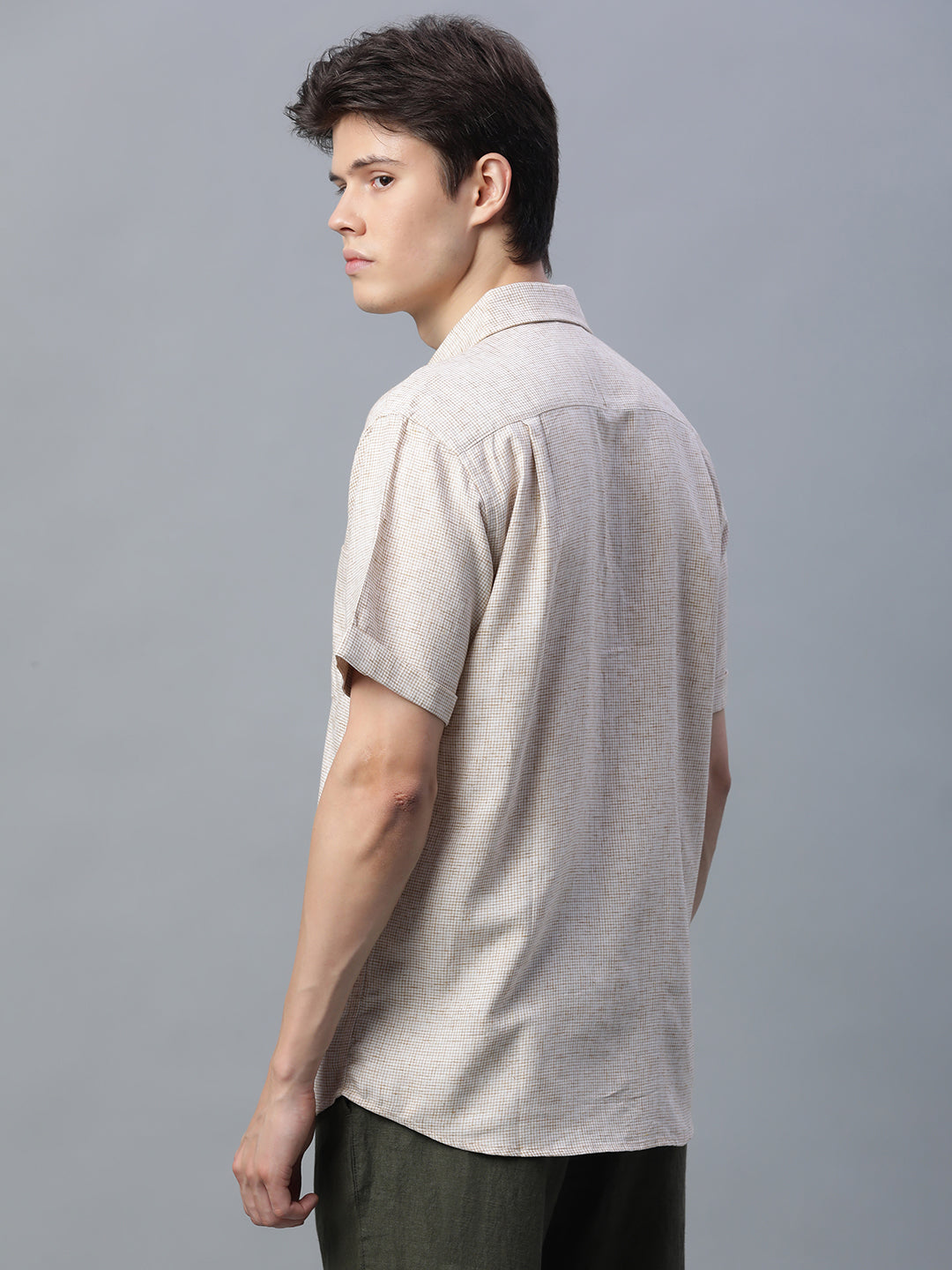 Men's Khaki 100% Cotton Regular Fit Shirt