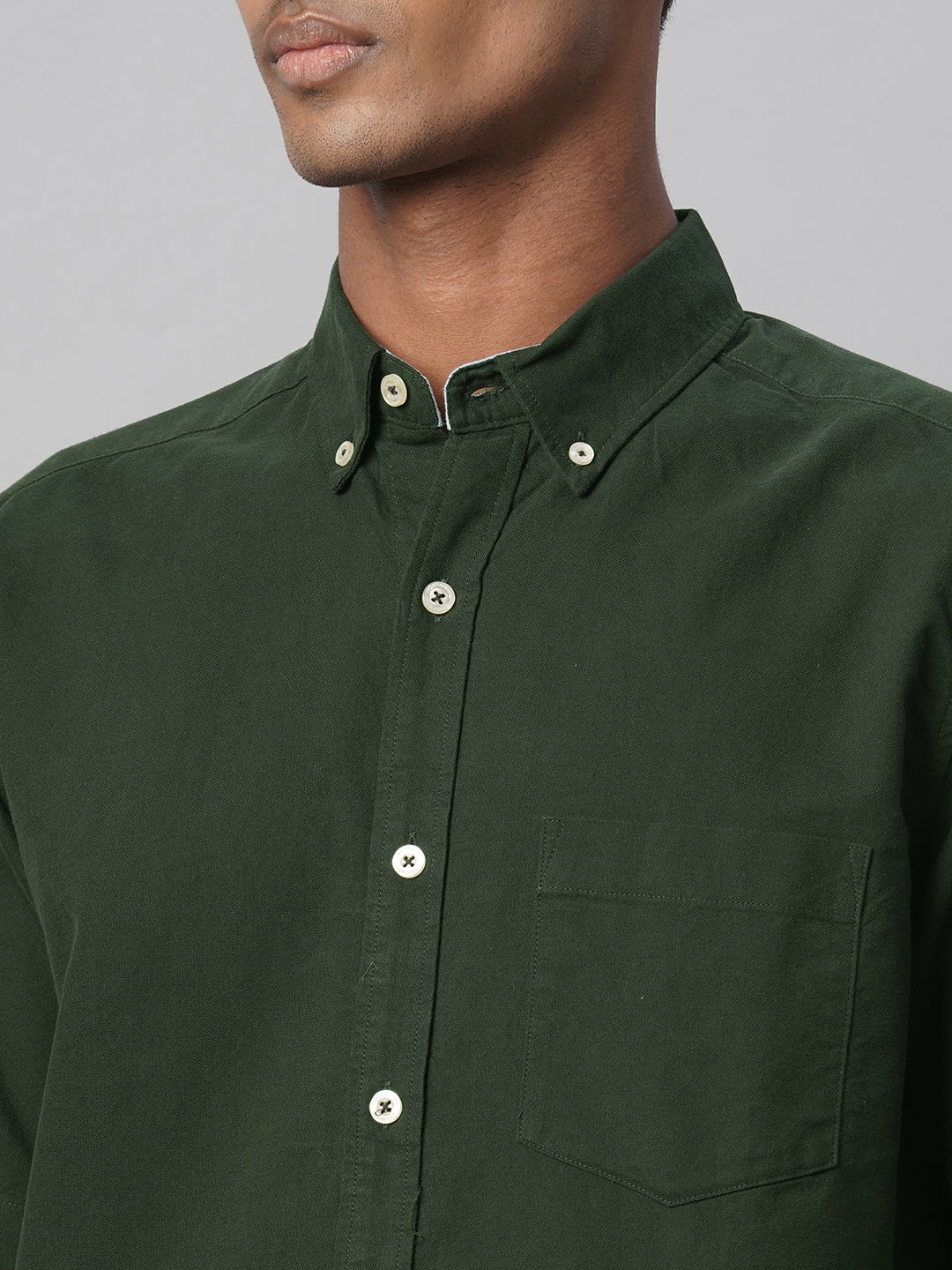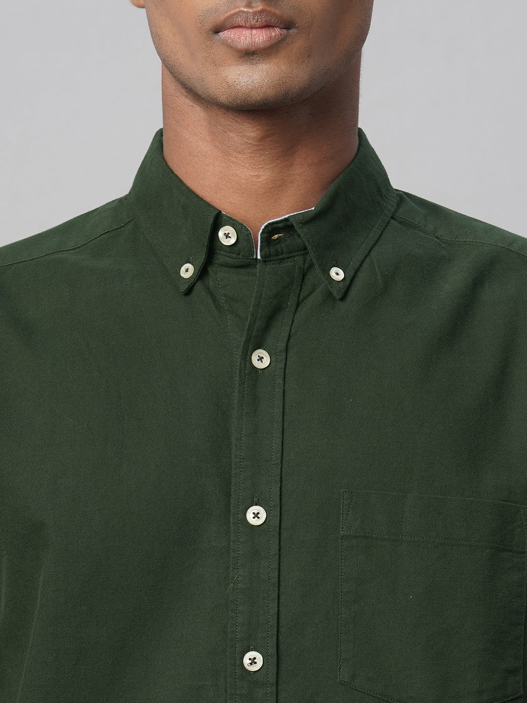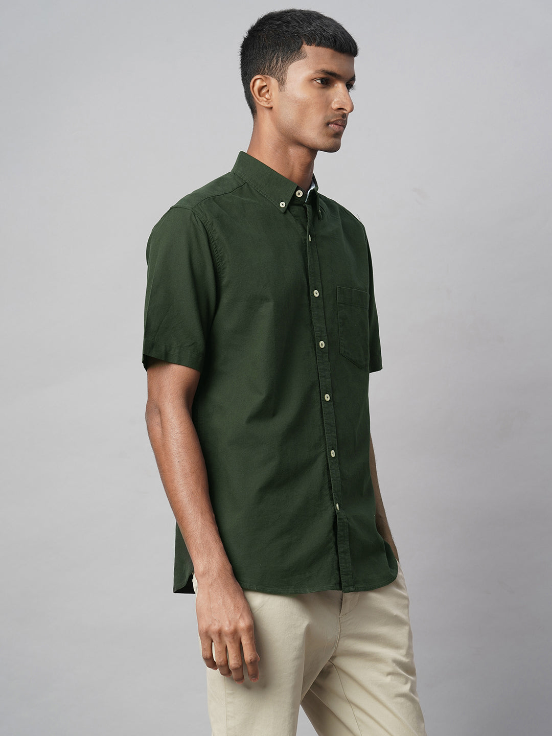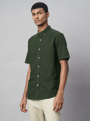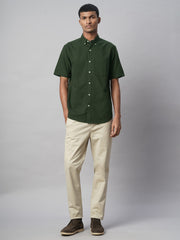 Men's Olive Oxford 100% Cotton Regular Fit Shirt