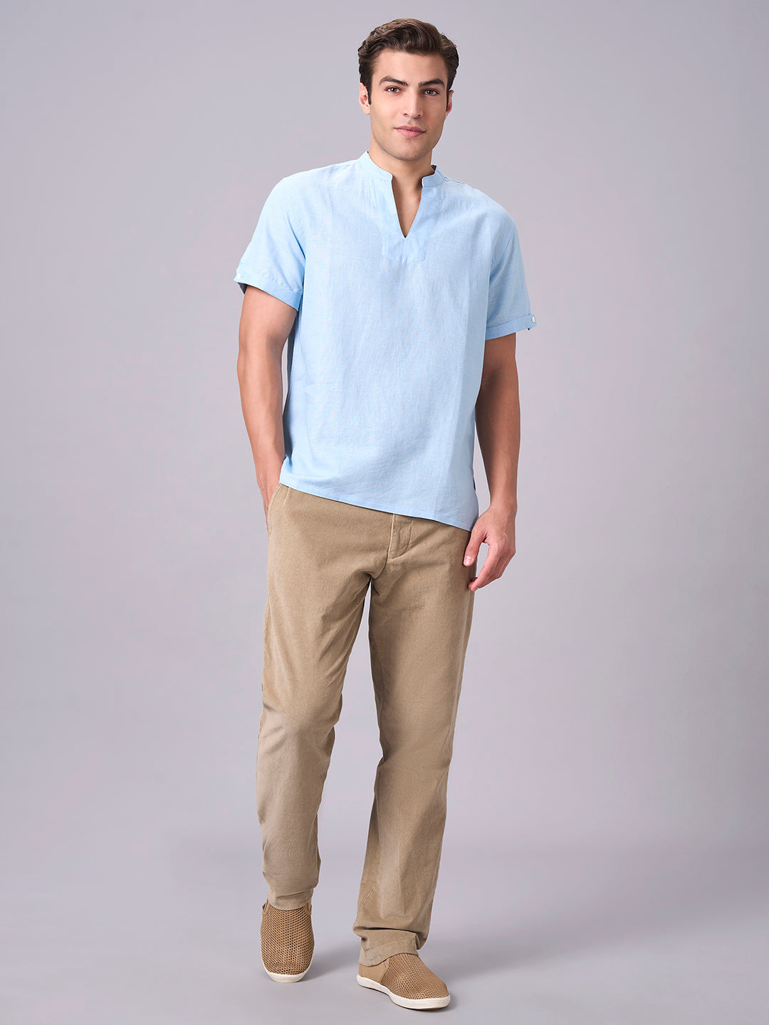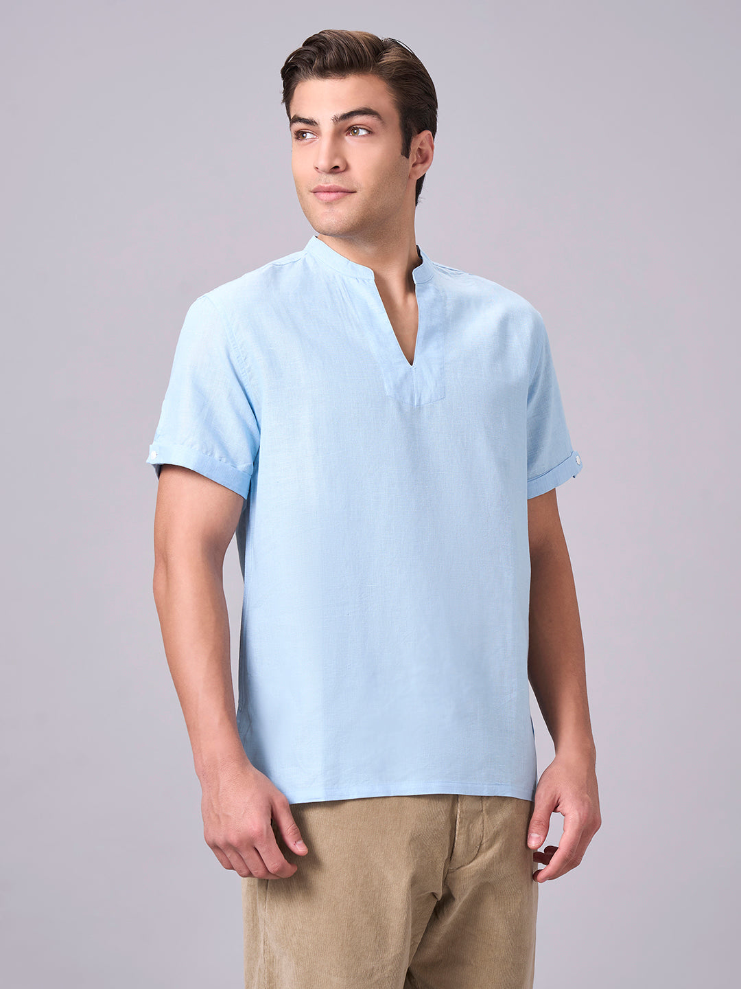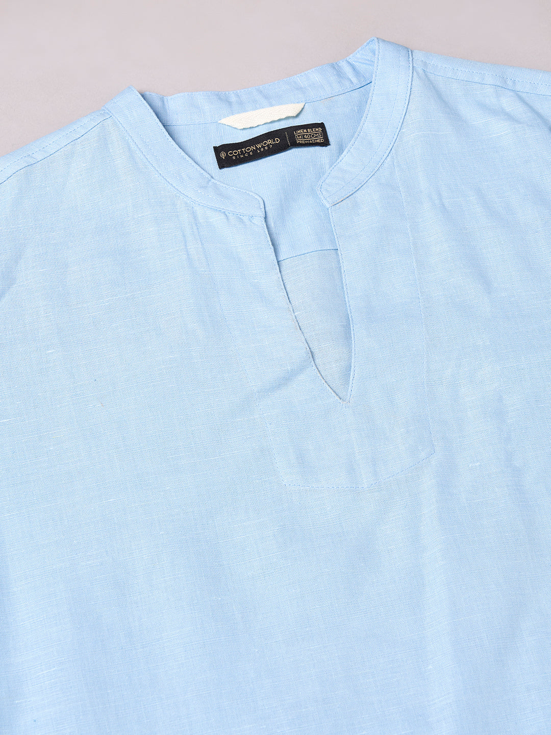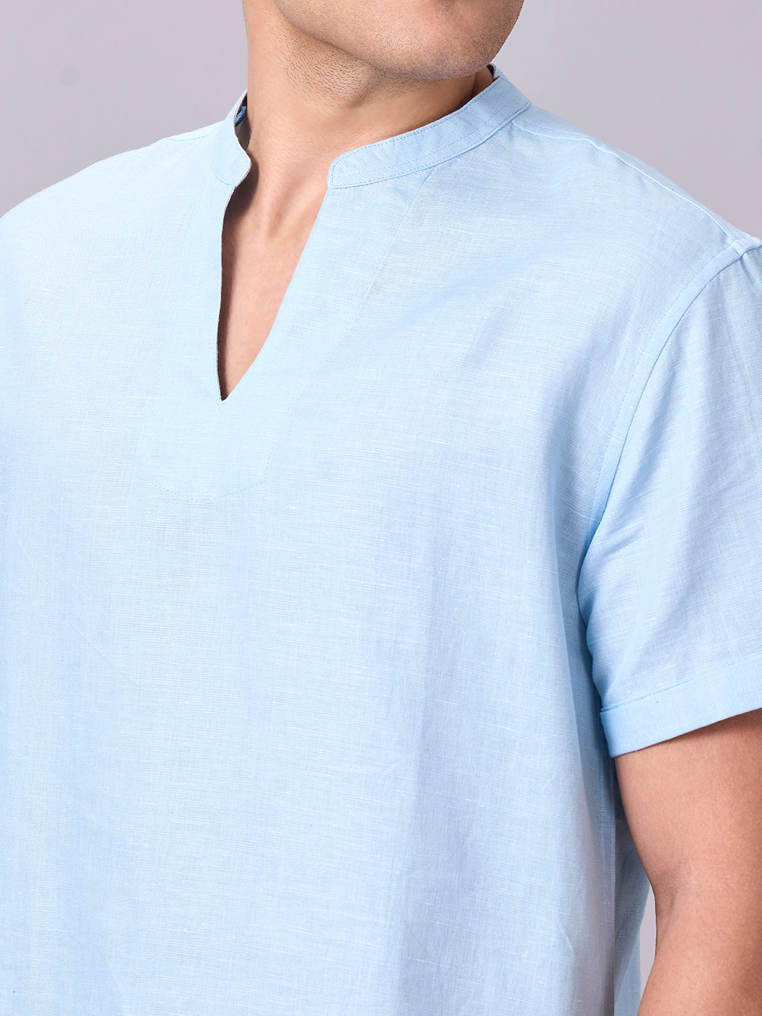 Men's Sky Linen Cotton Regular Fit Kurta Shirt