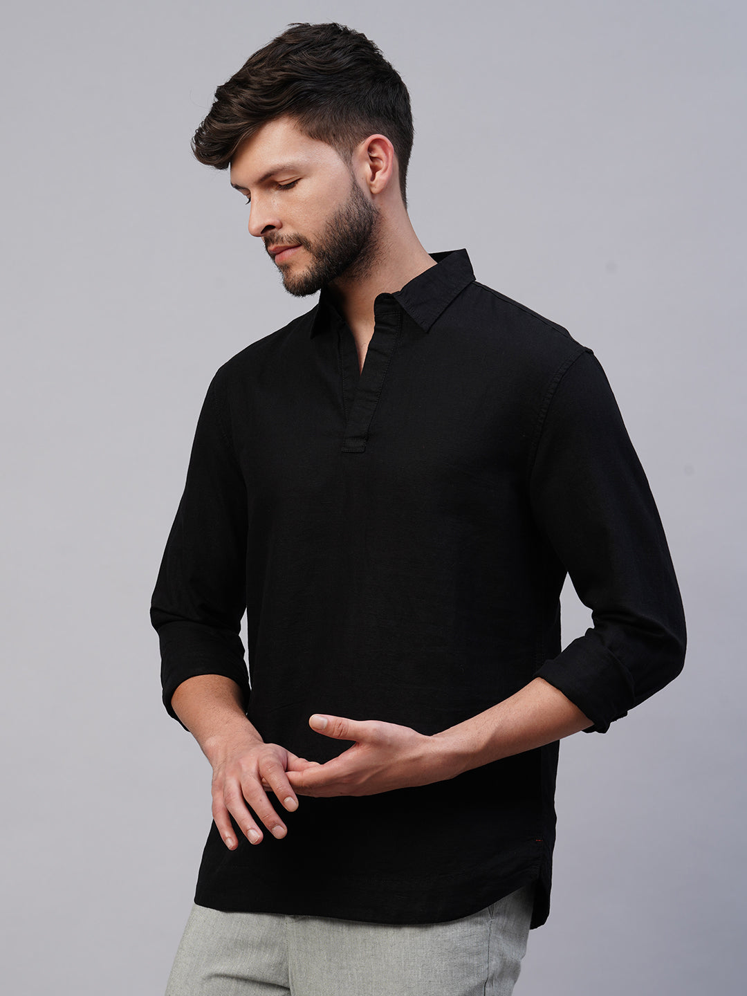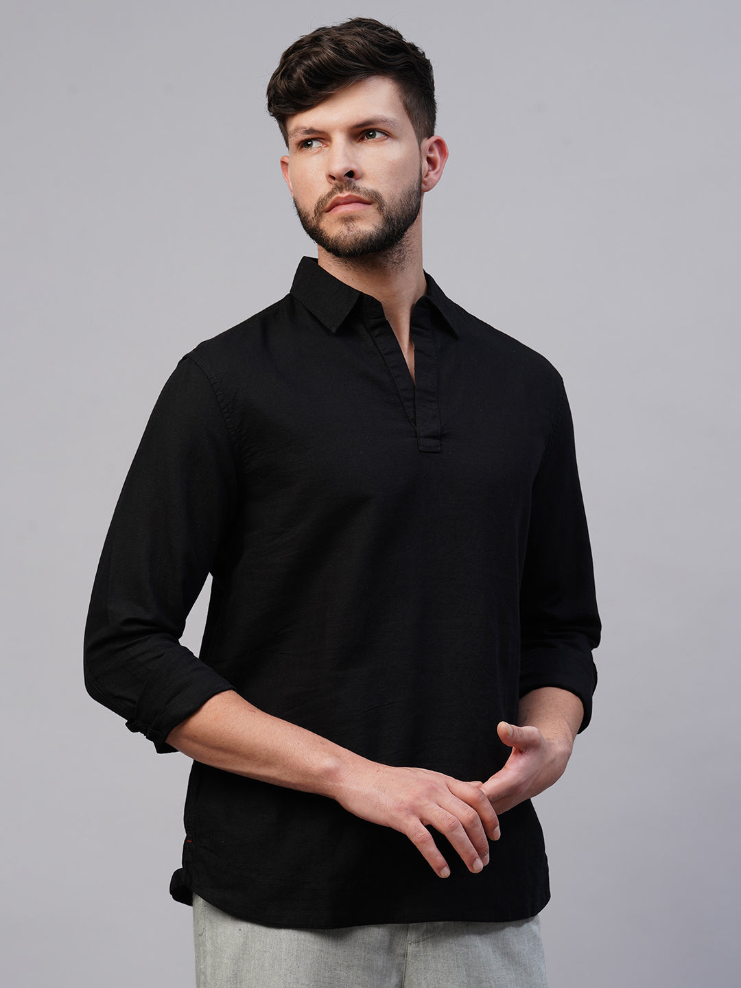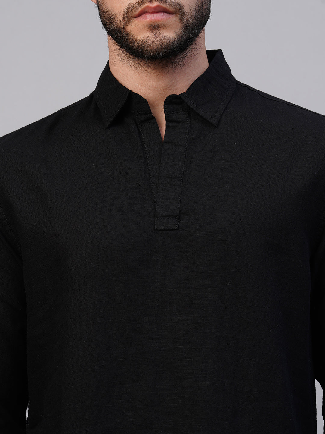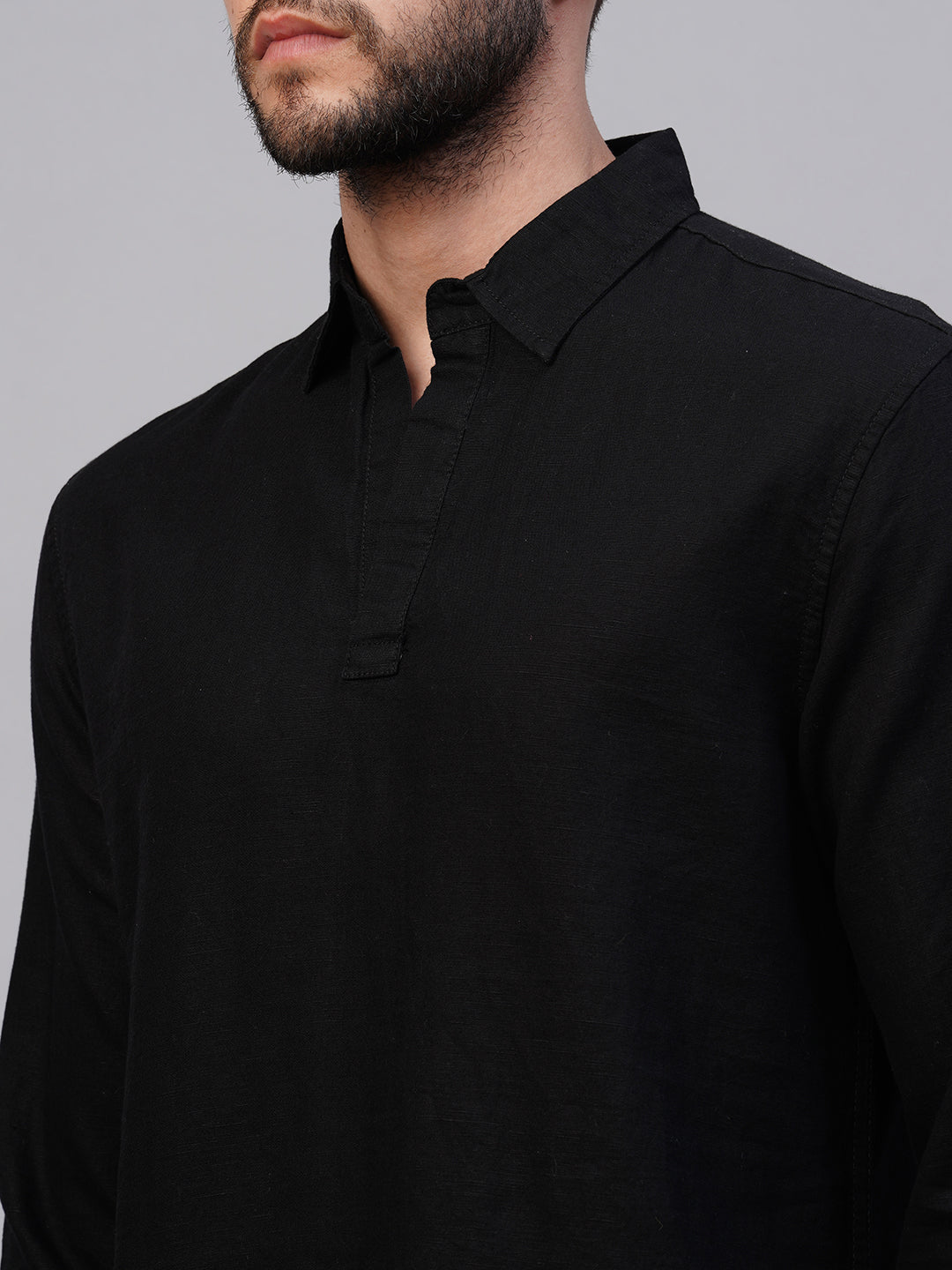 Men's Black 100% Linen Regular Fit Kurta Shirt