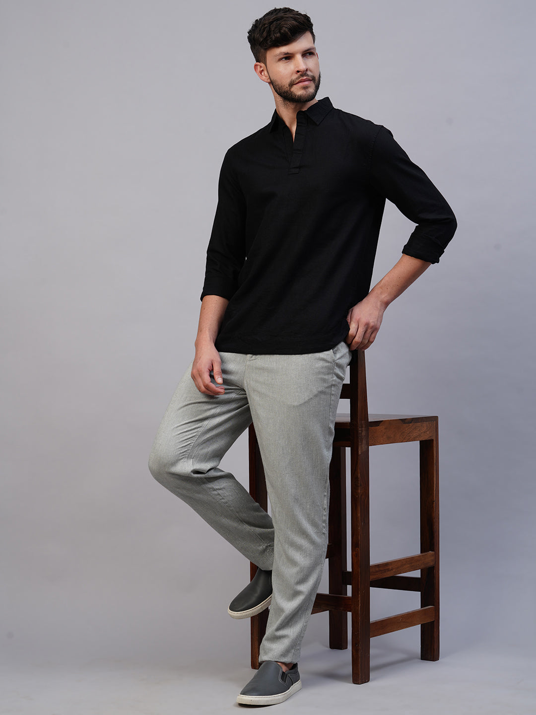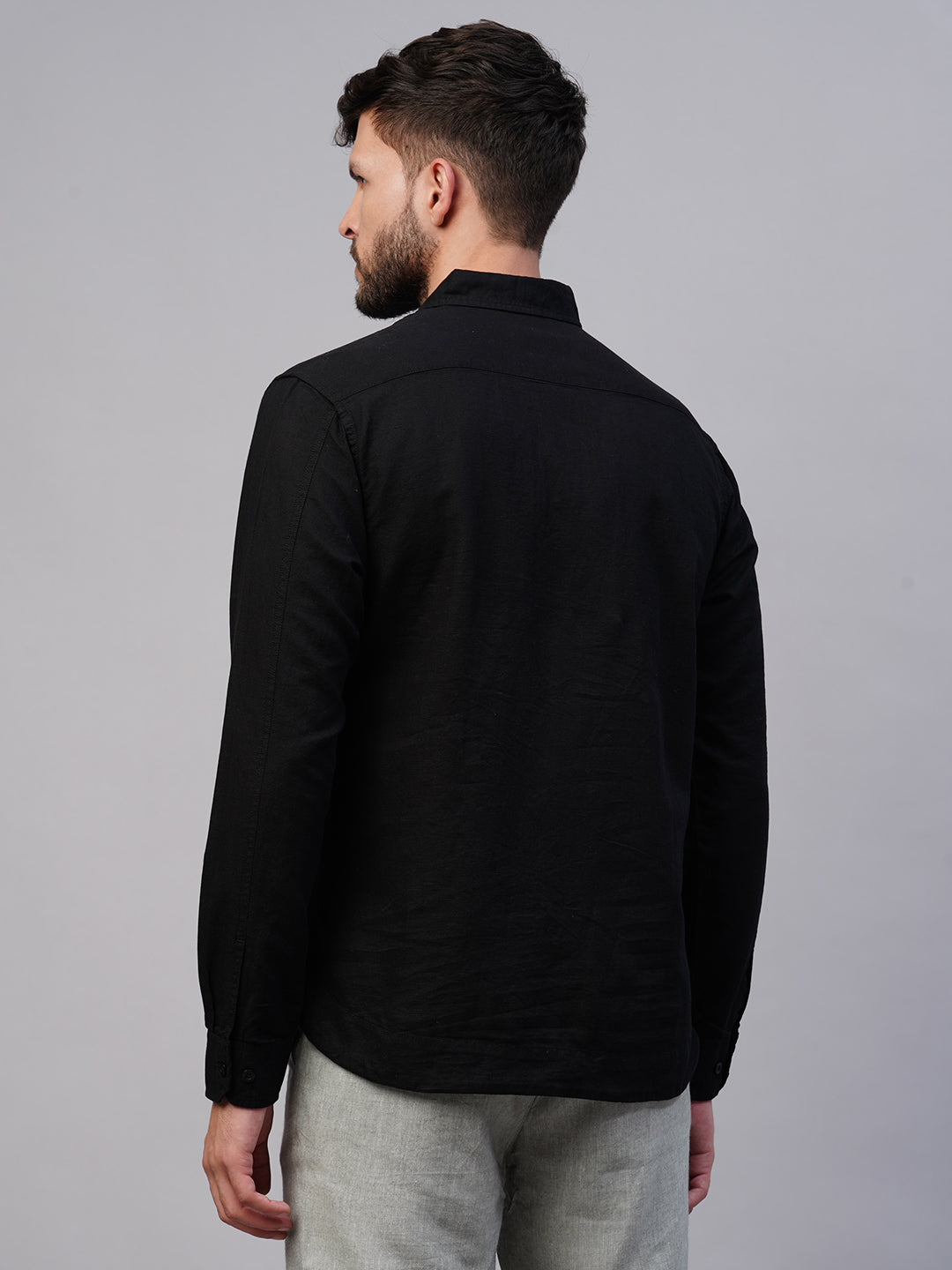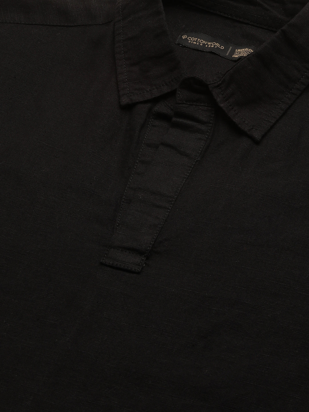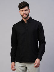 Men's Black 100% Linen Regular Fit Kurta Shirt