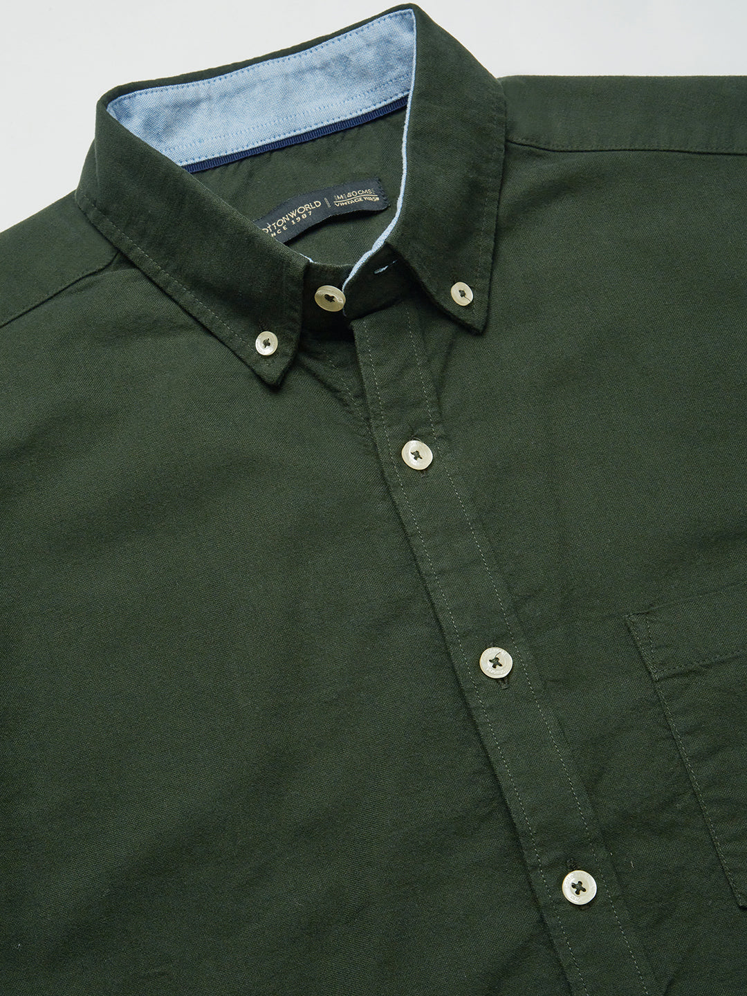 Men's Olive 100% Cotton Regular Fit Shirt