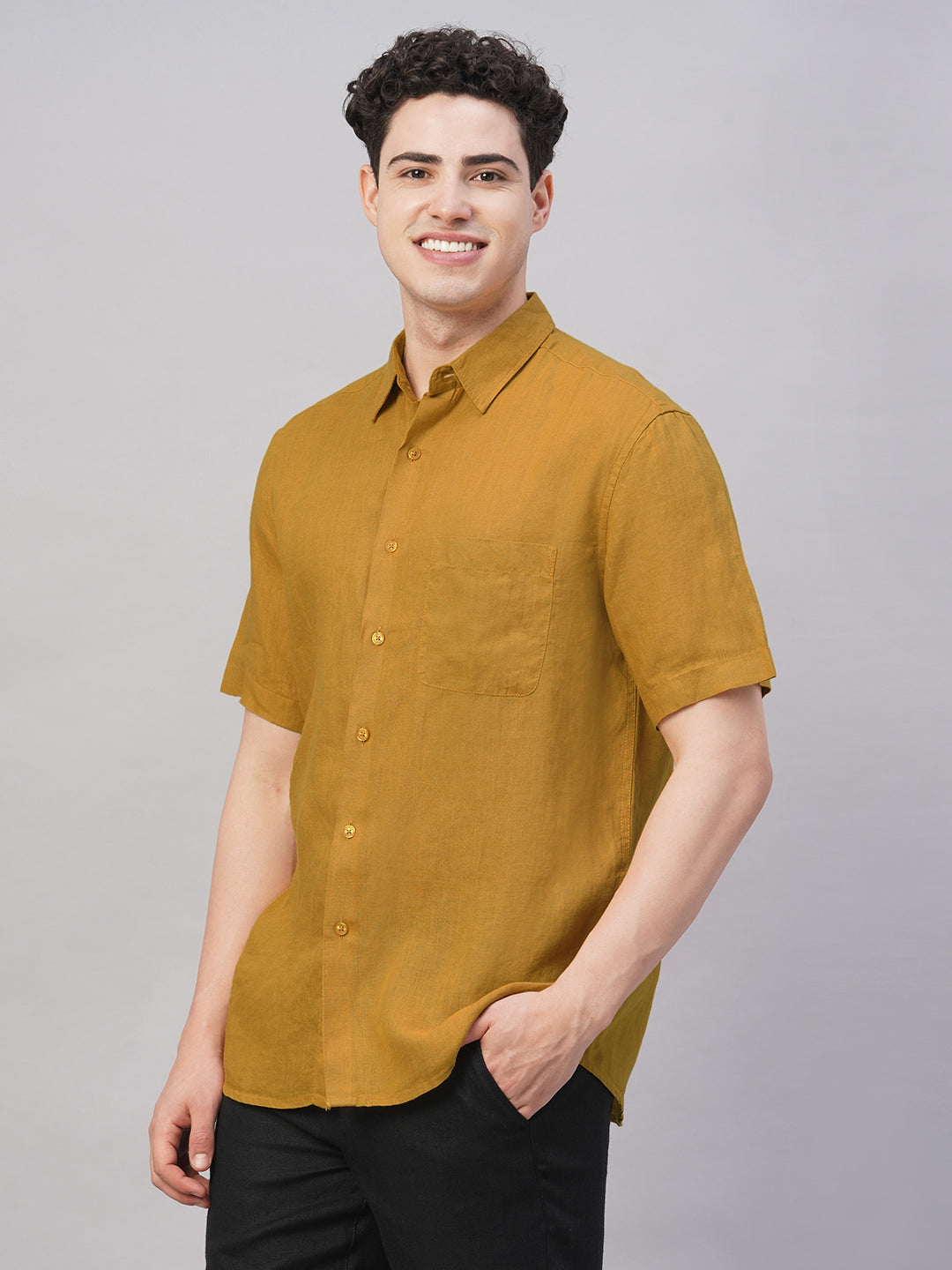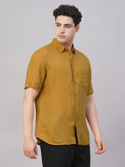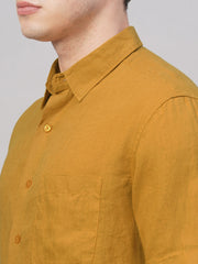 Men's Mustard 100% Linen Regular Fit Shirt