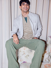 Men's Green Linen Viscose Loose Fit Pant