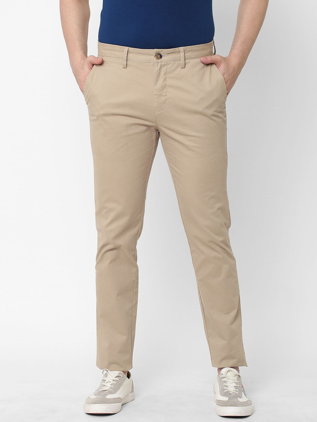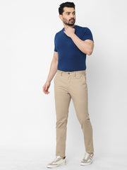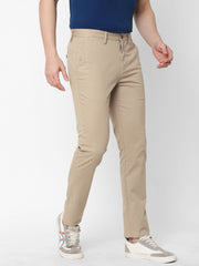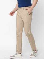 Men's Khaki Cotton Lycra Slim Fit Pant