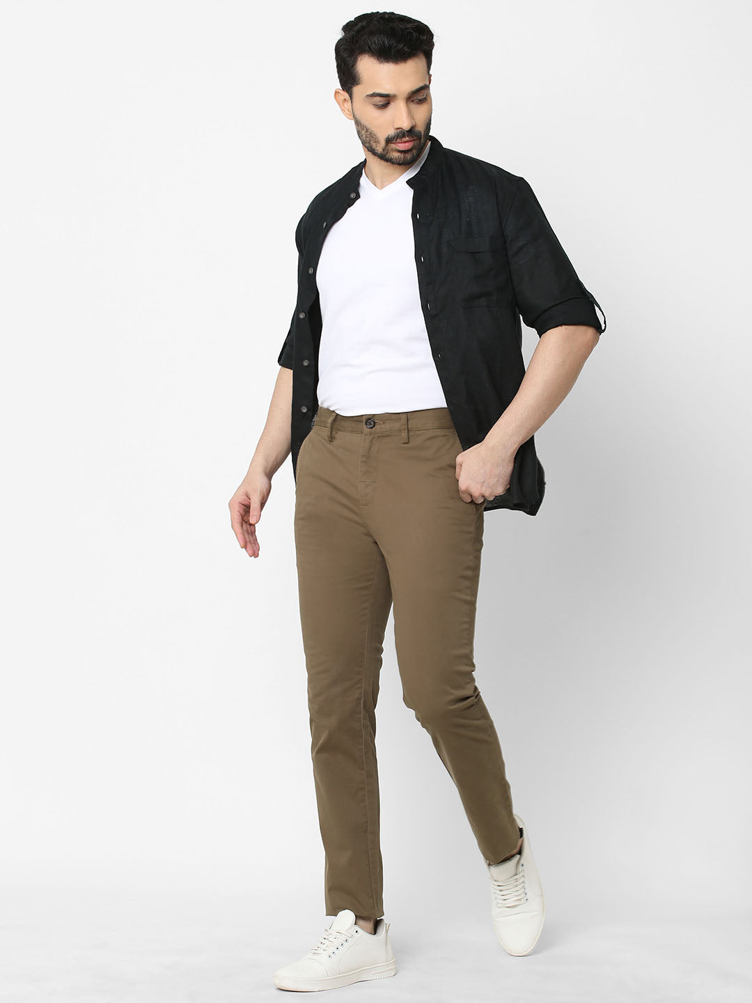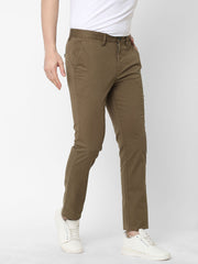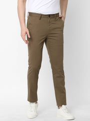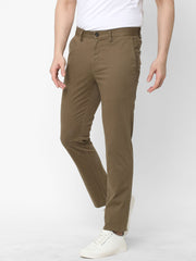 Men's Lt Brown Cotton Lycra Slim Fit Pant