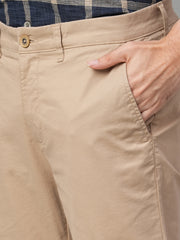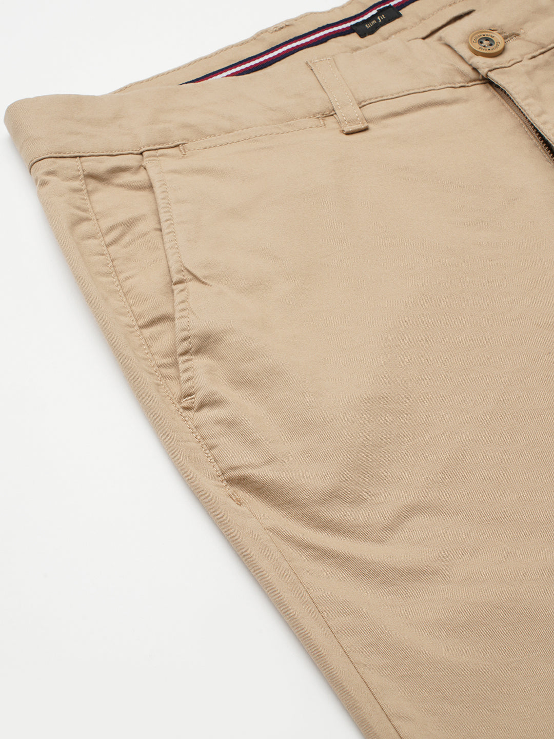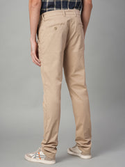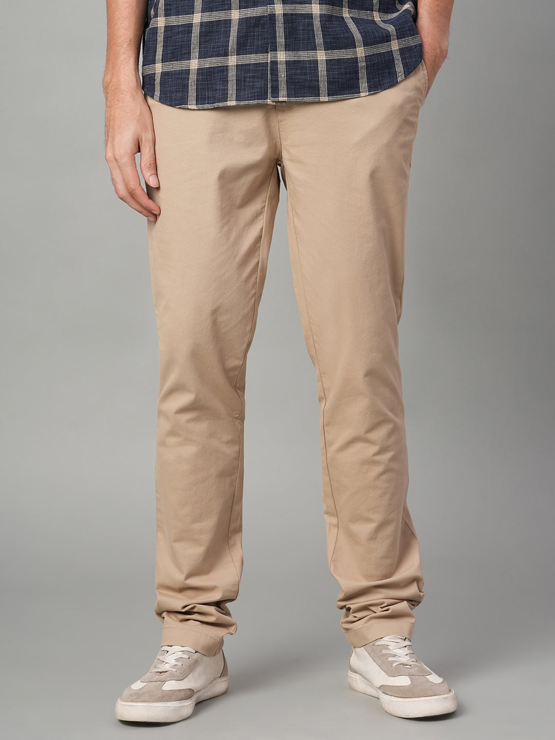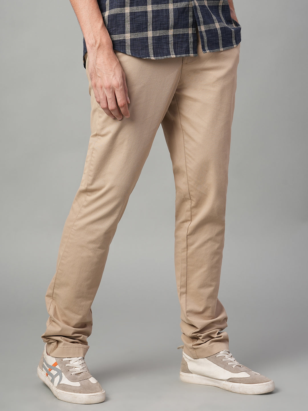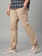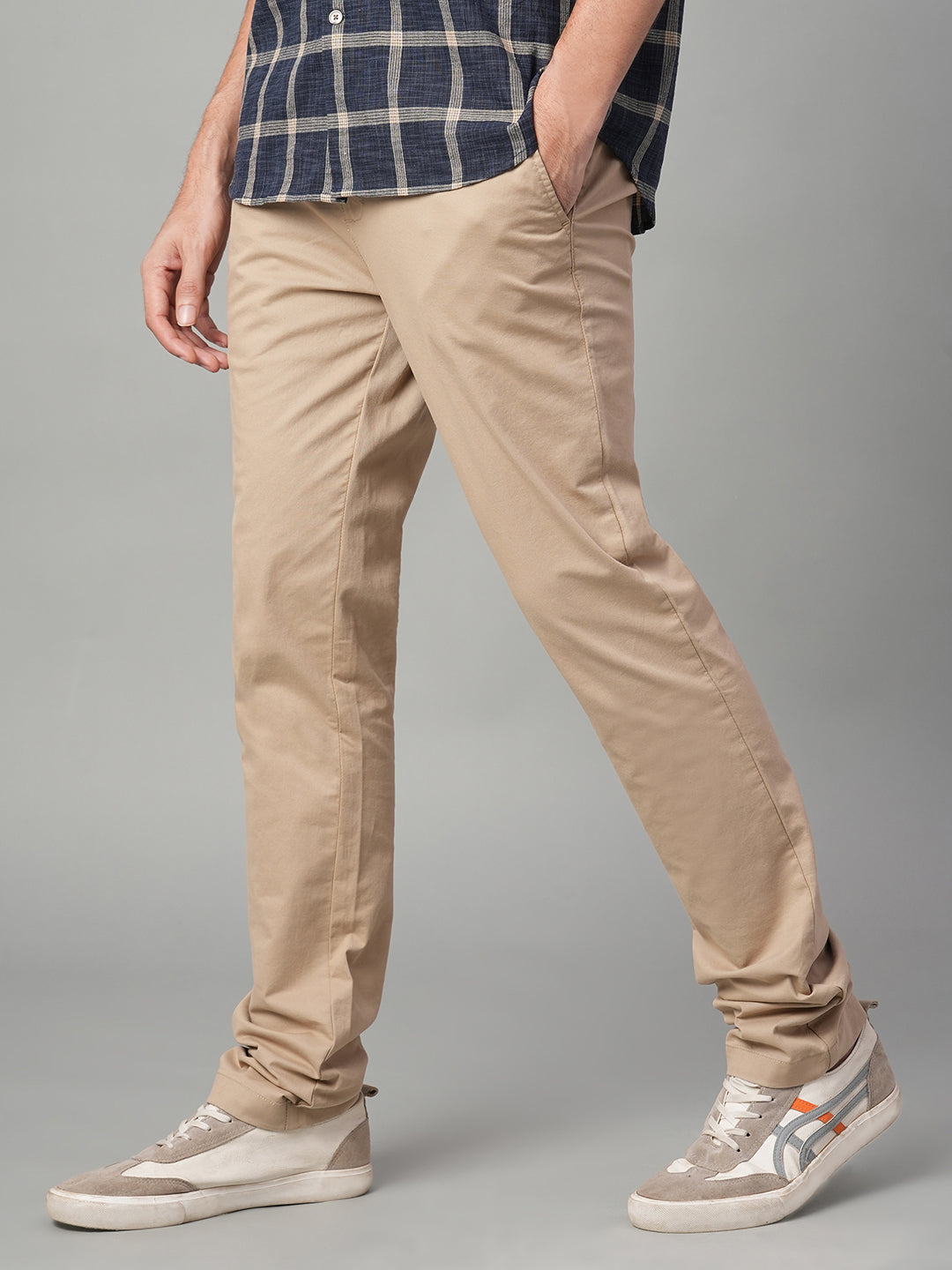 Men's Khaki Cotton Lycra Slim Fit Pant