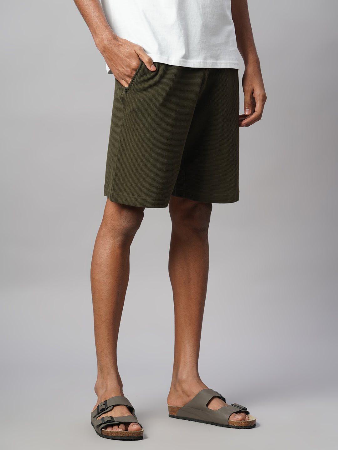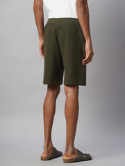 Men's Green 100% Cotton Regular Fit Knit Shorts