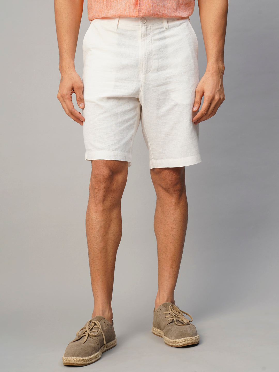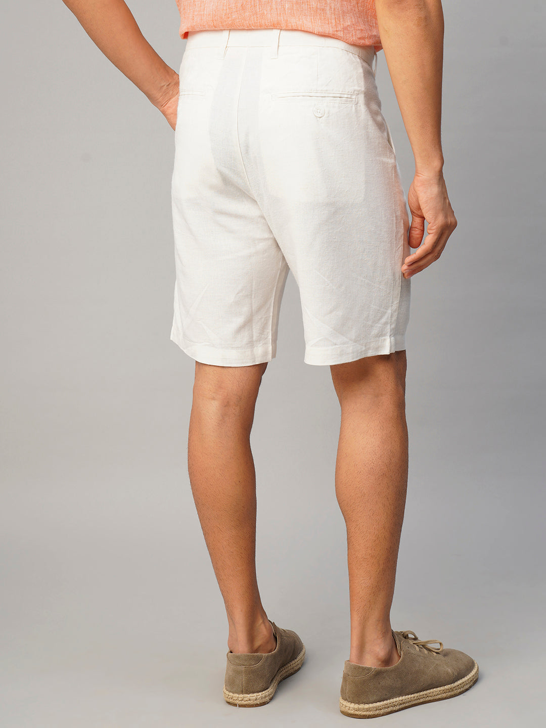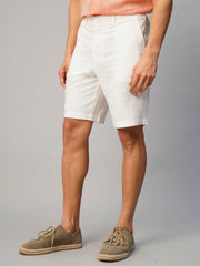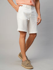 Men's White Linen Viscose Regular Fit Shorts