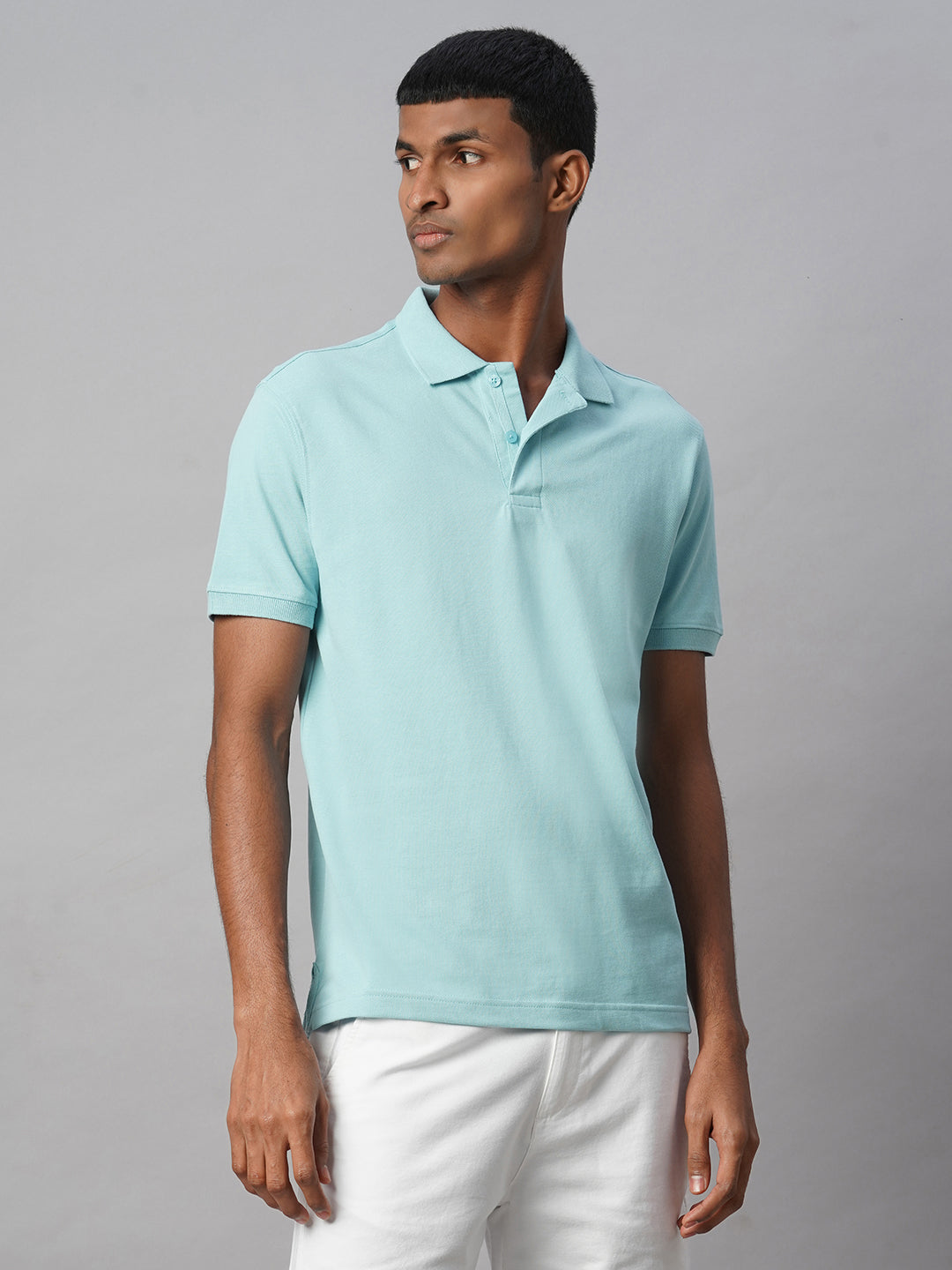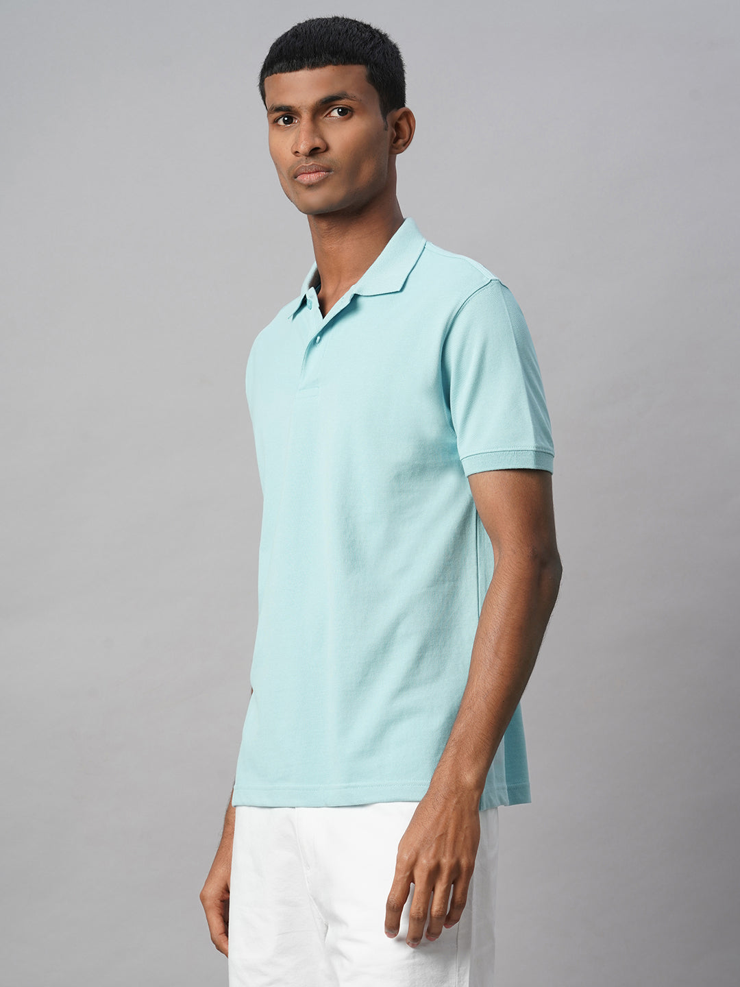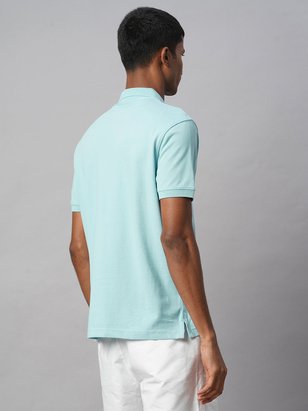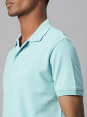 Men's Blue 100% Cotton Regular Fit Tshirt