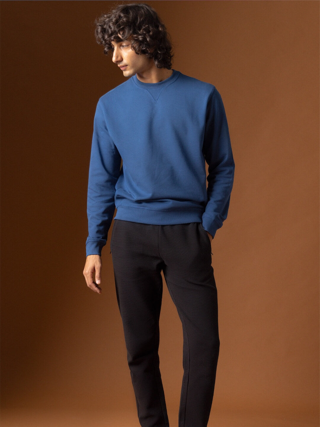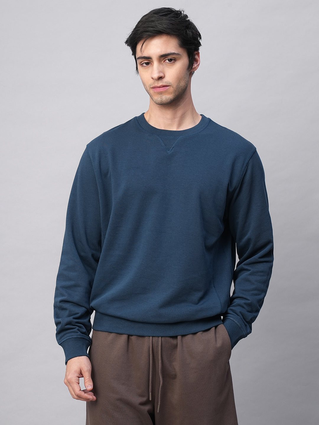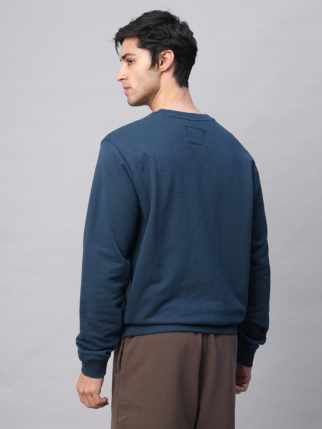 Men's Blue Organic Cotton Regular Fit Sweatshirt