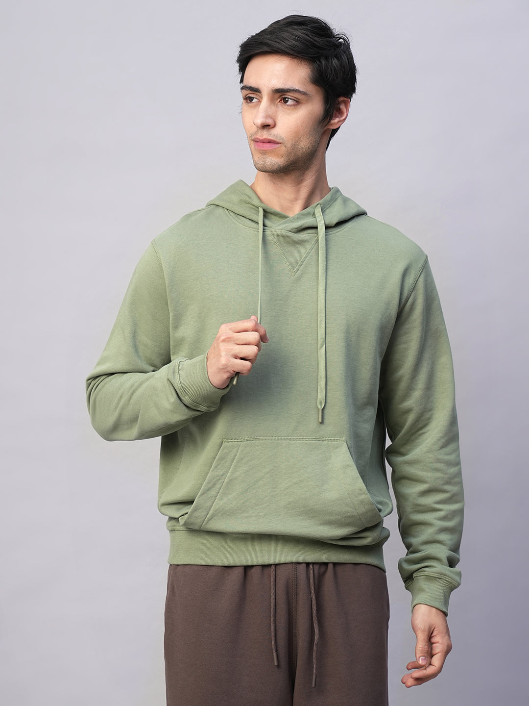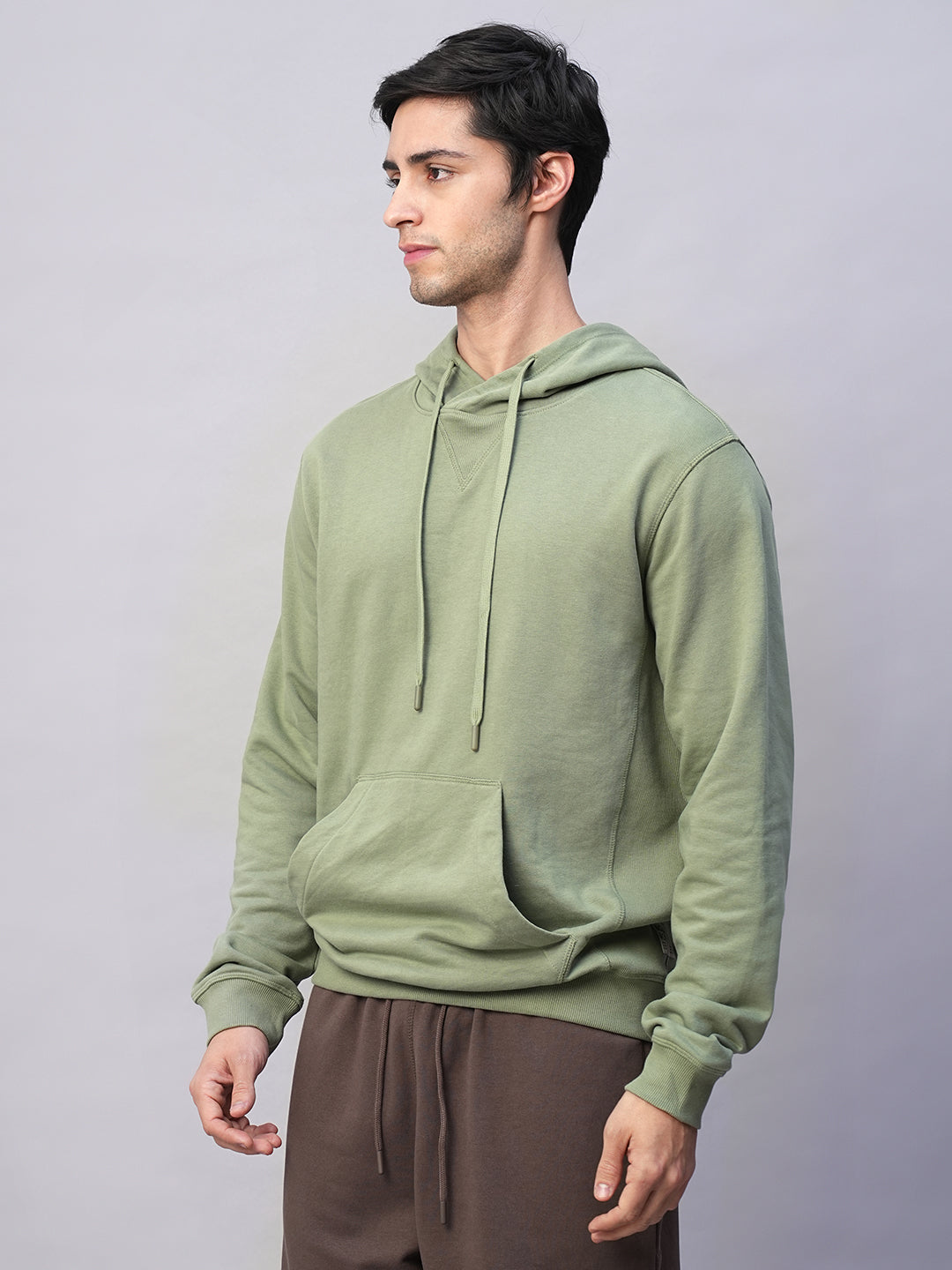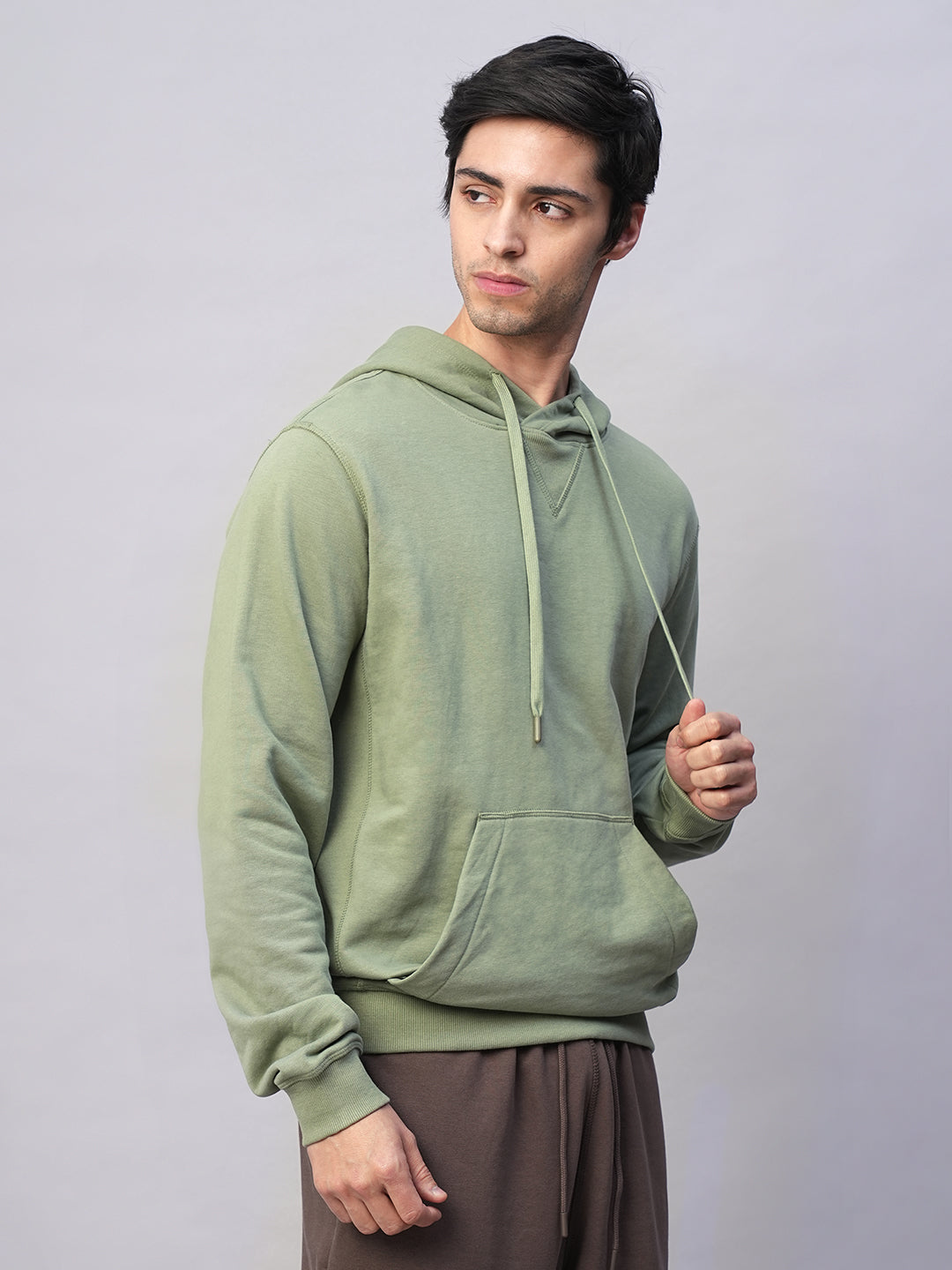 Men's Light Green Organic Cotton Regular Fit Hoodie Sweatshirt