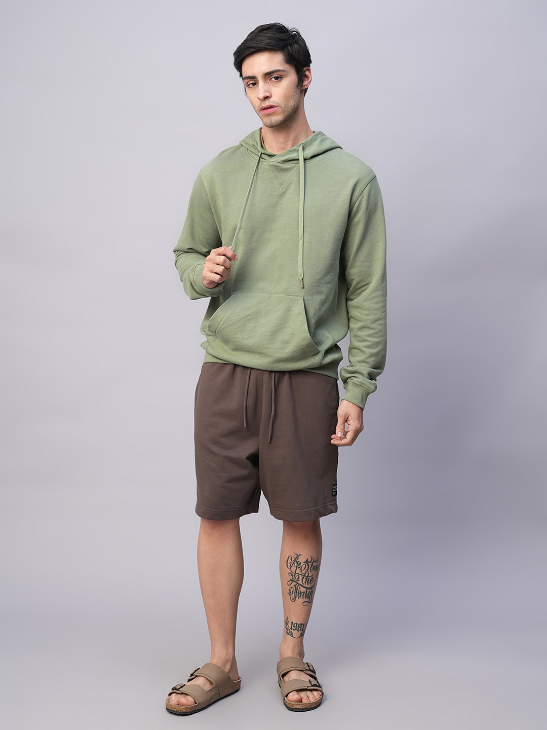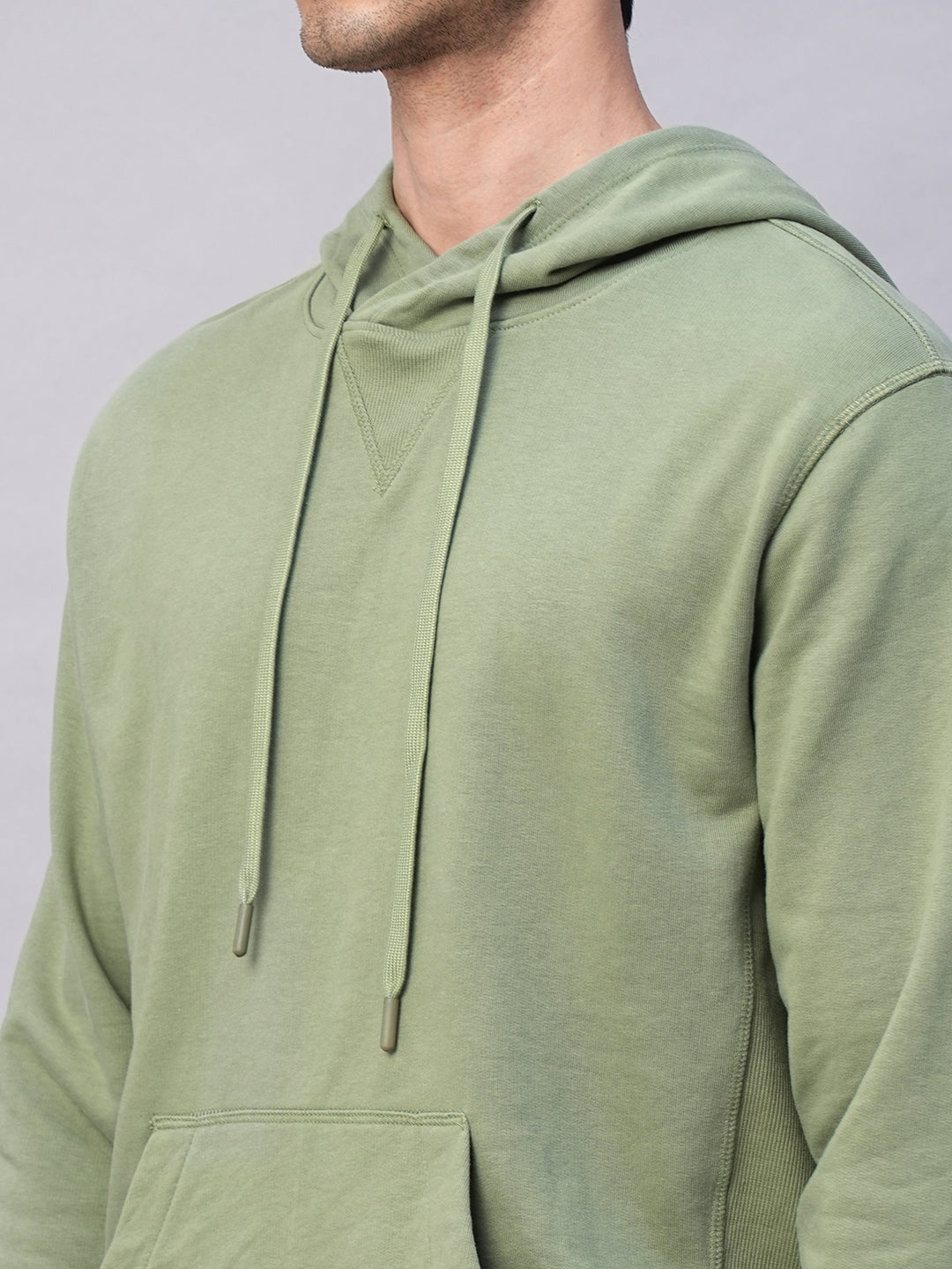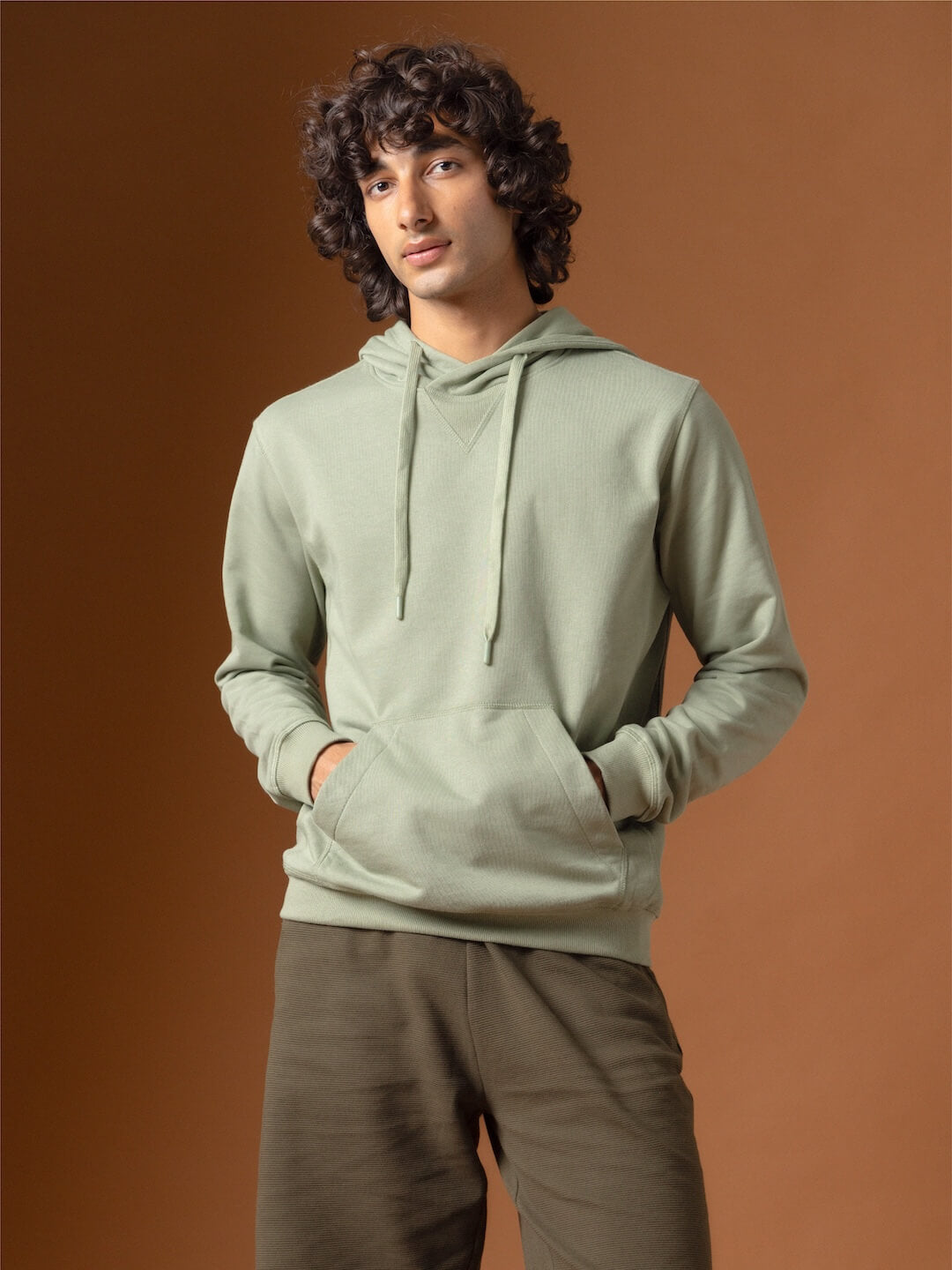 Men's Light Green Organic Cotton Regular Fit Hoodie Sweatshirt