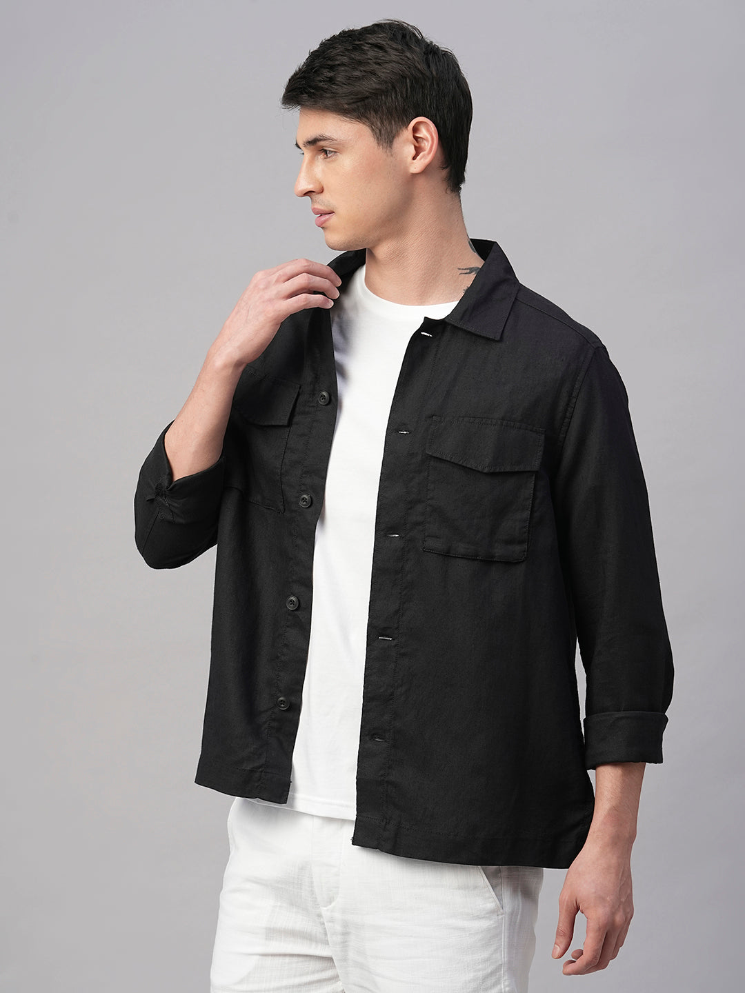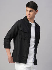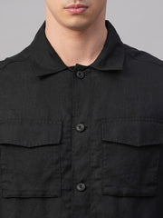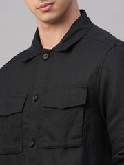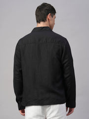 Men's Black Pure Linen Regular Fit Light Weight Summer Jacket