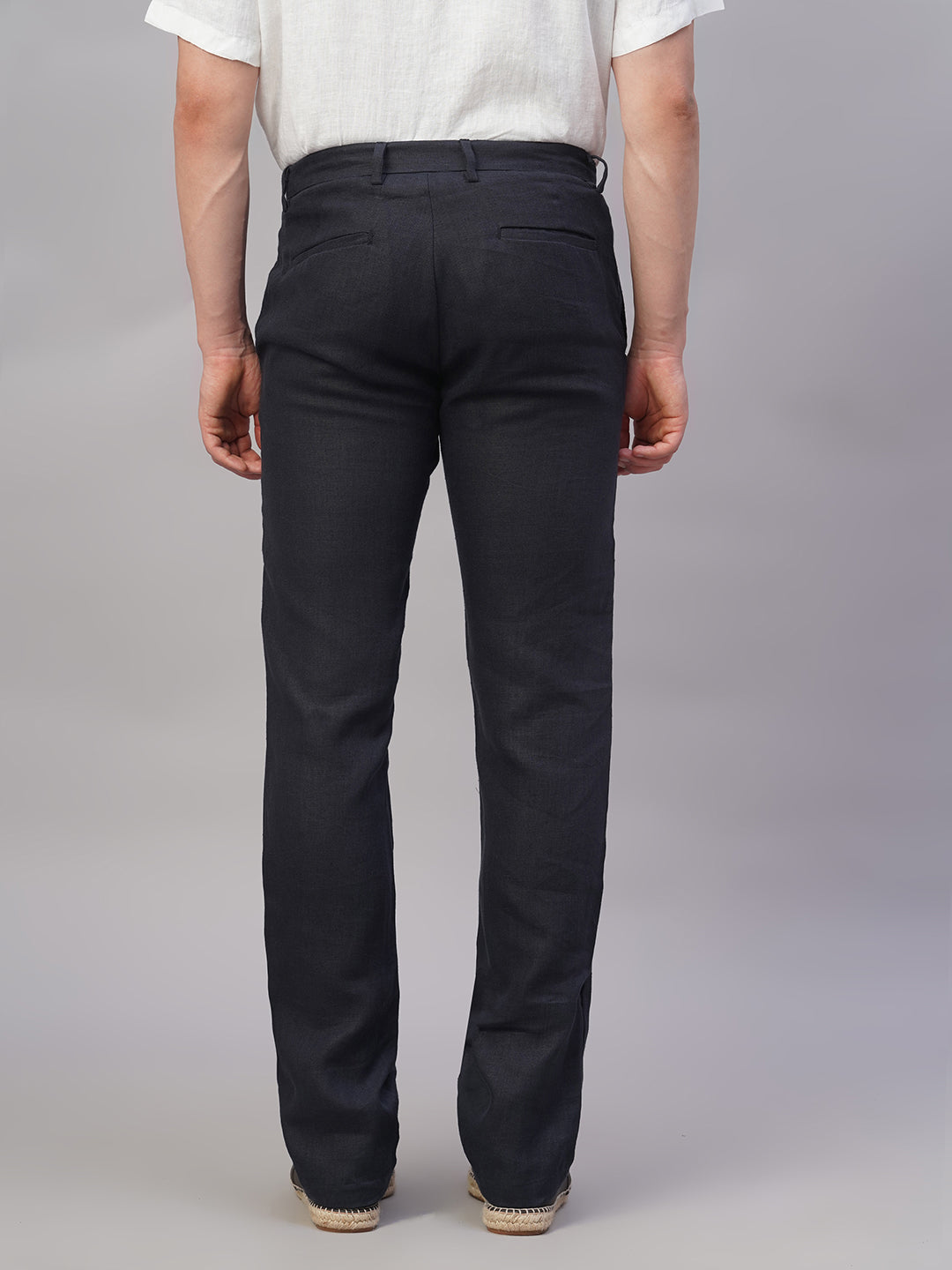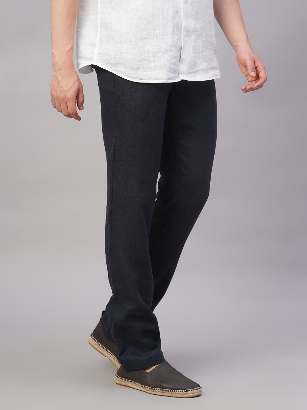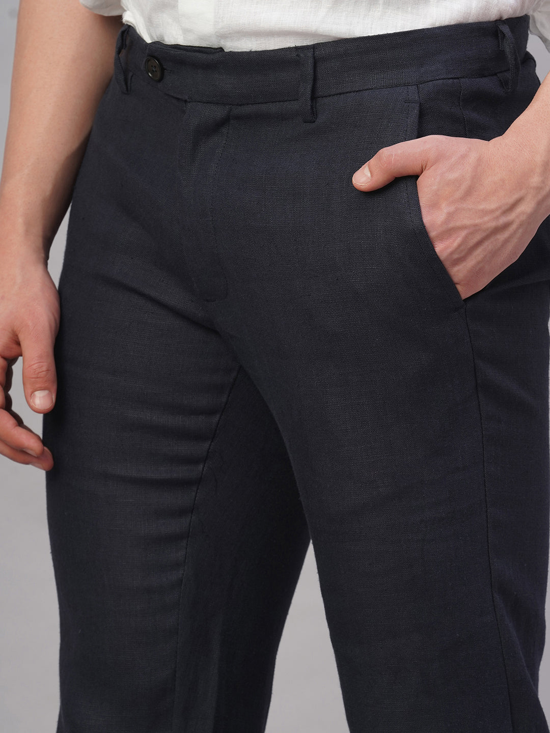 Men's Navy 100% Linen Regular Fit Pant
