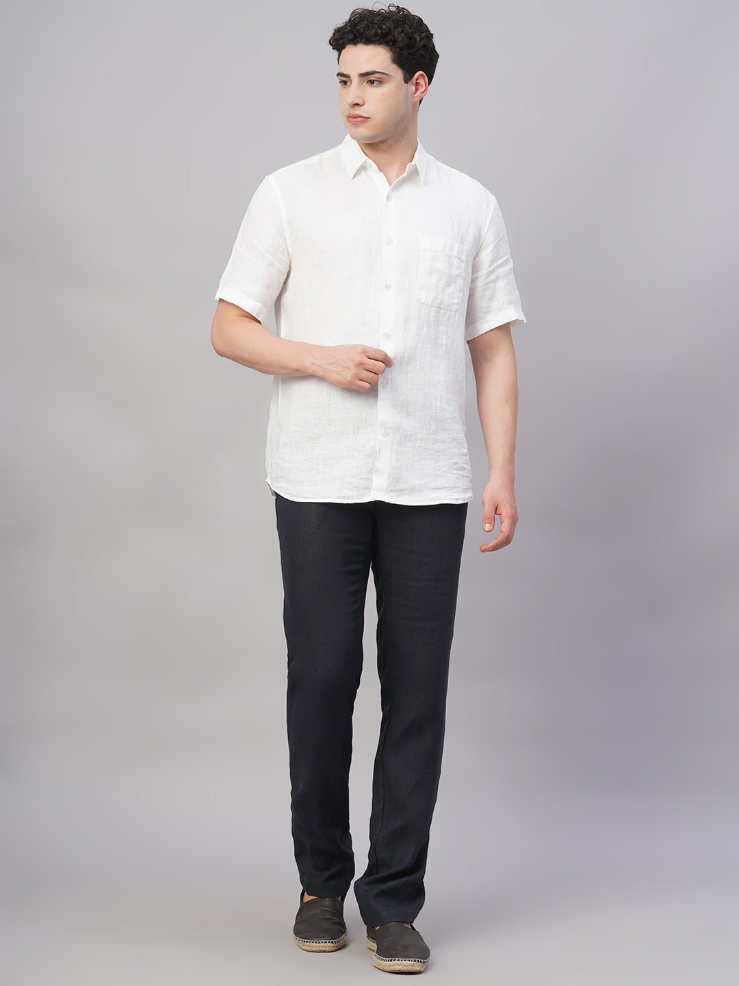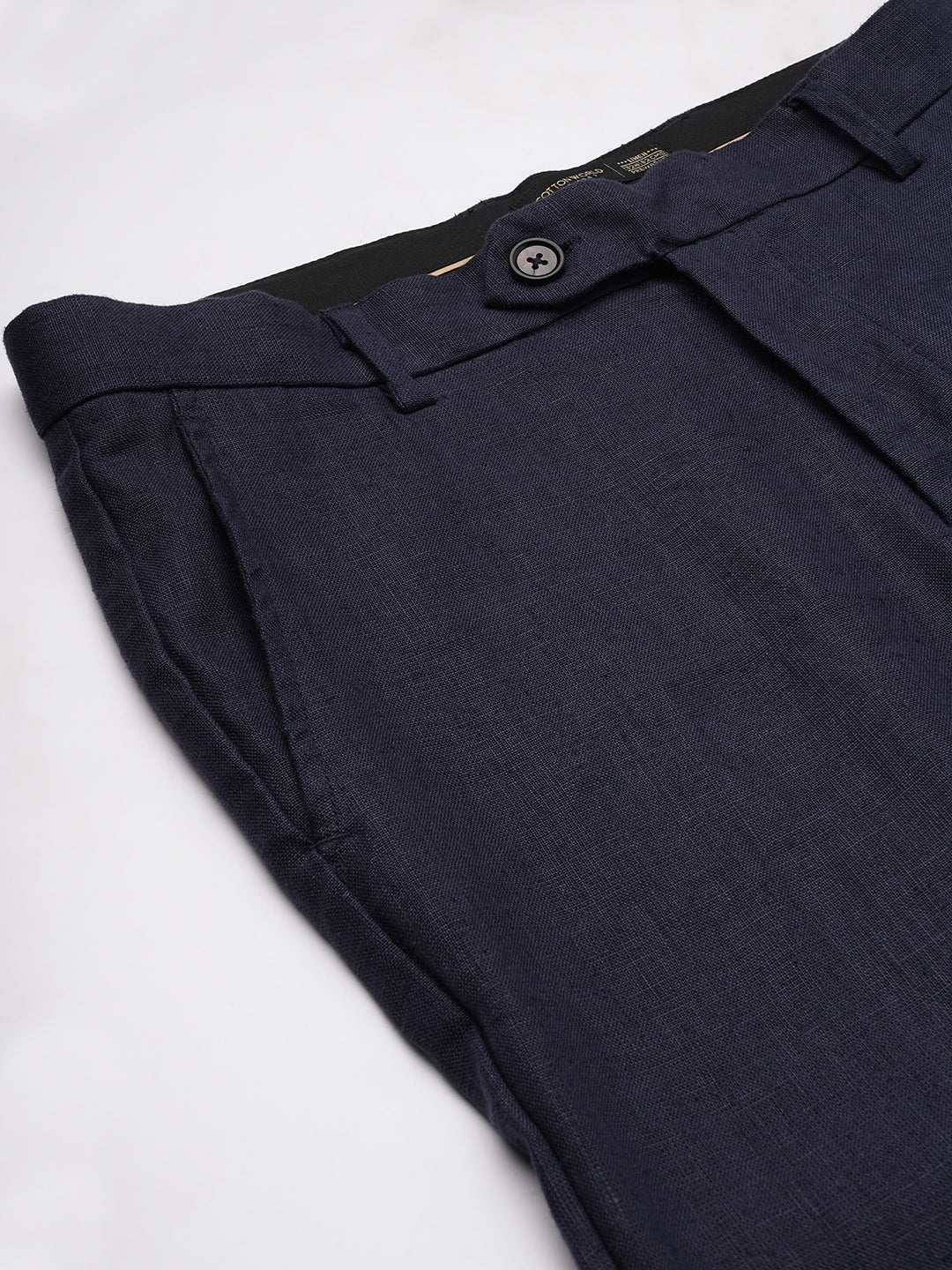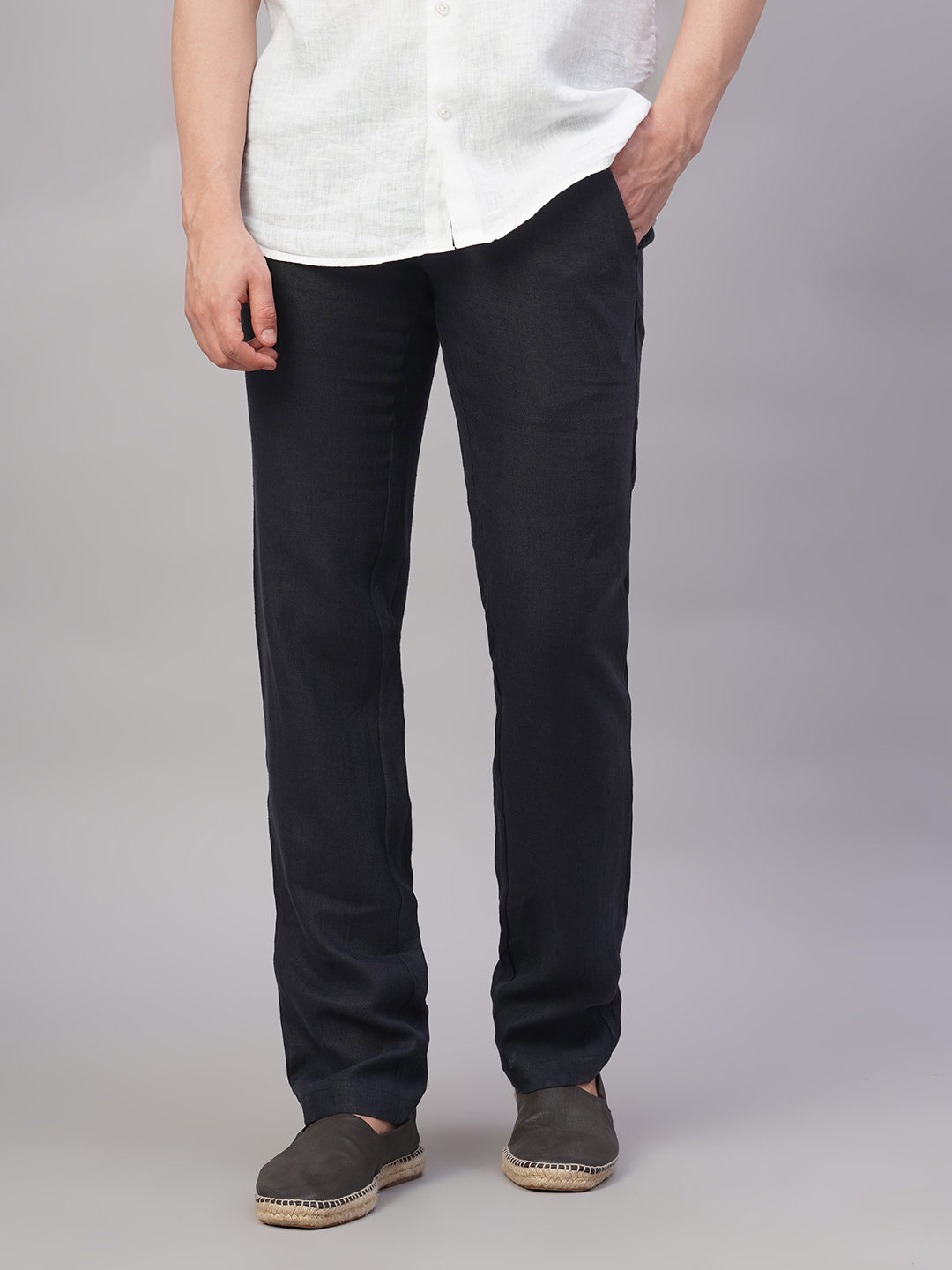 Men's Navy 100% Linen Regular Fit Pant
