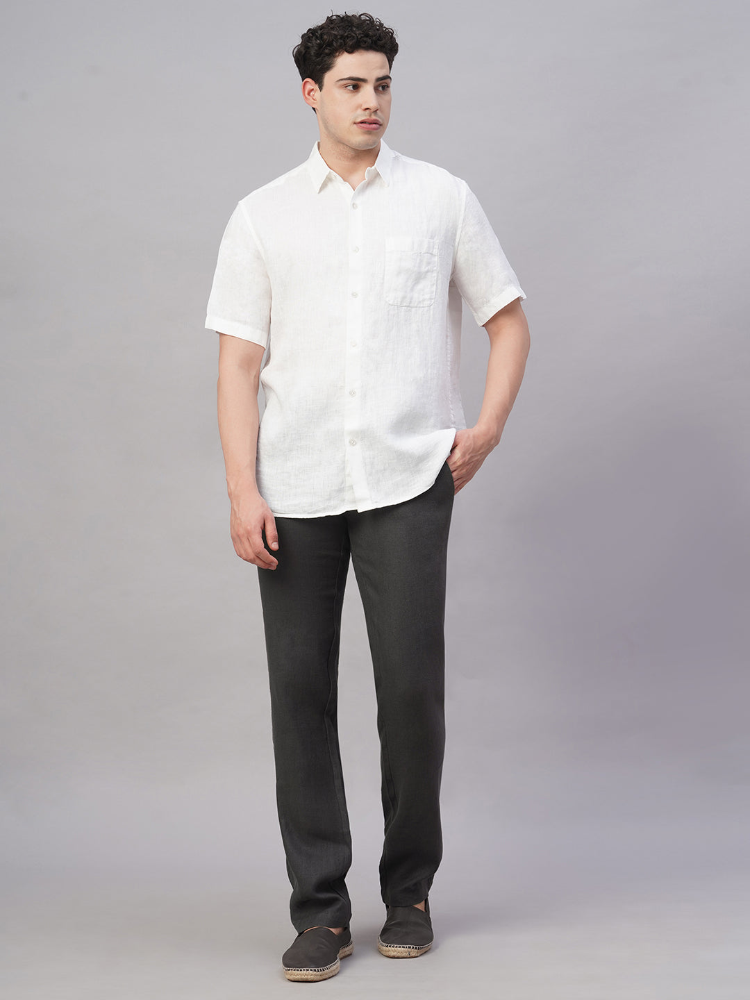 Men's Slate 100% Linen Regular Fit Pant