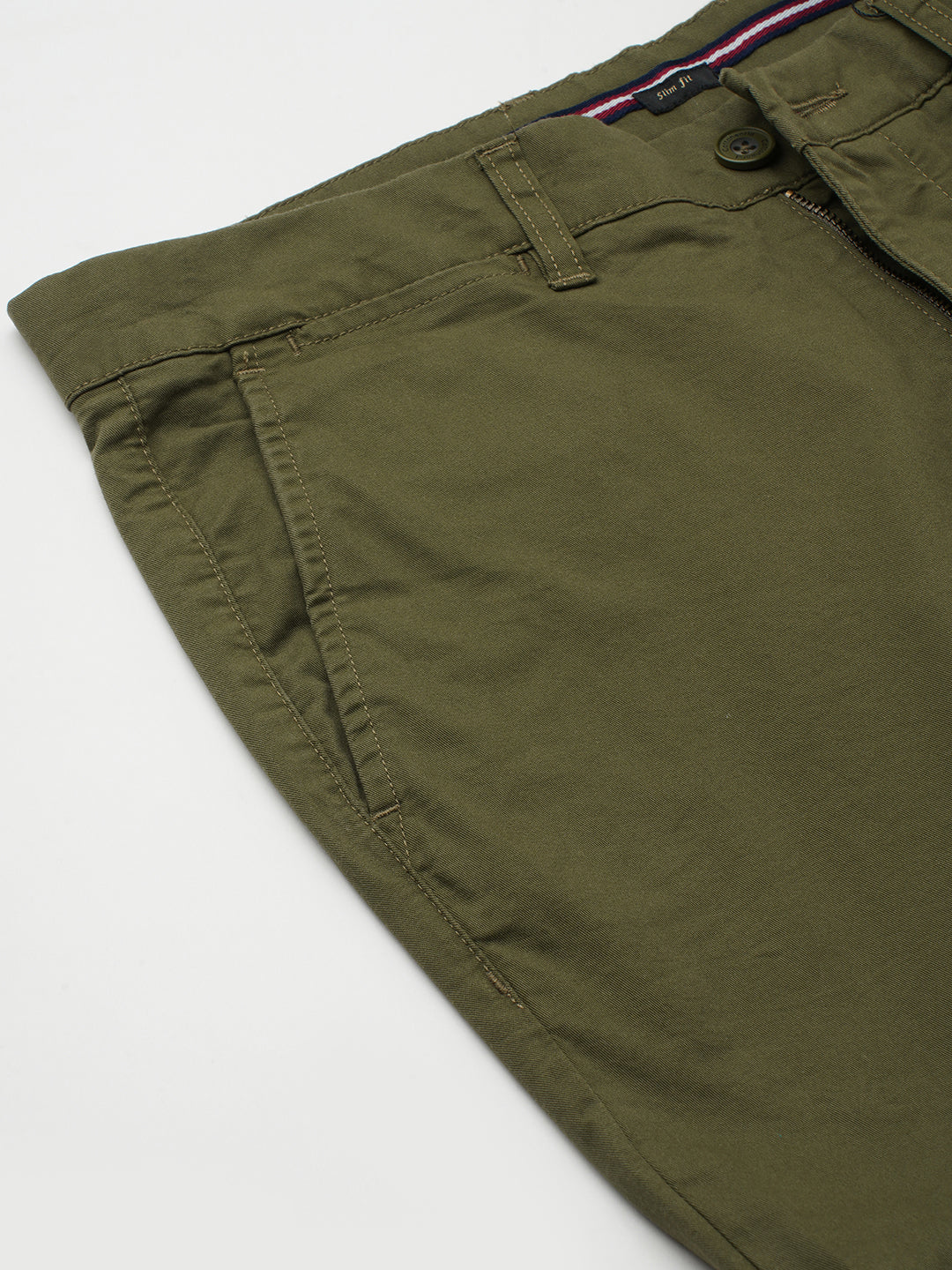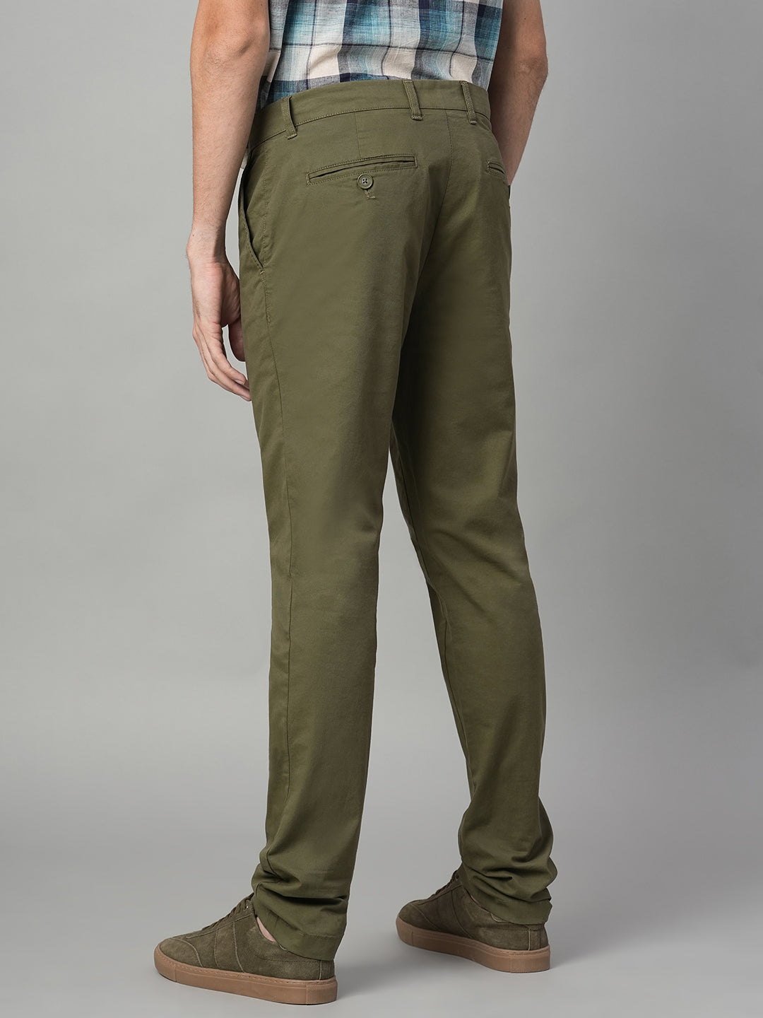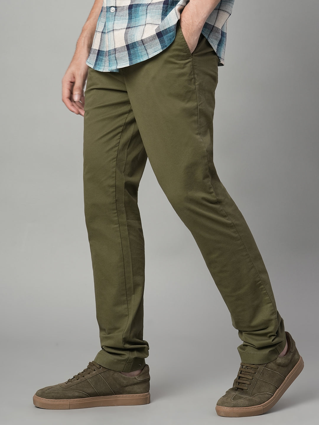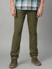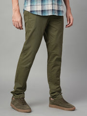 Men's Olive Cotton Lycra Slim Fit Pant