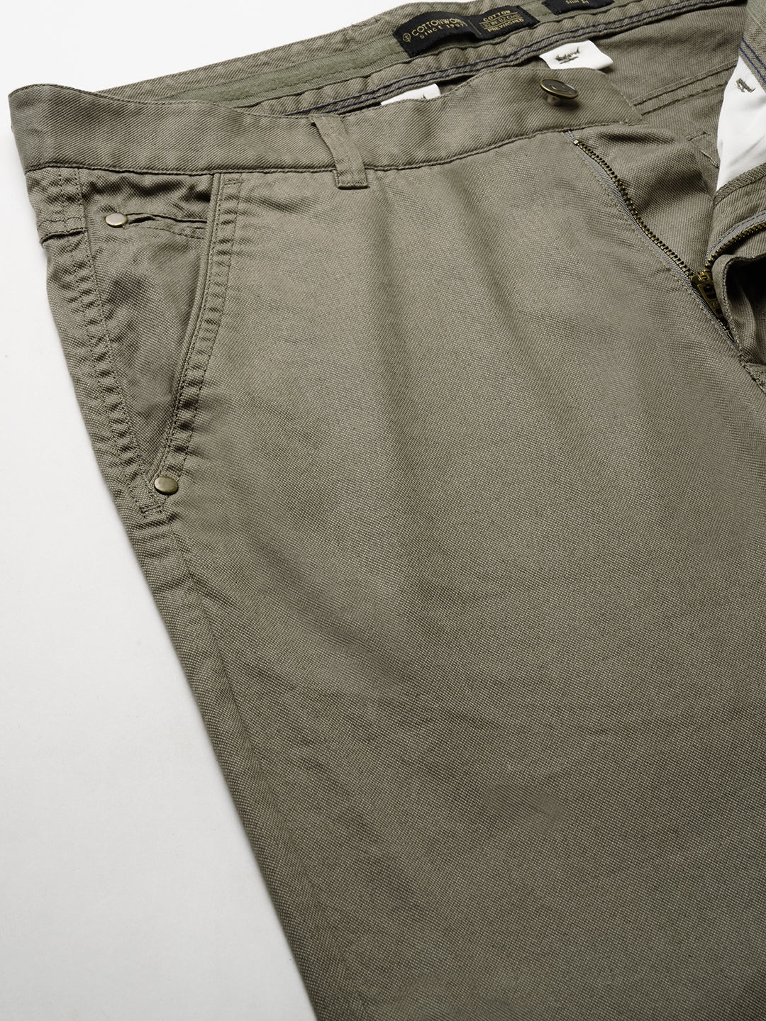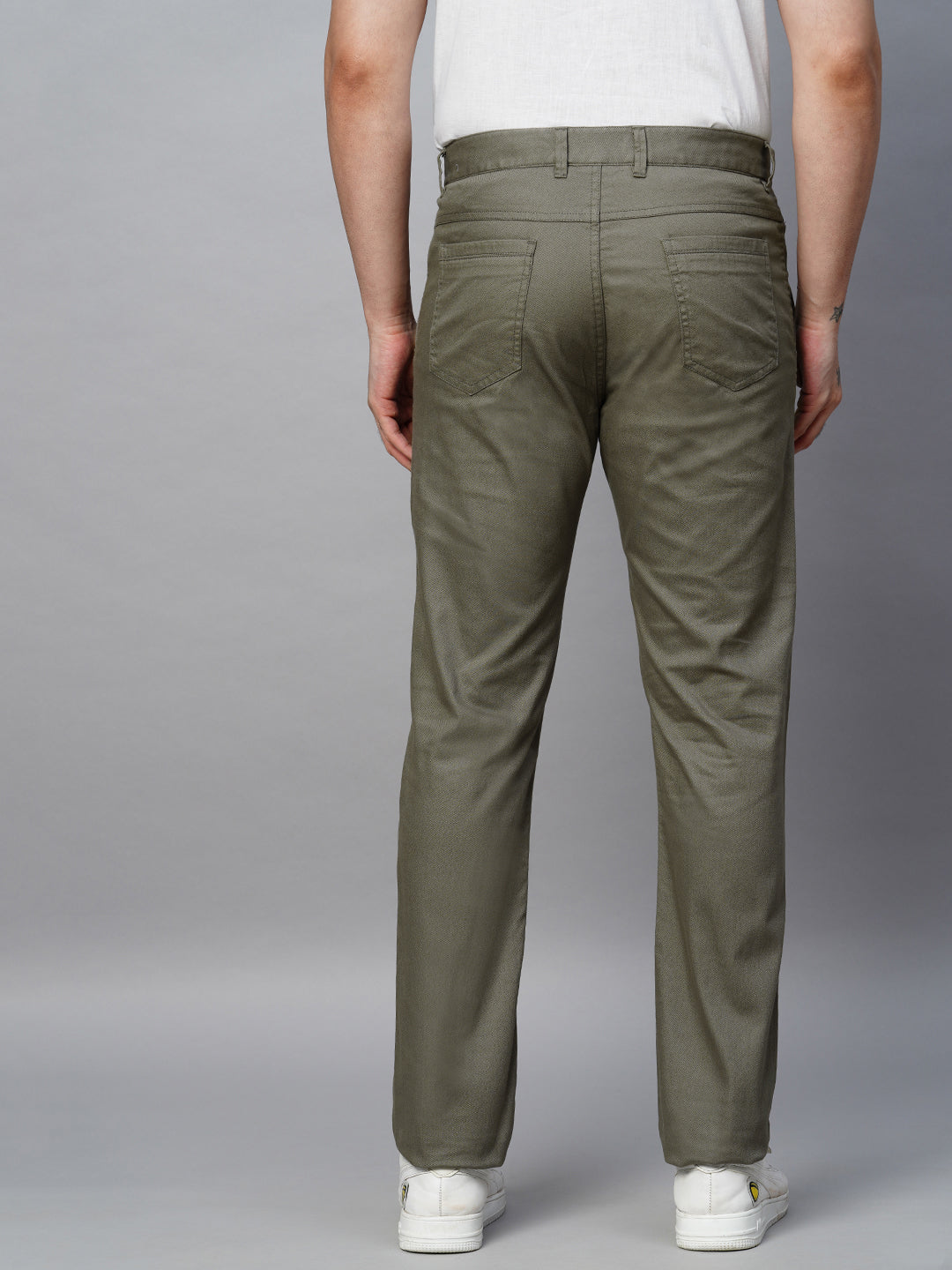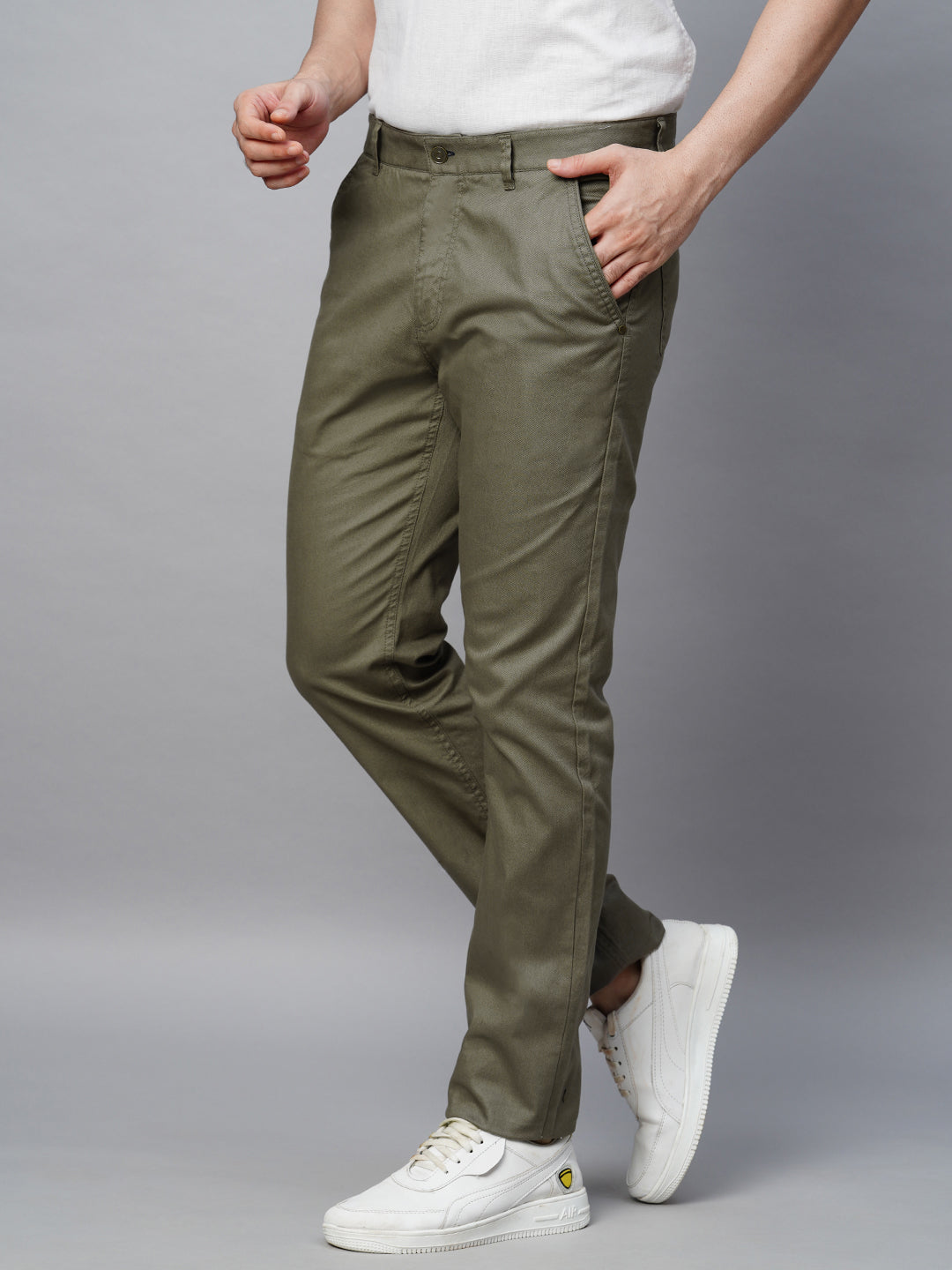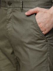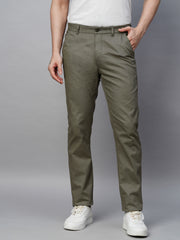Men's Olive Cotton Lycra Slim Fit Pant