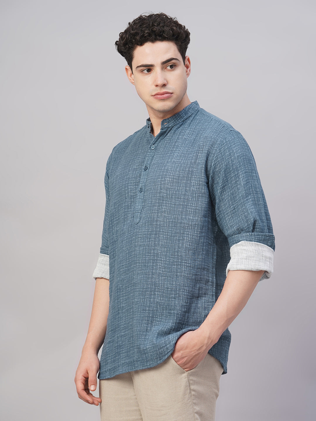 Men's Blue 100% Cotton Regular Fit Shirt