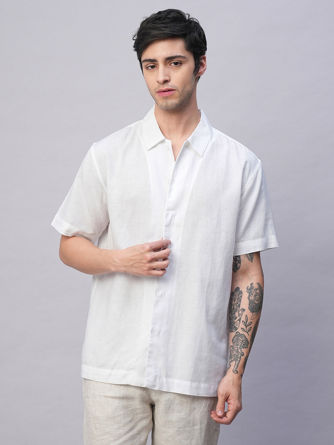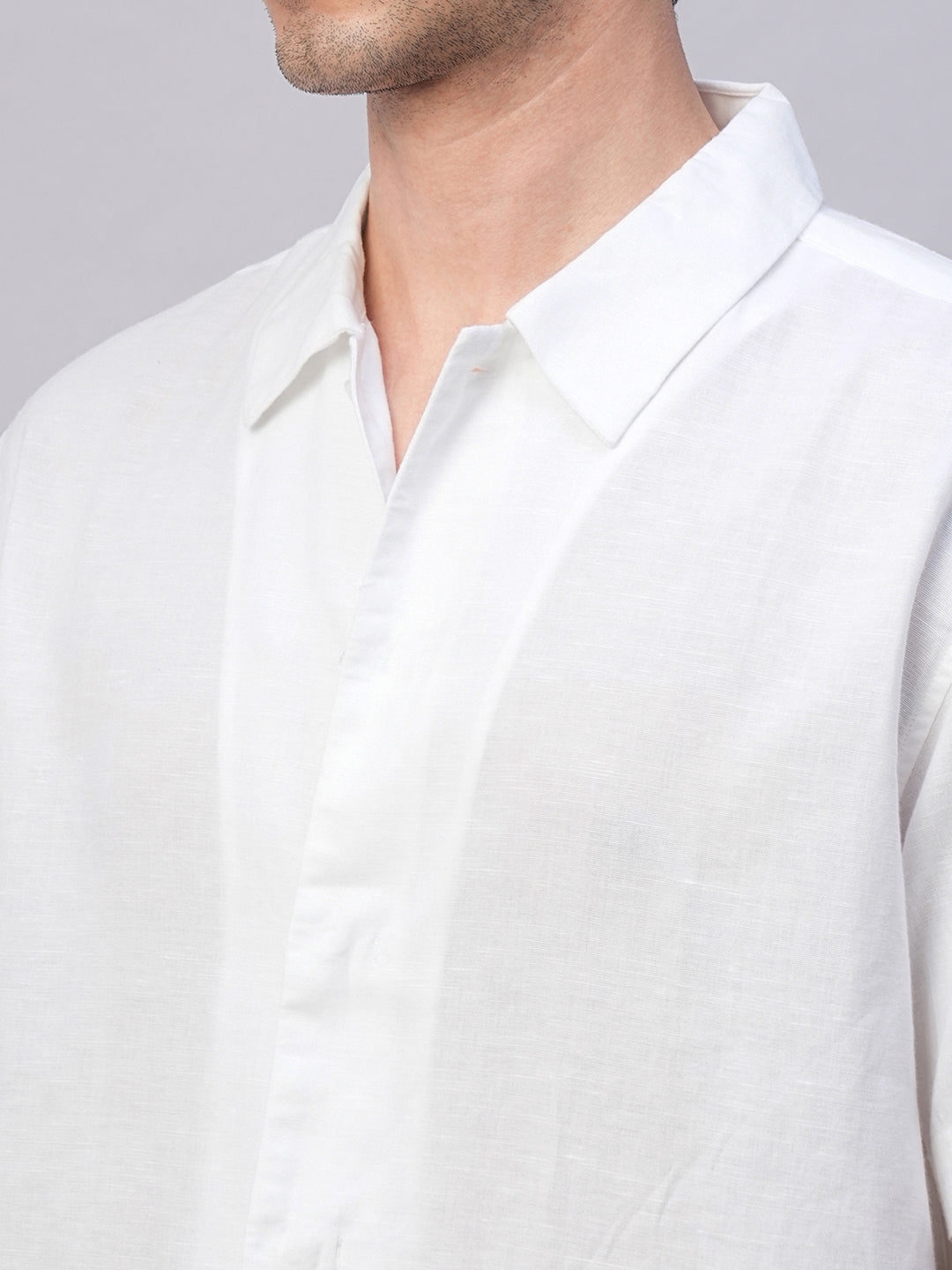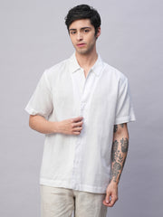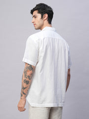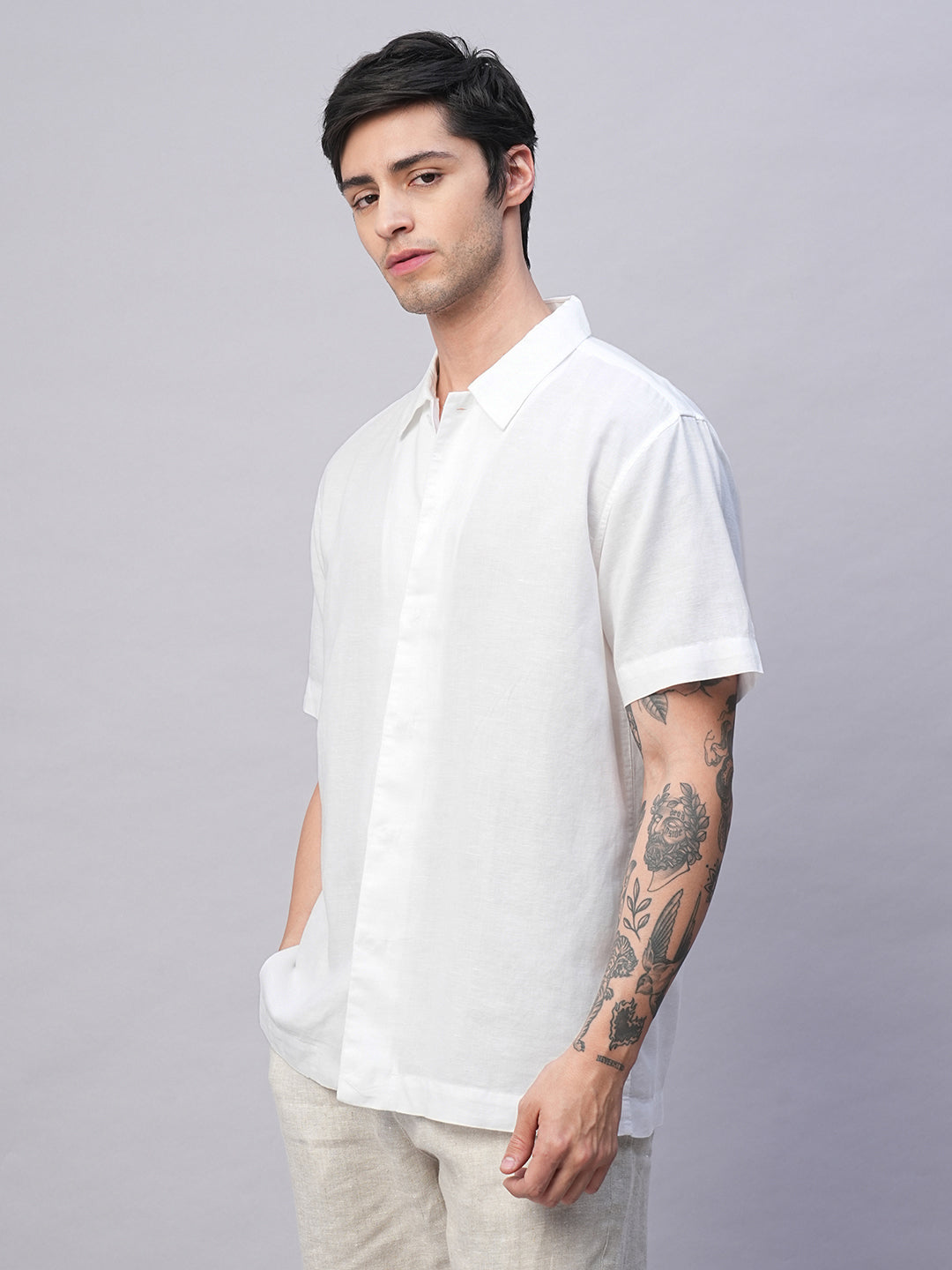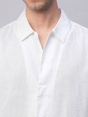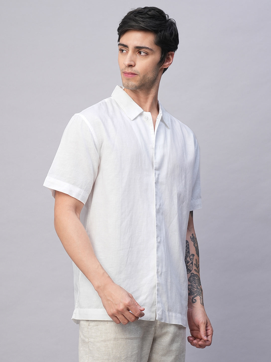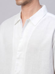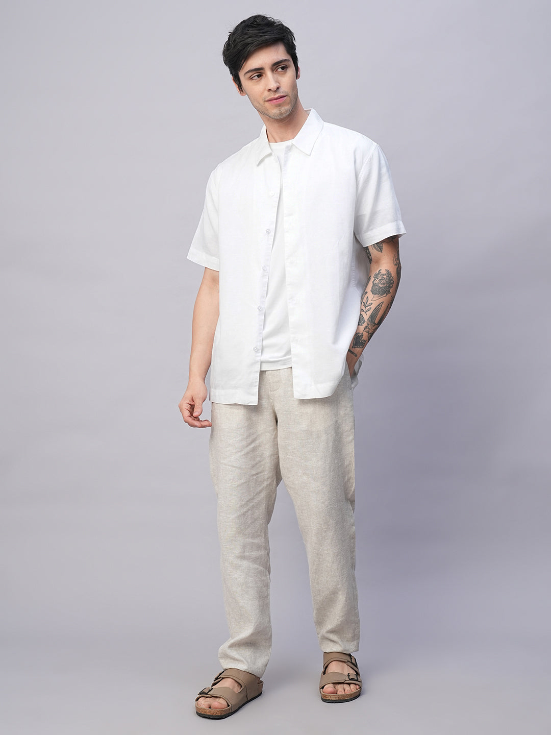Men's White Cotton Linen Regular Fit Summer Shirt