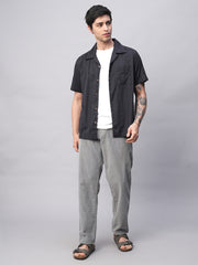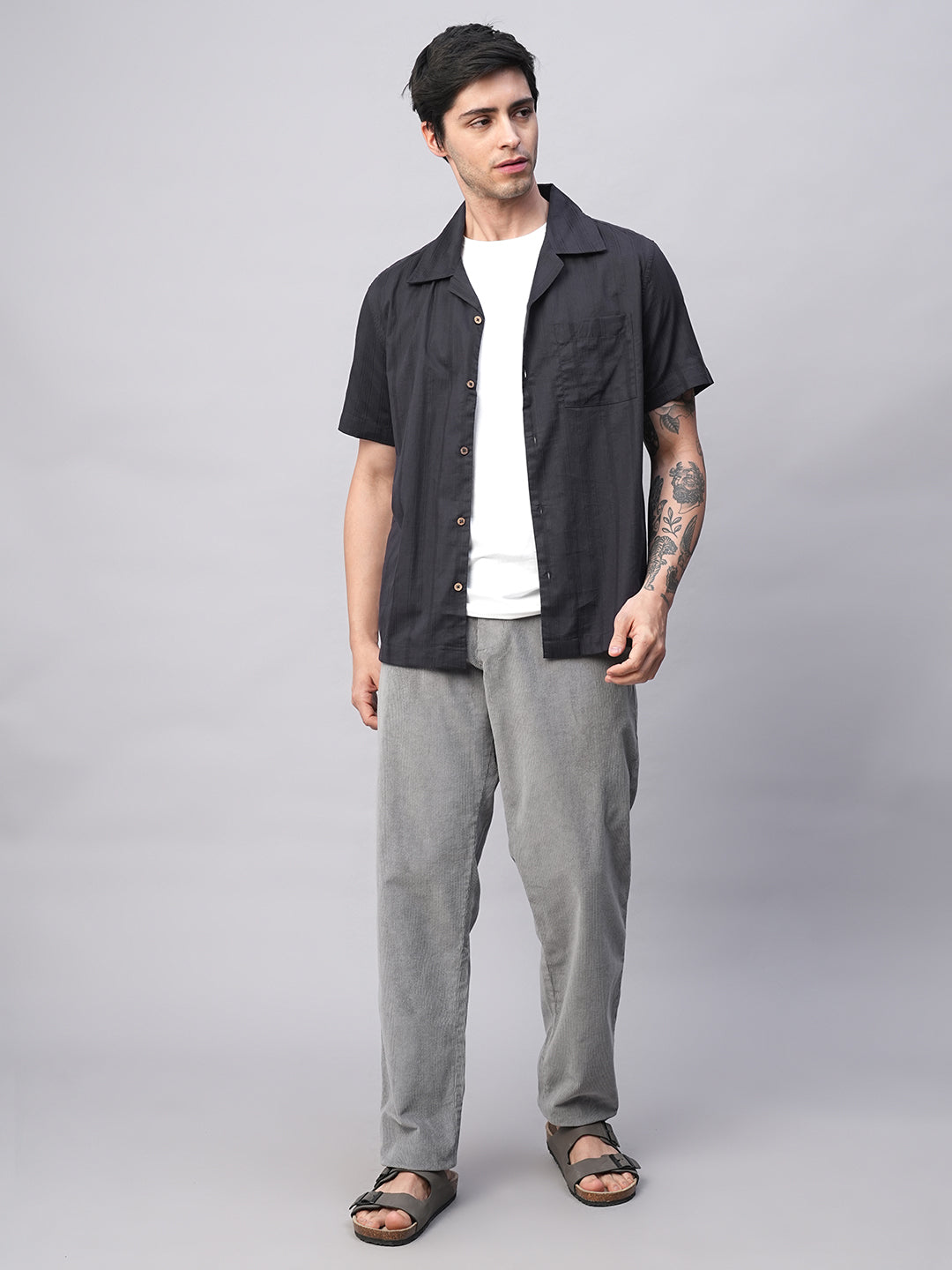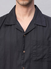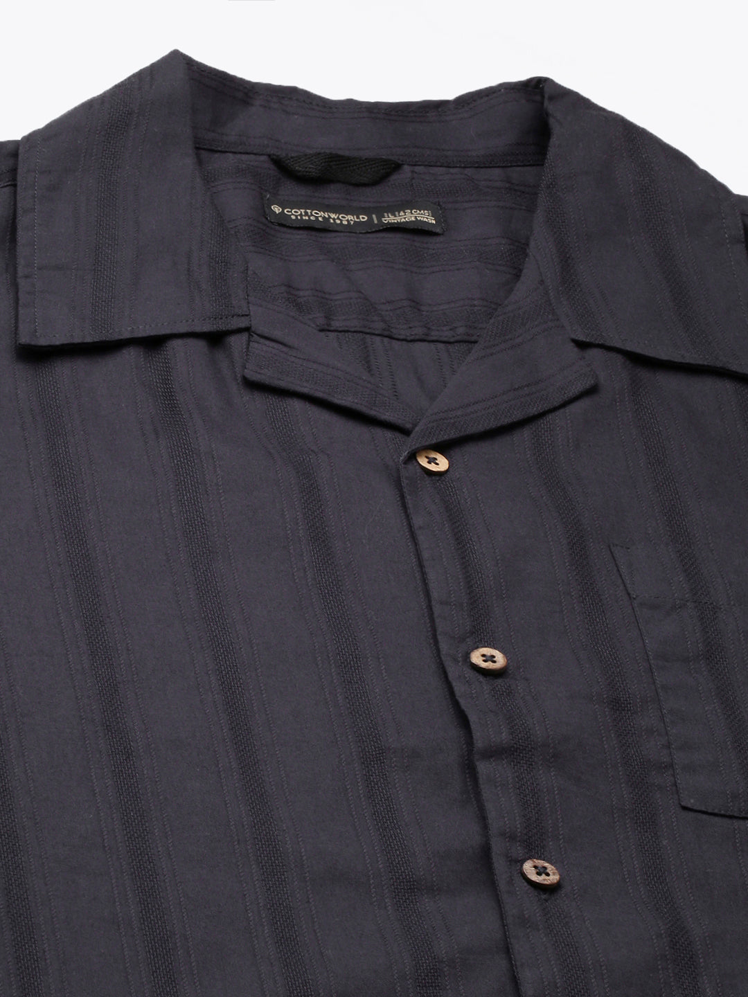 Men's Navy 100% Cotton Stripe Regular Fit Cuban Collar Shirt