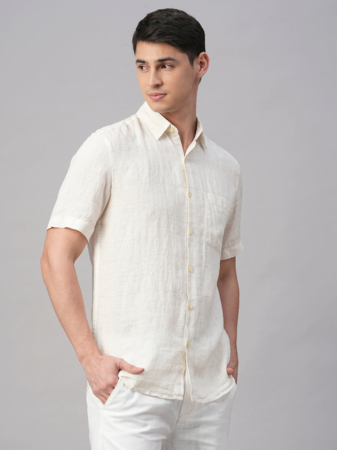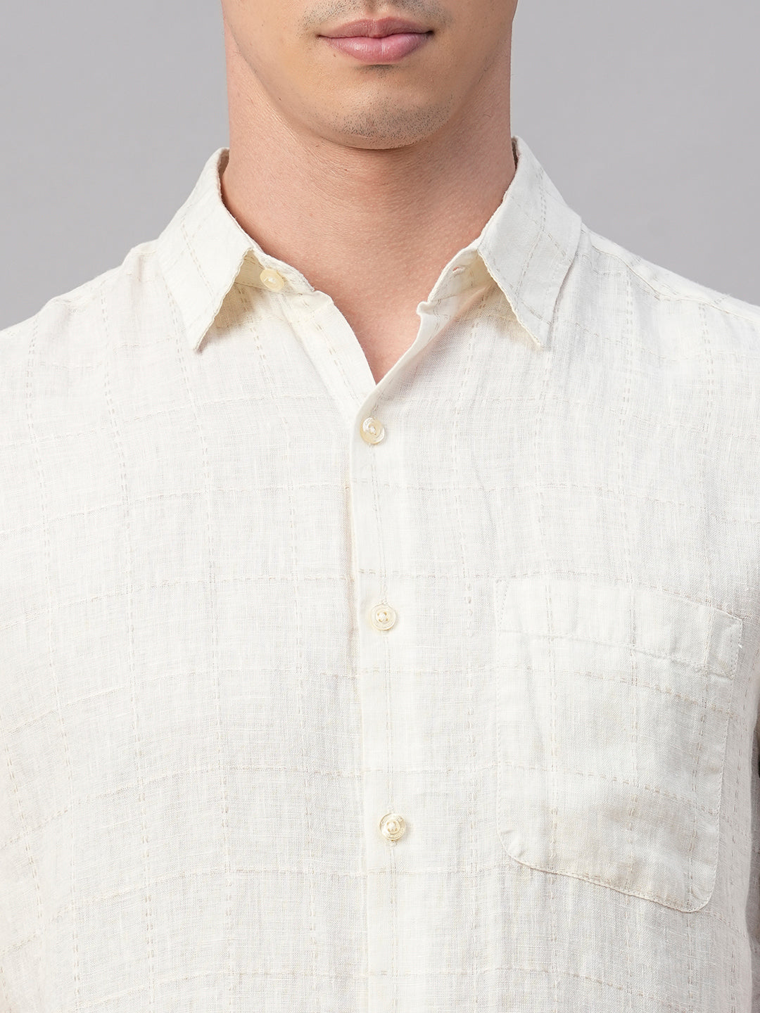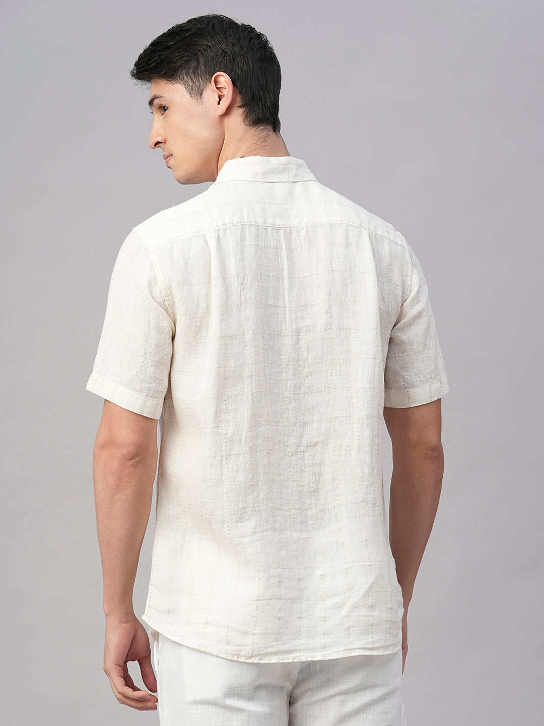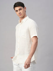 Men's Offwhite 100% Linen Regular Fit Shirt